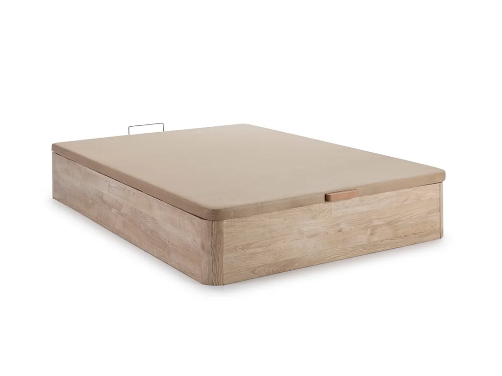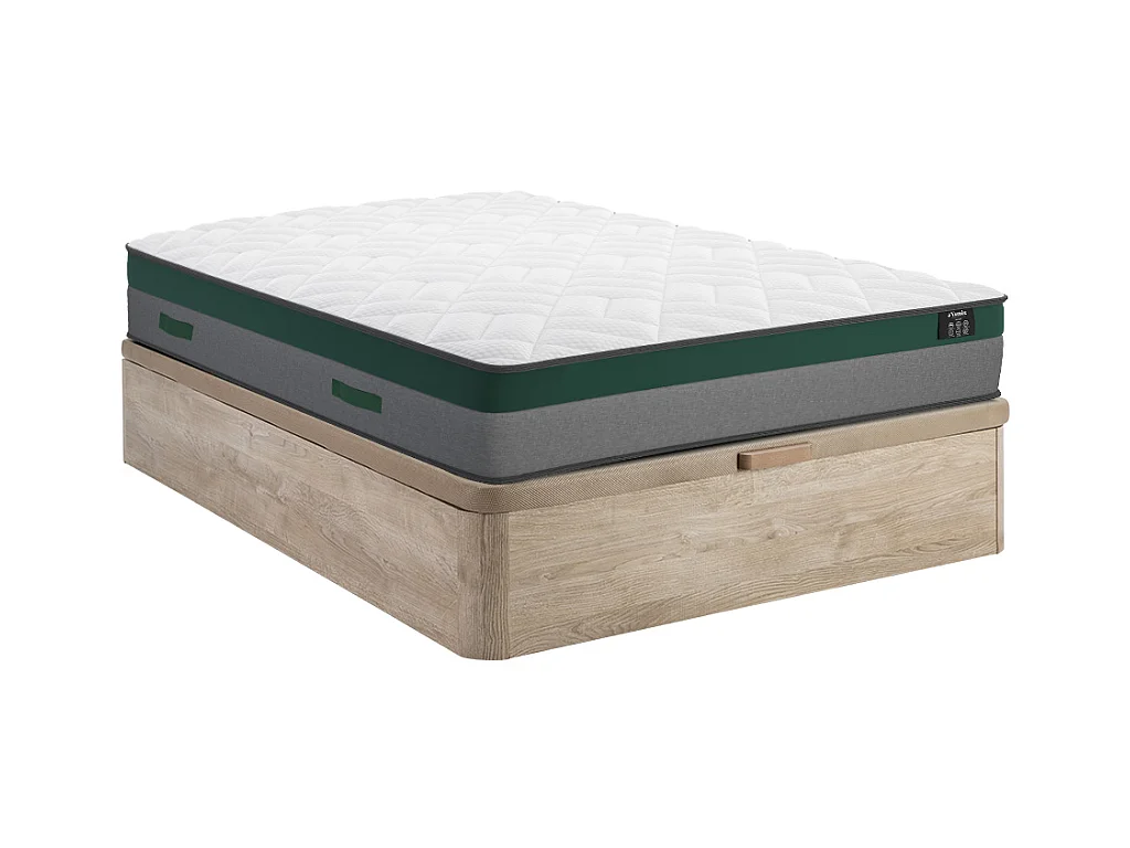 Zestaw łóżko 160 x 200 cm - stelaż ze skrzynią jasny naturalny + materac ze sprężynami kieszeniowymi - PRESTIGE marki YSMÉE