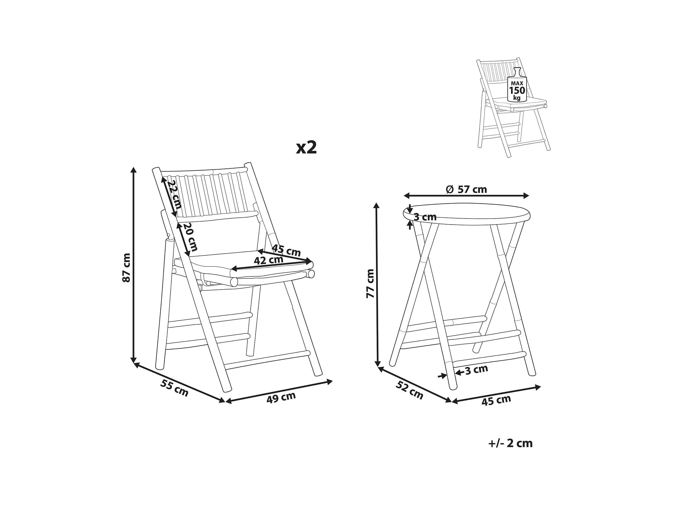 Zestaw stół i krzesła ogrodowe 2-osobowa