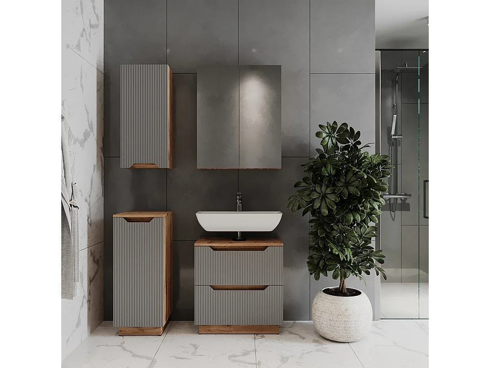 Zestaw mebli łazienkowych dąb/szary w paski 58.9x32x62.5 lotta