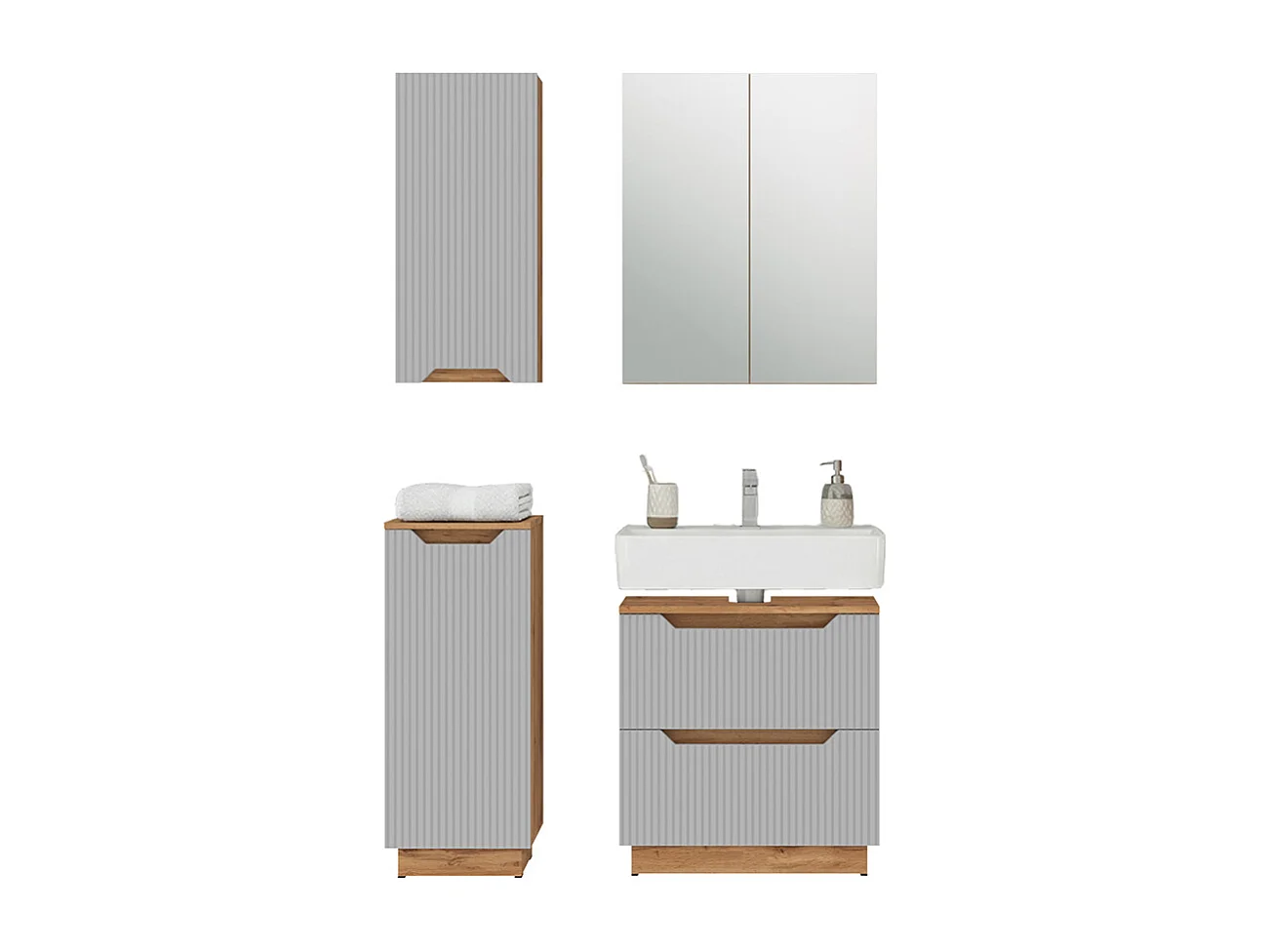 Zestaw mebli łazienkowych dąb/szary w paski 59.8x32x62.5 lotta