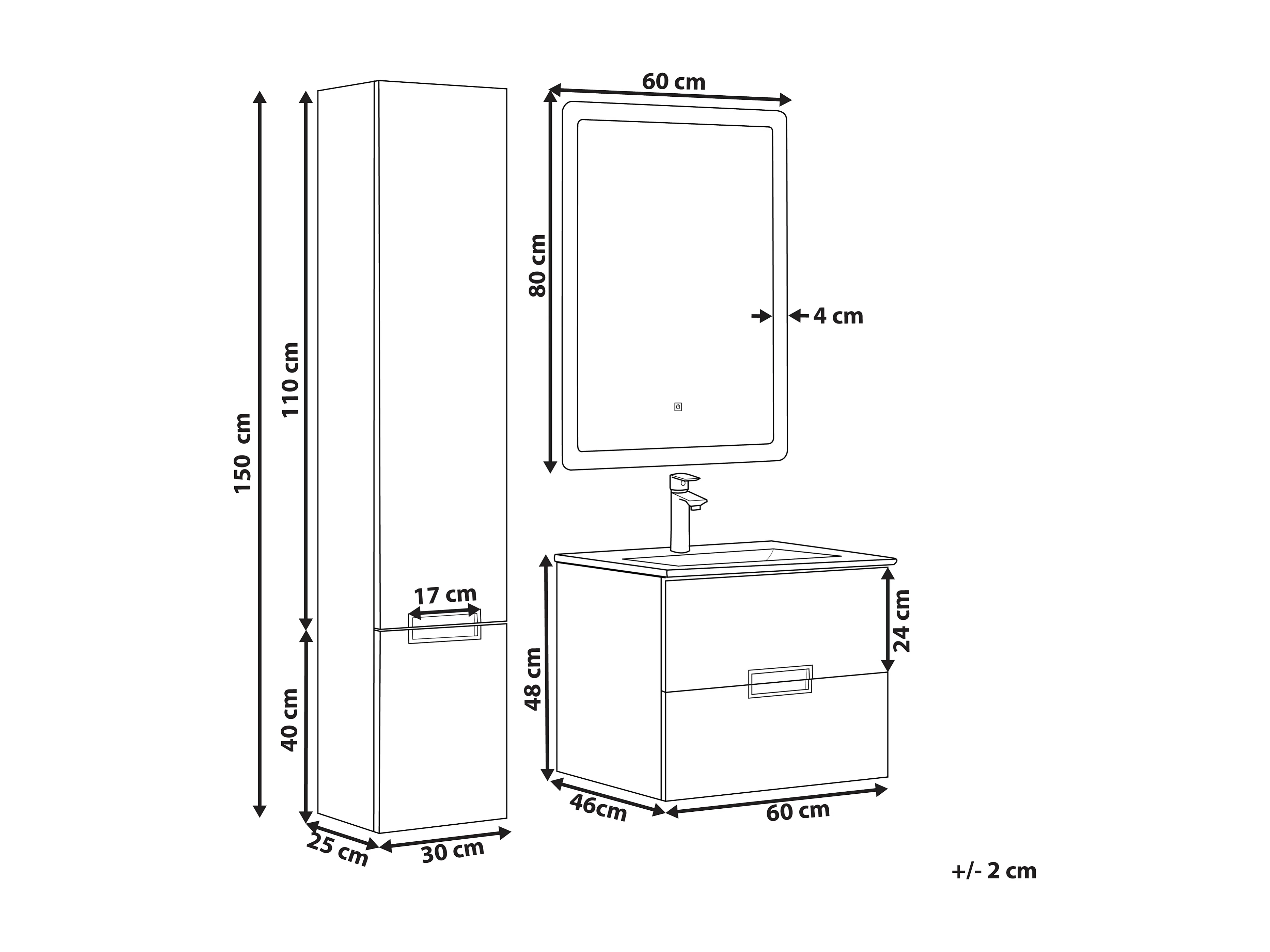 Zestaw mebli łazienkowych z oświetleniem led