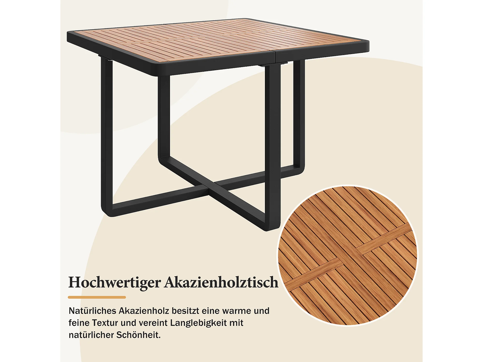 Zestaw mebli ogrodowych 5-osobowy - rozkładany do 2 miejsc do spania - ze stołem i półkami - metalowy - szary