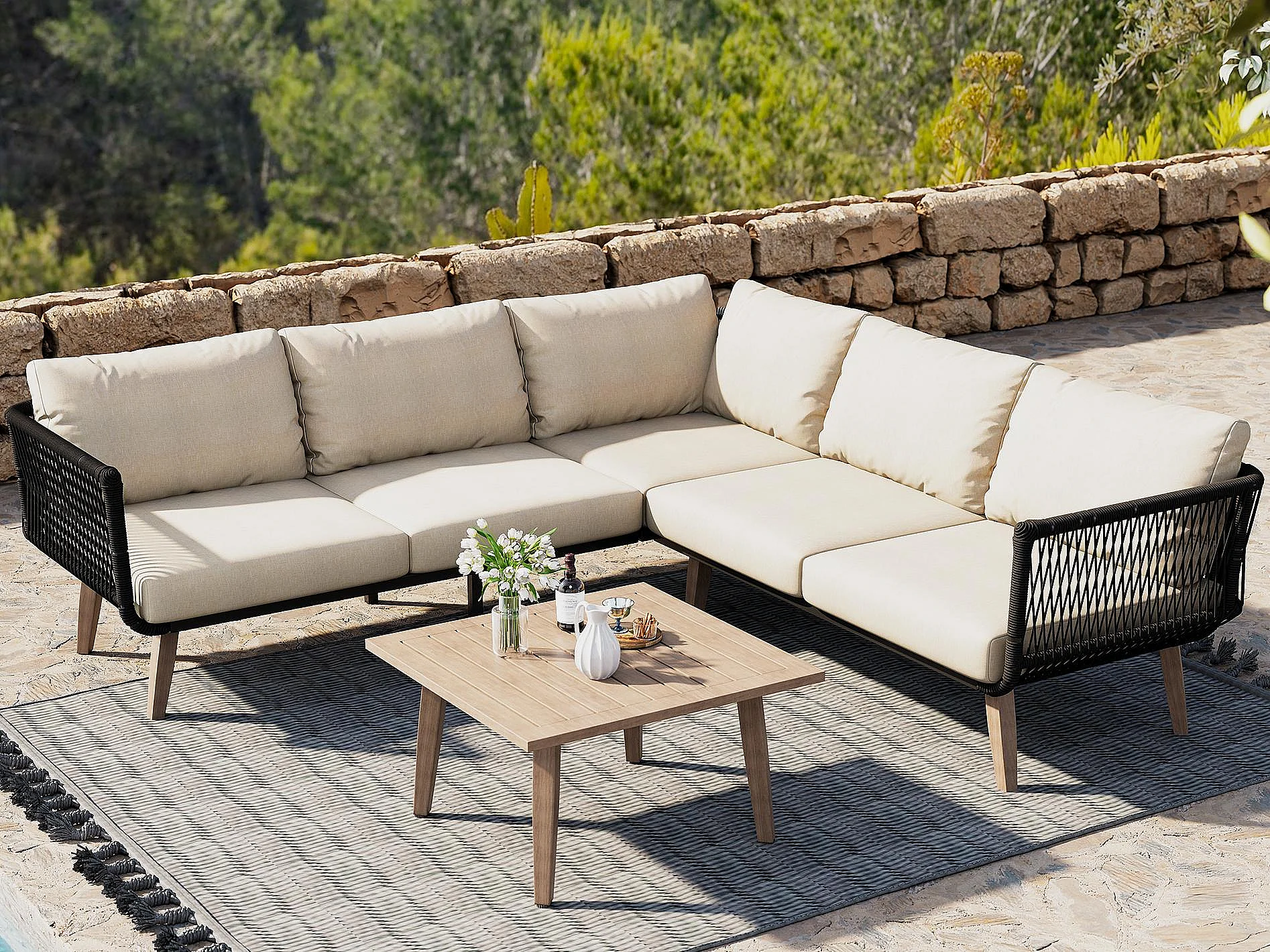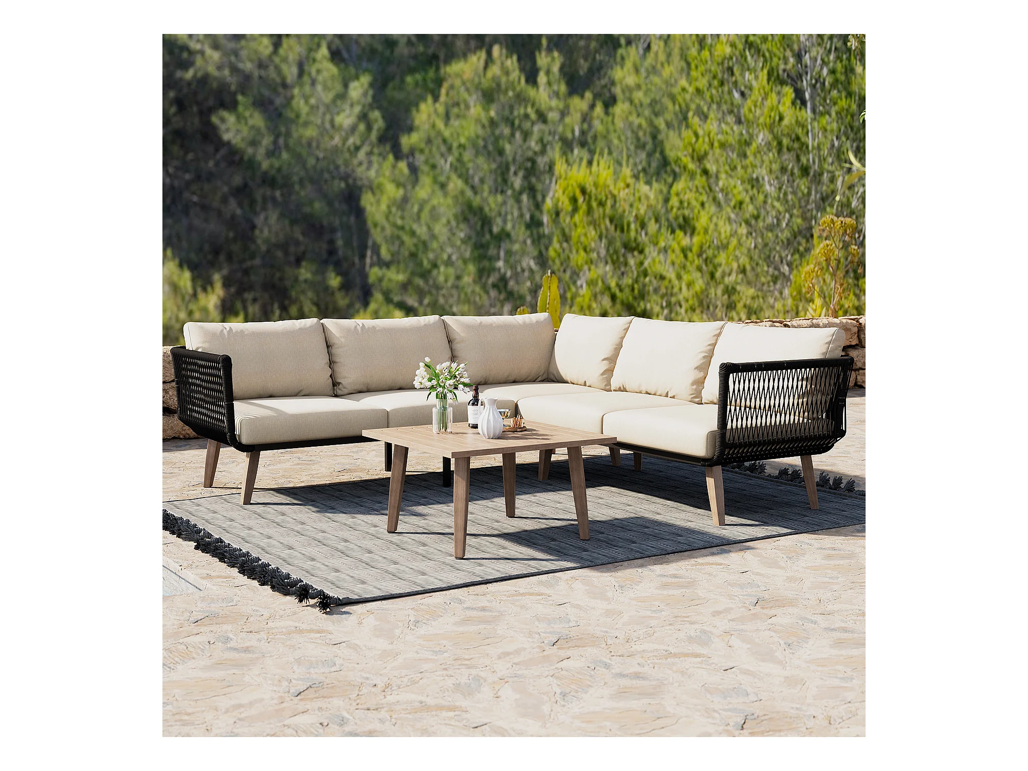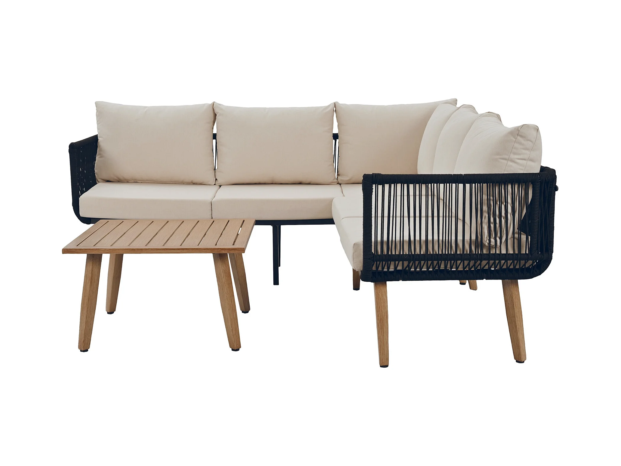 Zestaw mebli ogrodowych, 5 miejsc, narożna sofa, 1 stolik kawowy, na zewnątrz, stal ocynkowana, beżowy