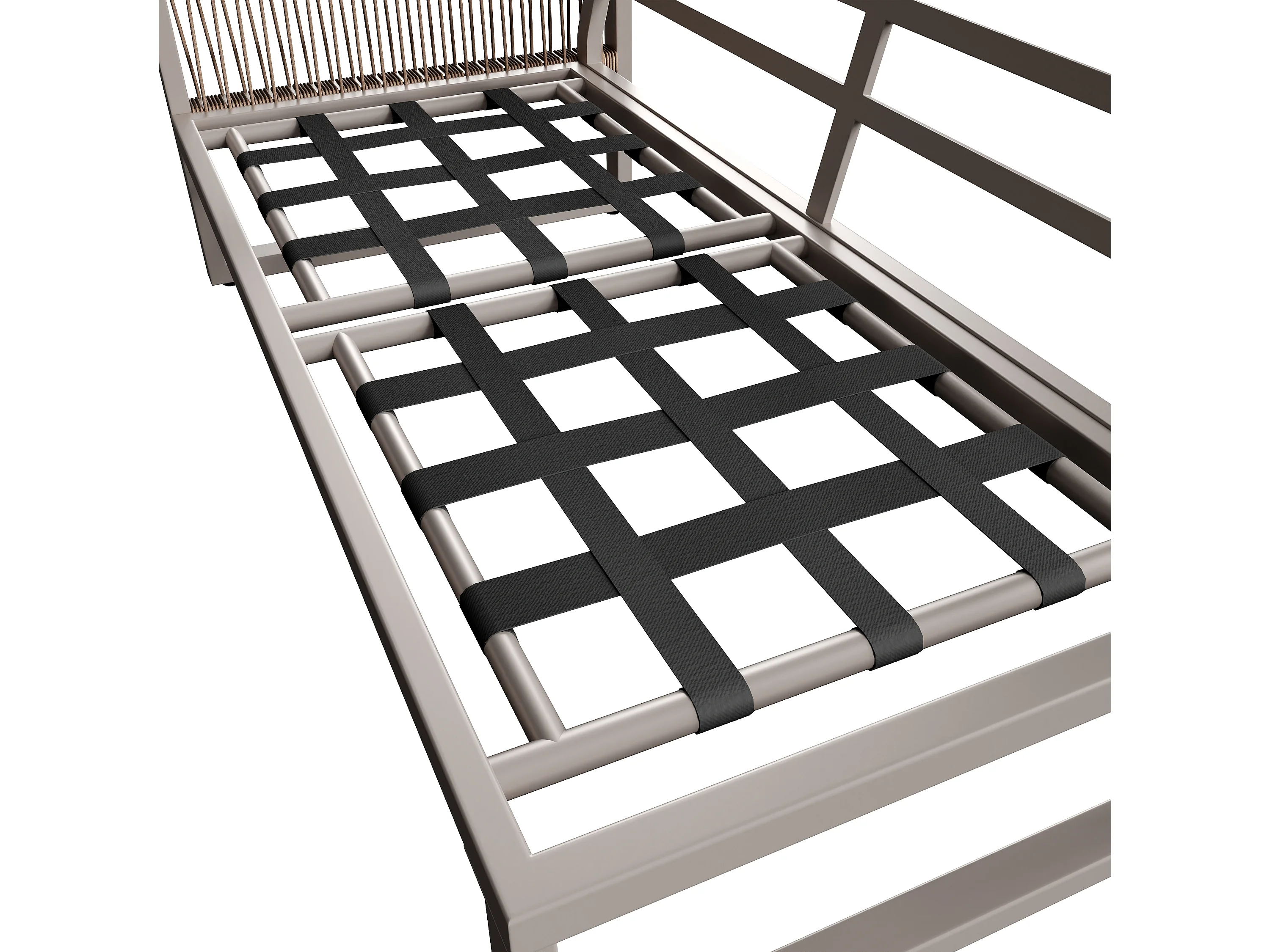 Zestaw mebli ogrodowych - z liną - z galwanizowanej stali, regulowane nogi, narożna sofa, 1 fotel, 1 stołek, beżowy