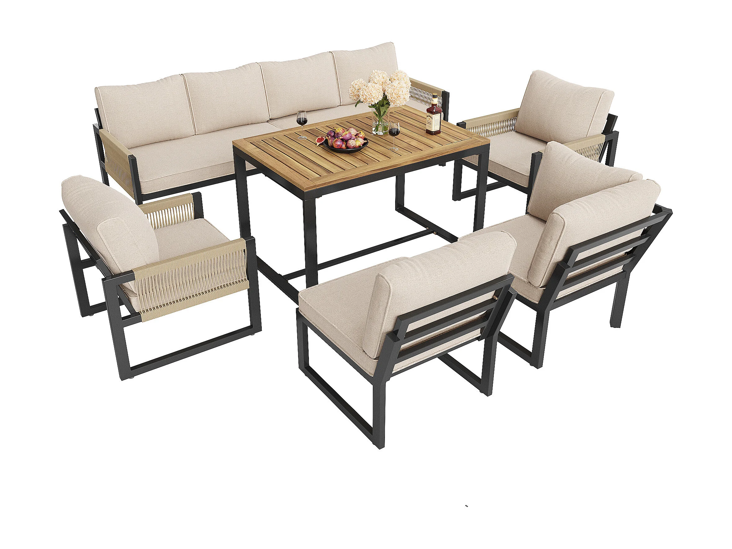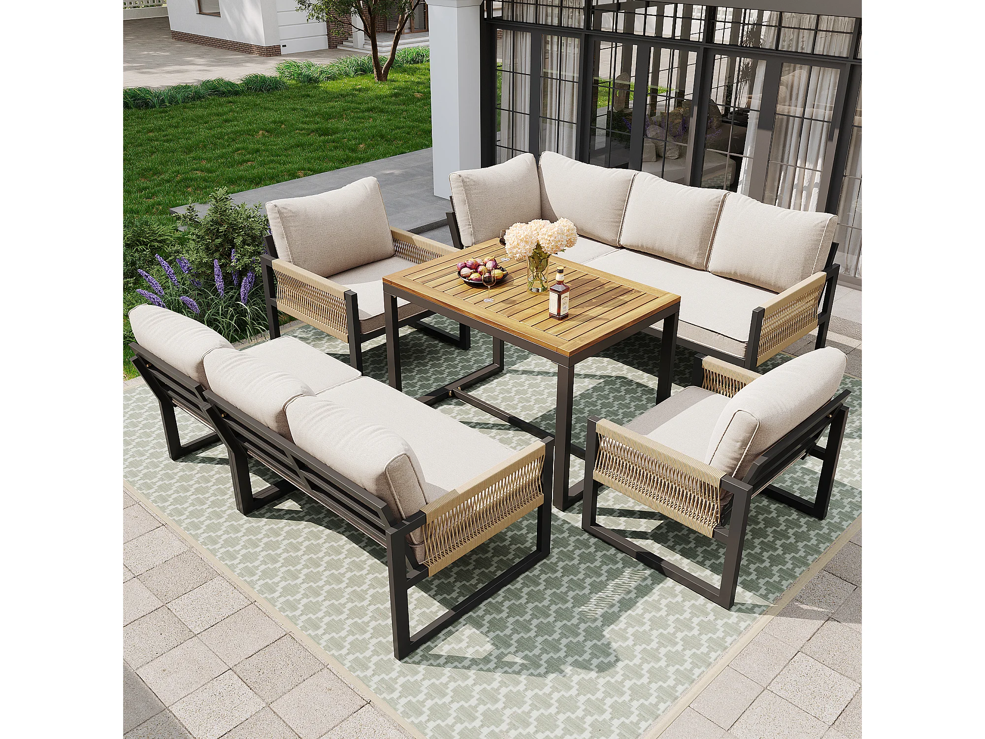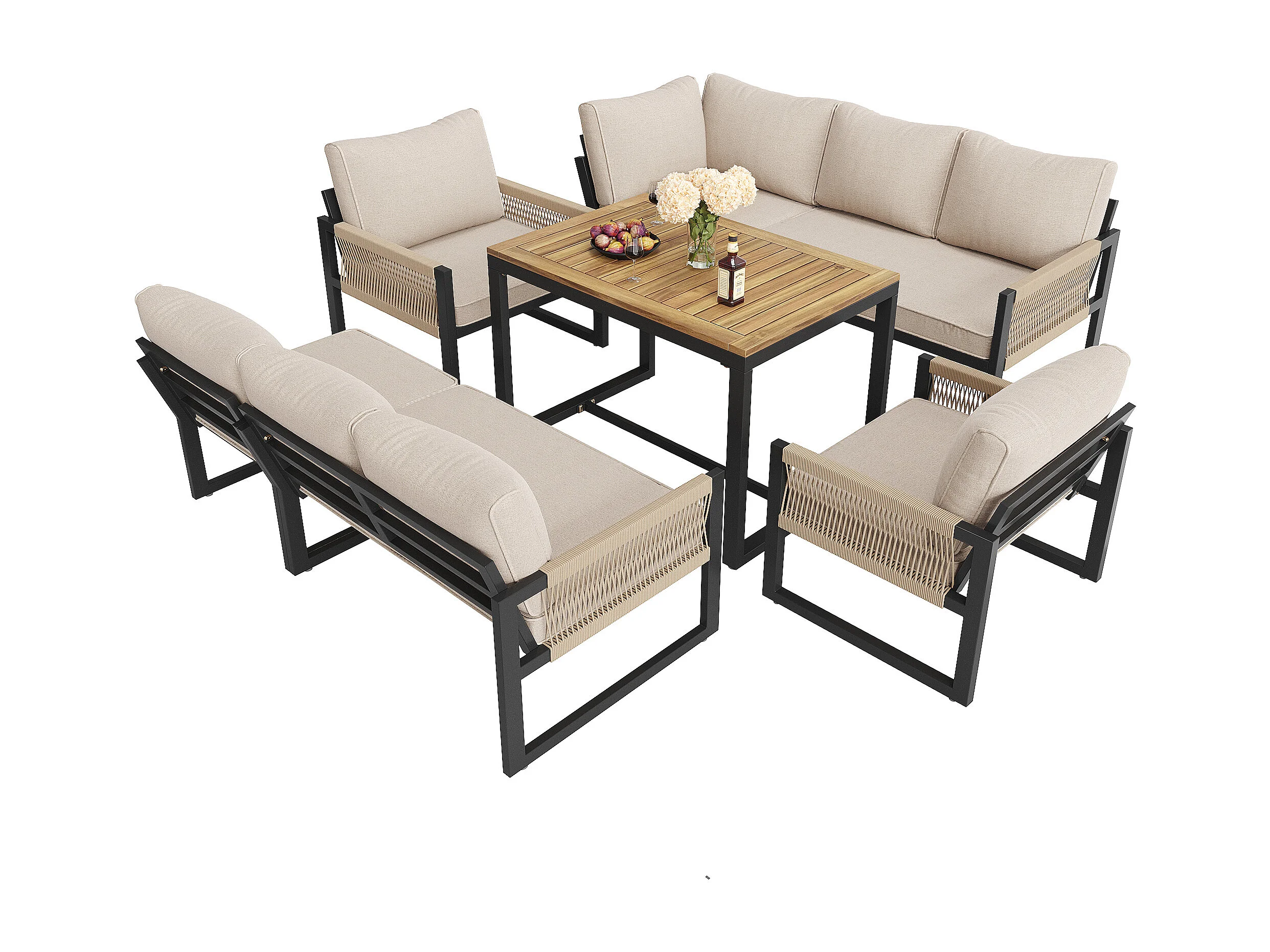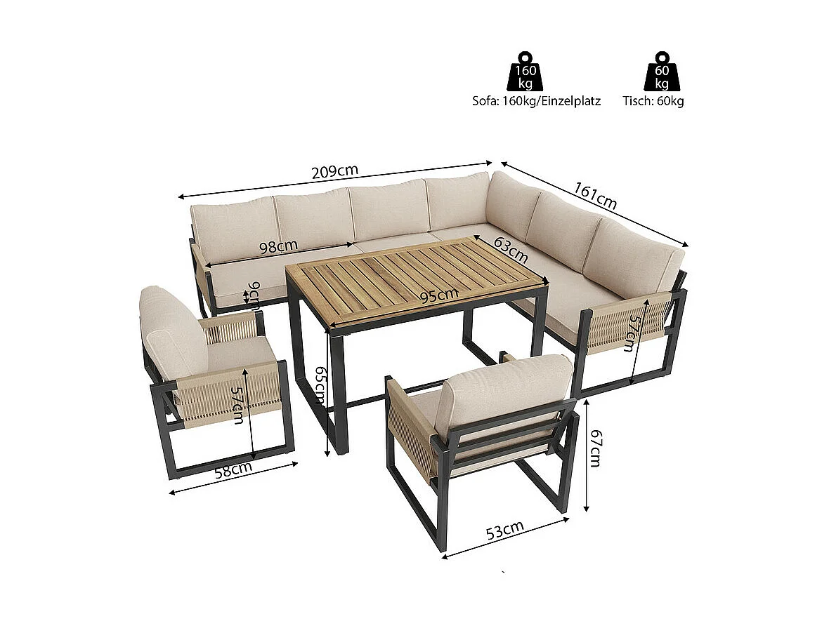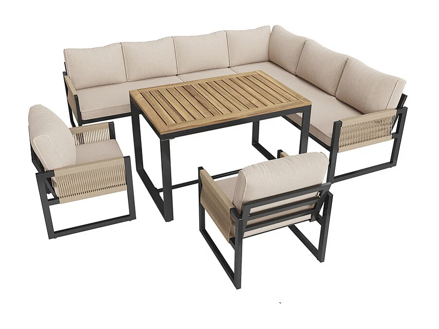 Zestaw mebli ogrodowych do jadalni dla 7-8 osób - narożnik - 2 fotele - 1 stół - beżowy