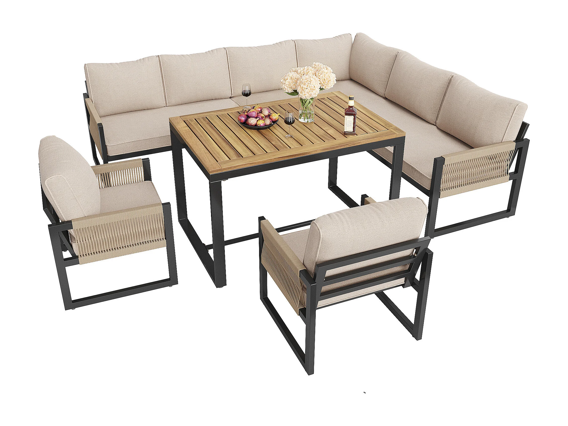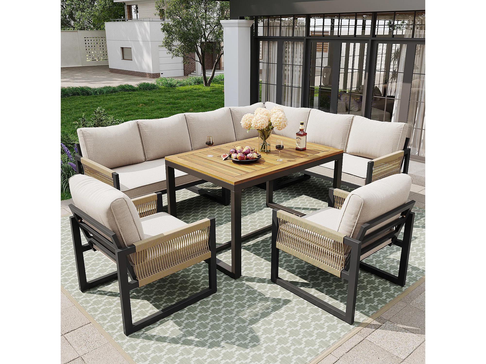 Zestaw mebli ogrodowych metalowych modułowych: 1 narożnik 4-osobowy + 4 fotele + 1 stolik kawowy - Beżowy