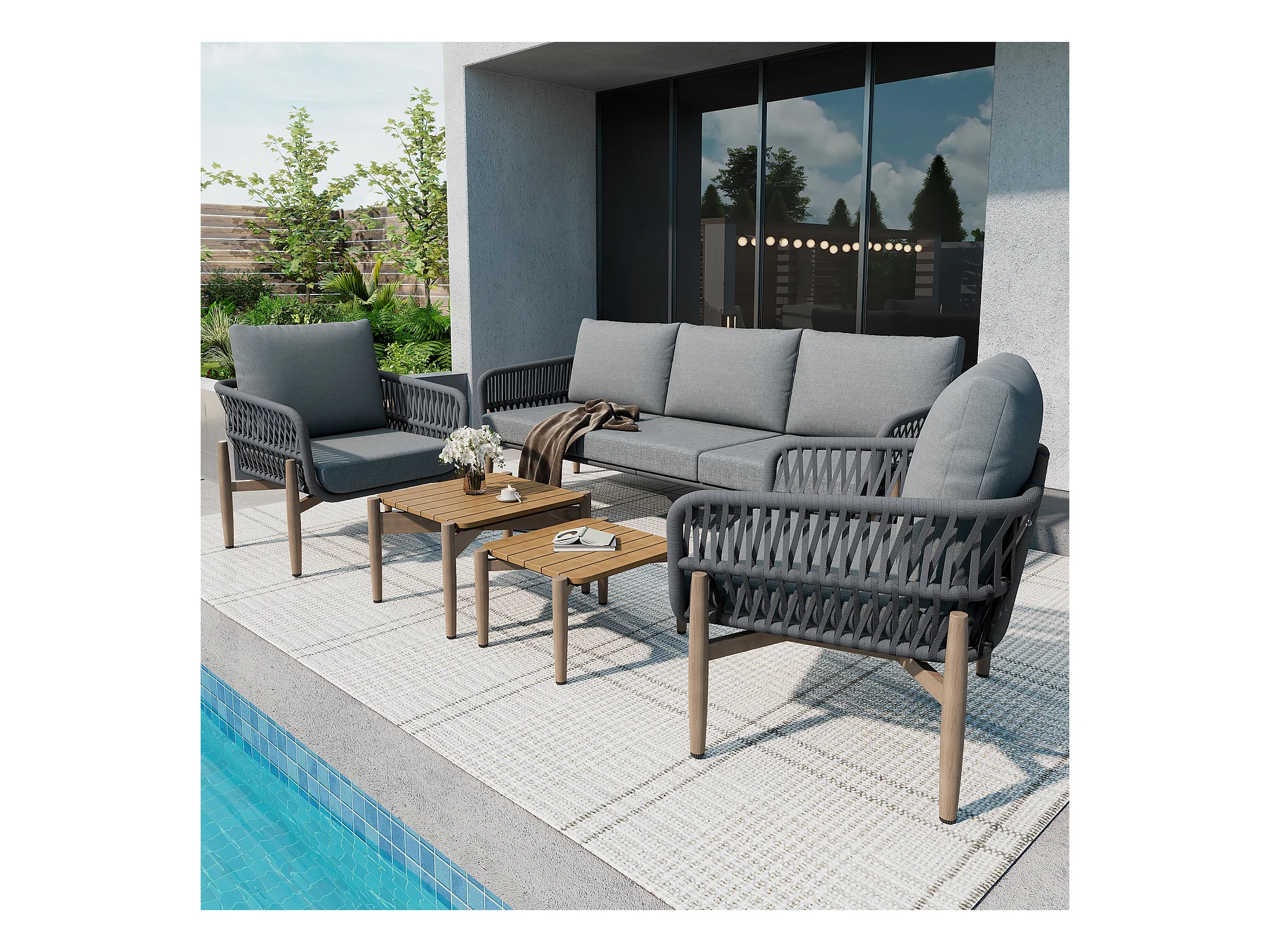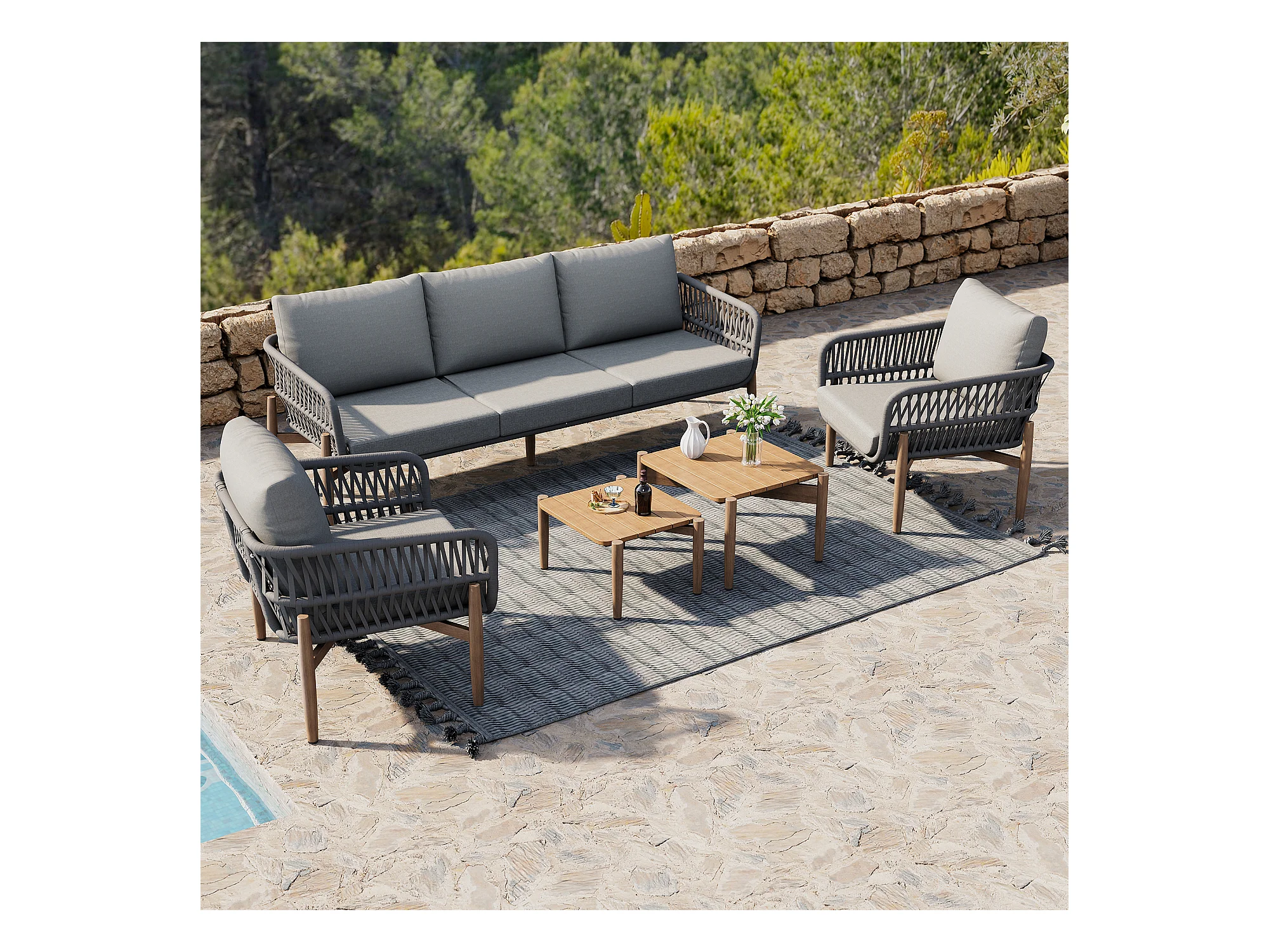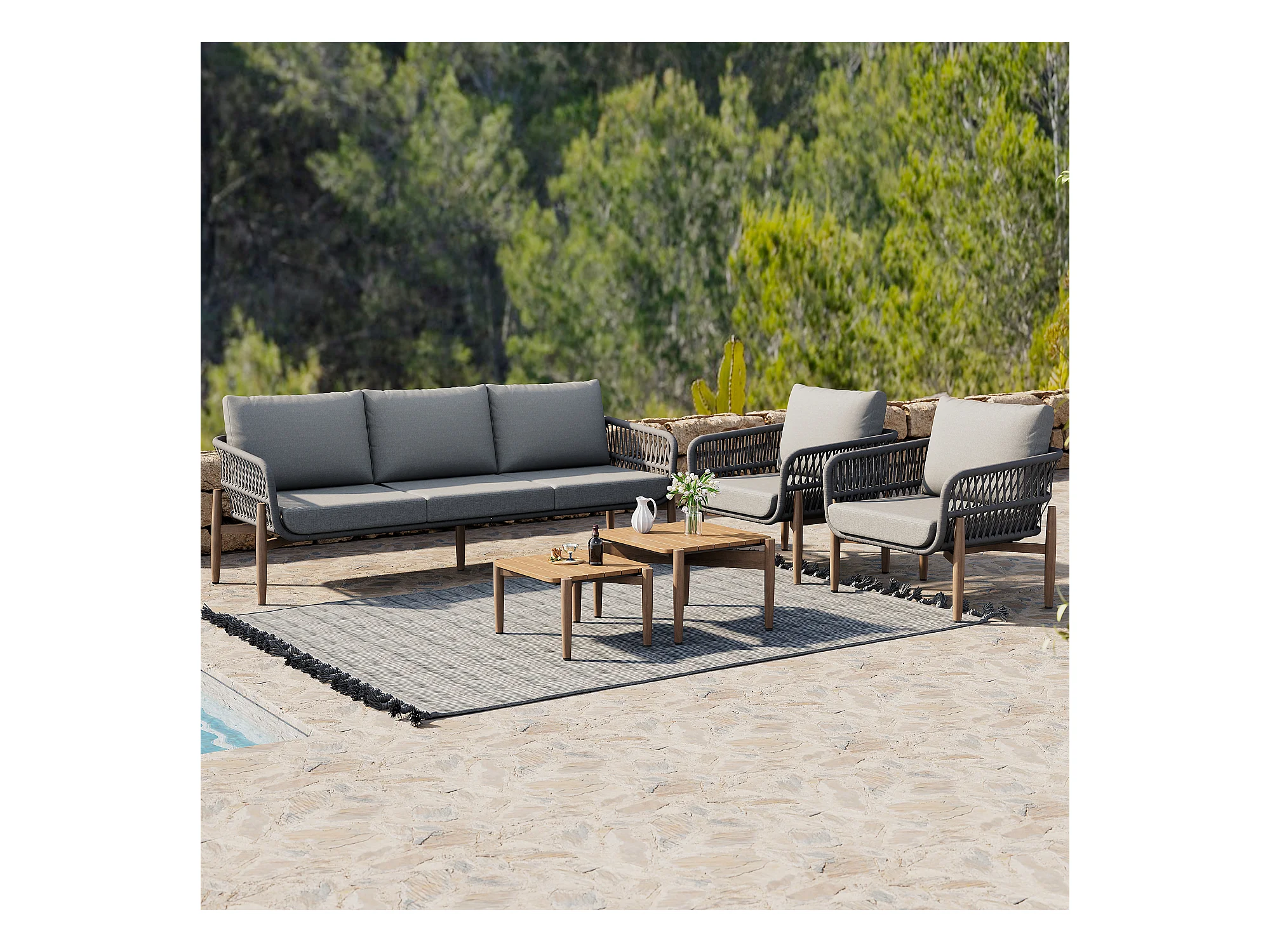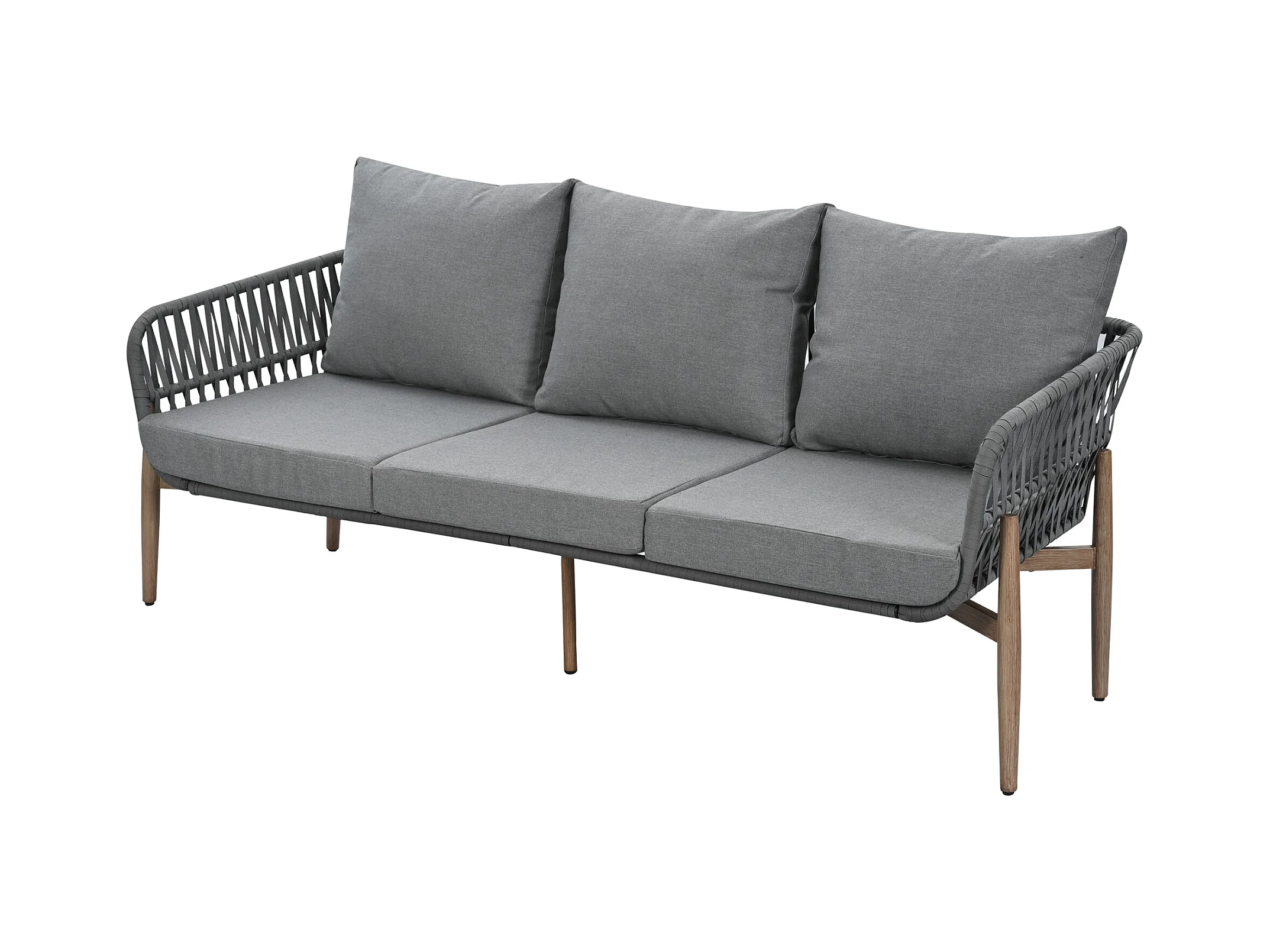 Zestaw mebli ogrodowych modułowych 5-osobowych ze stali ocynkowanej: 1 sofa 3-osobowa + 2 fotele + stoliki kawowe - Szary
