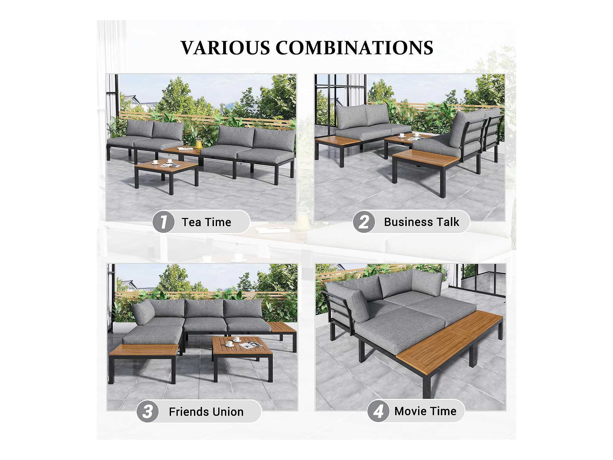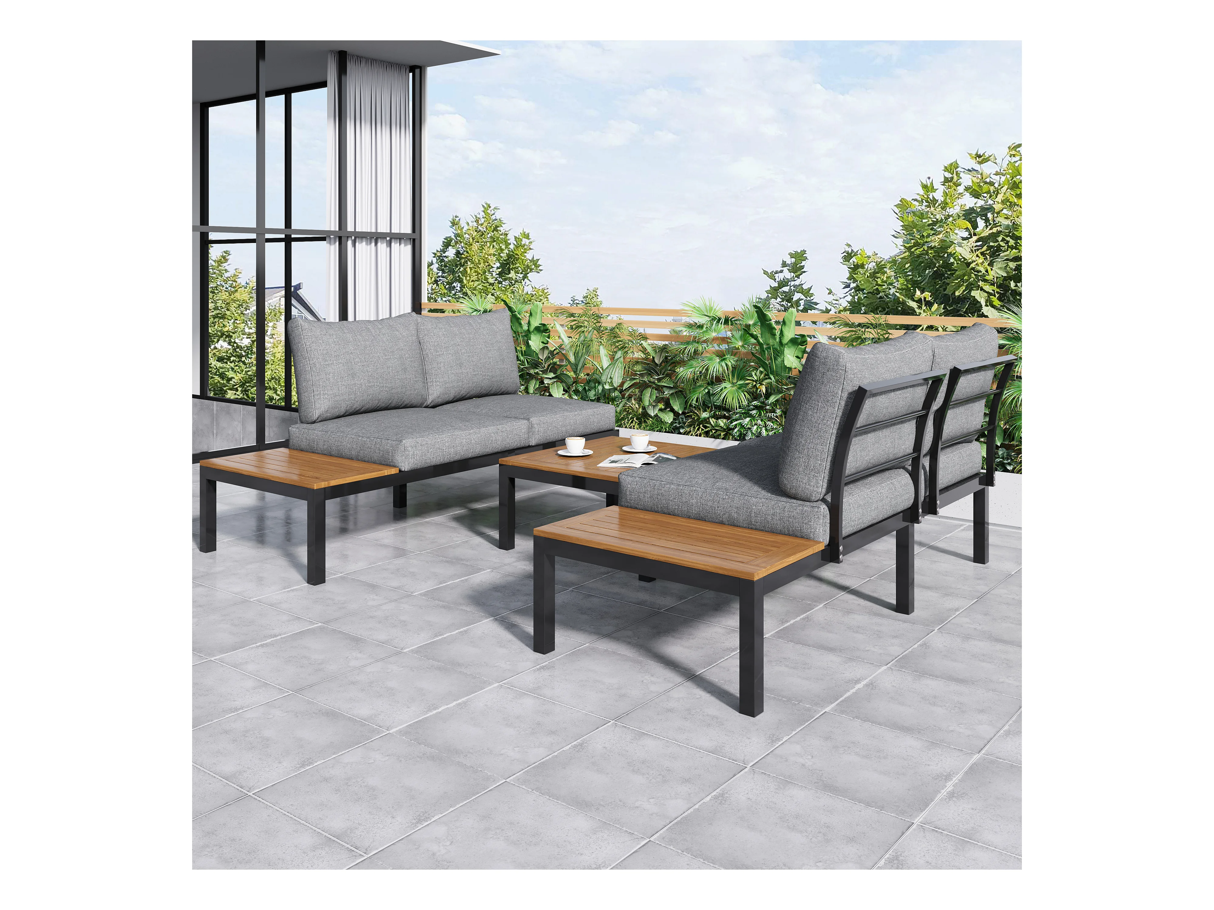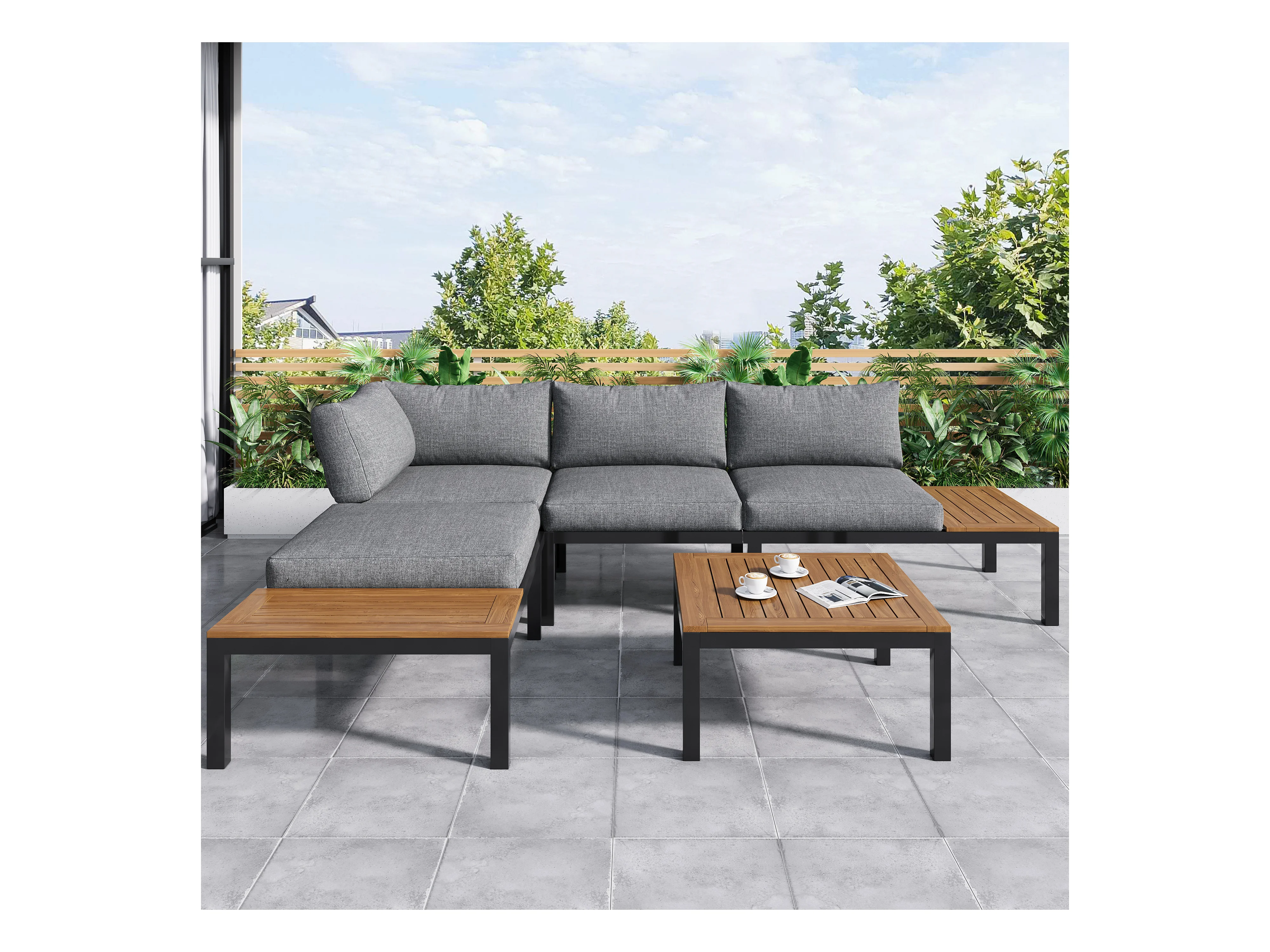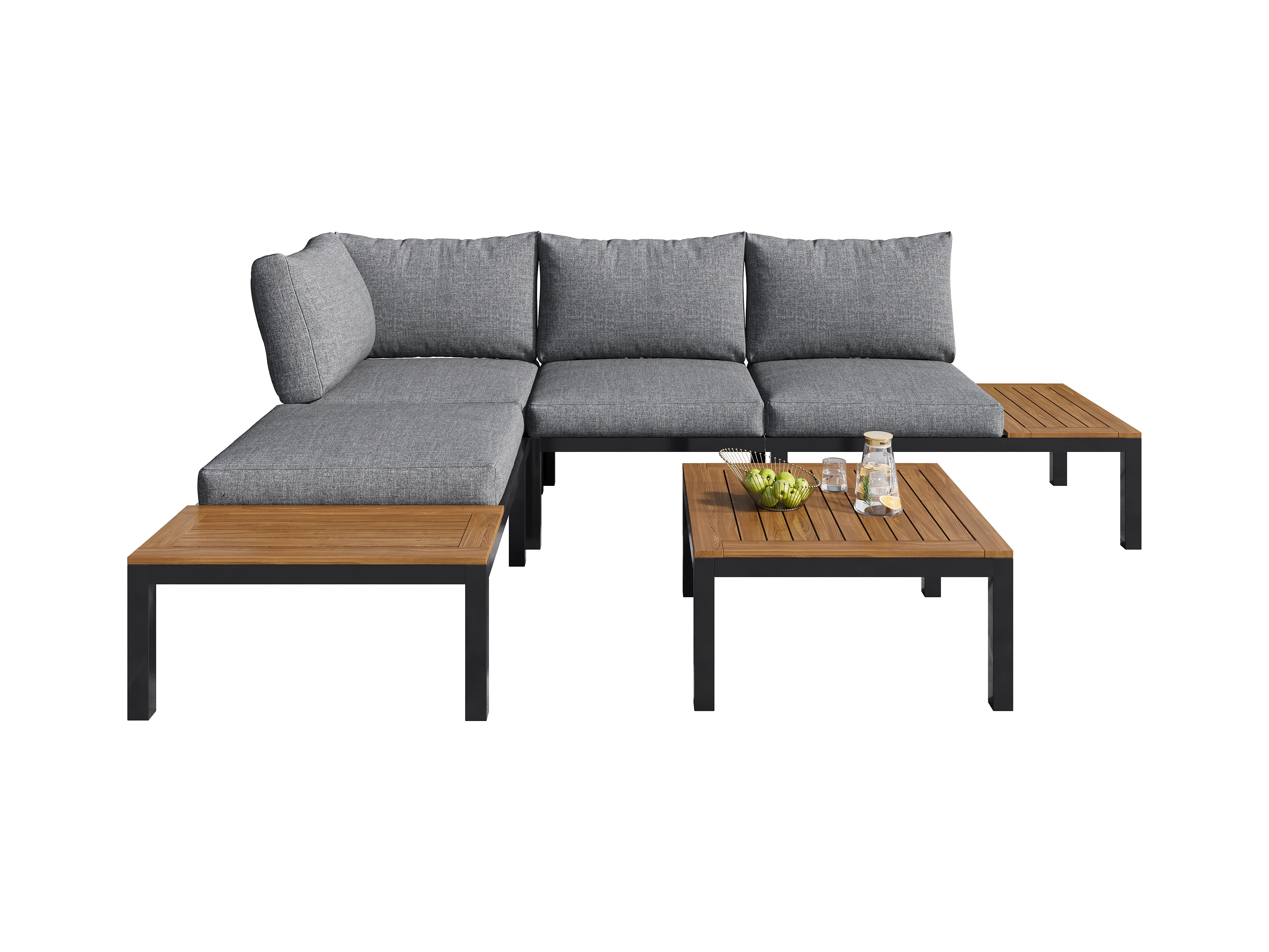 Zestaw mebli ogrodowych modułowych z drewna akacjowego: 1 sofa narożna + 2 stoliki boczne + 1 stolik kawowy - Szary + brązowy