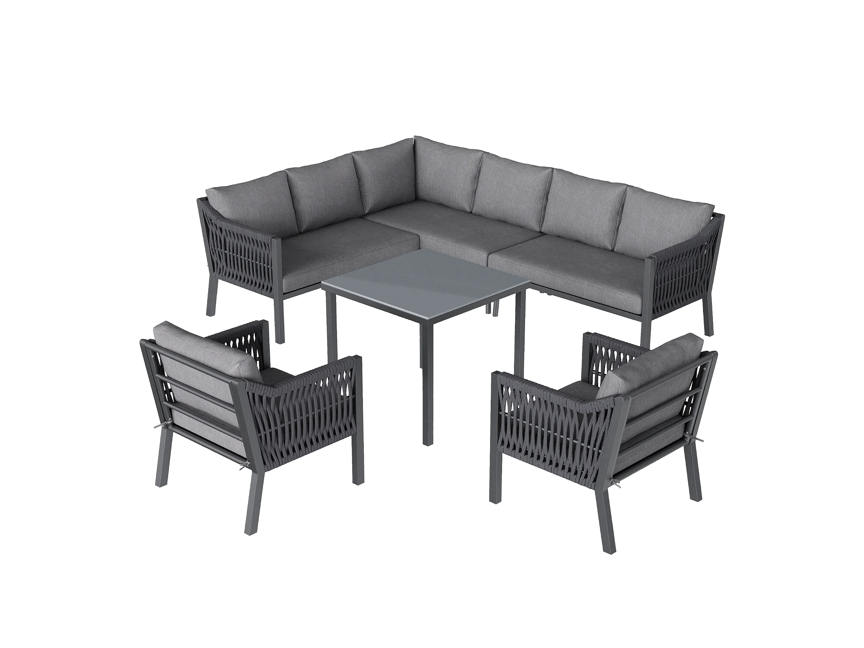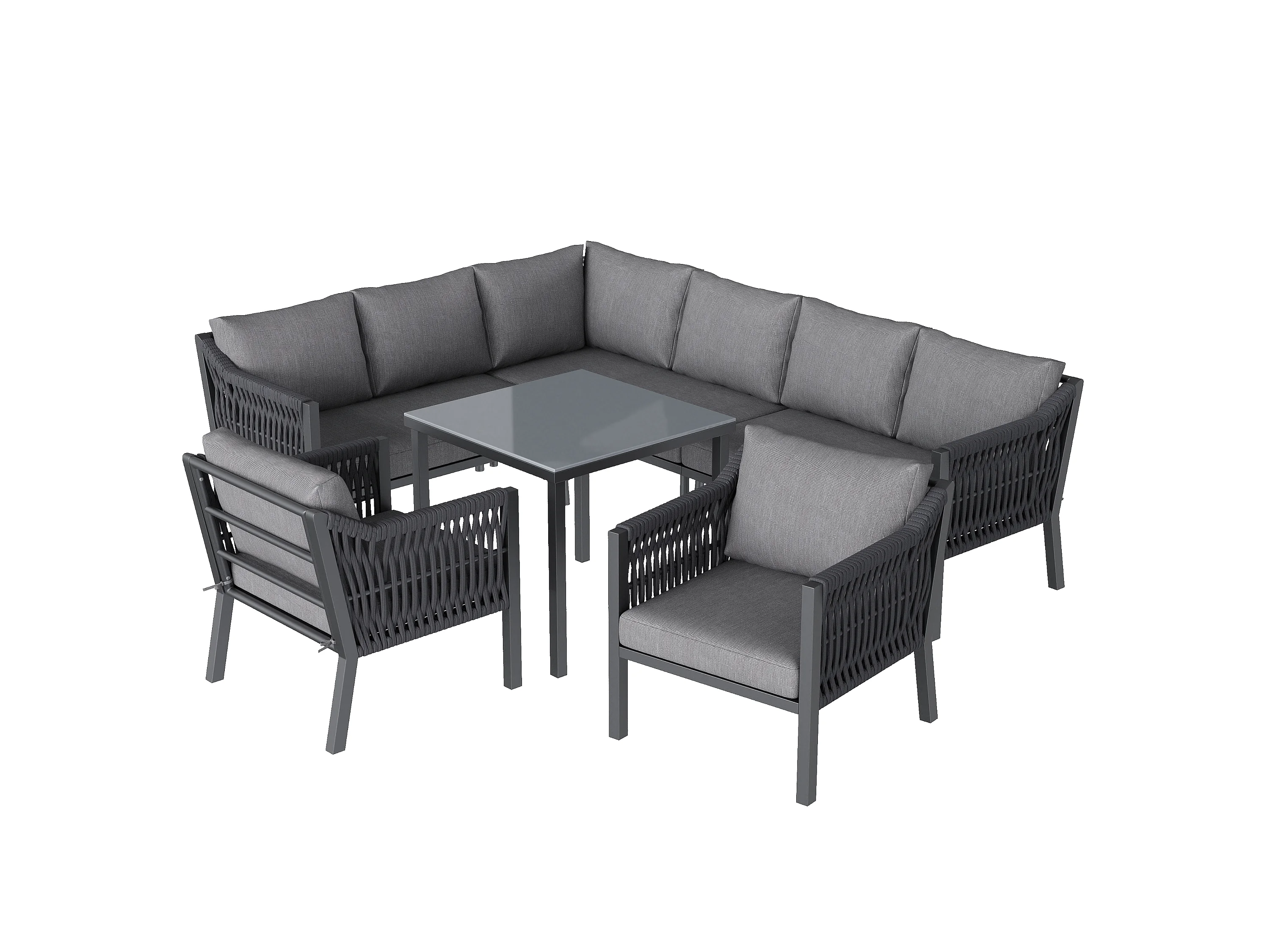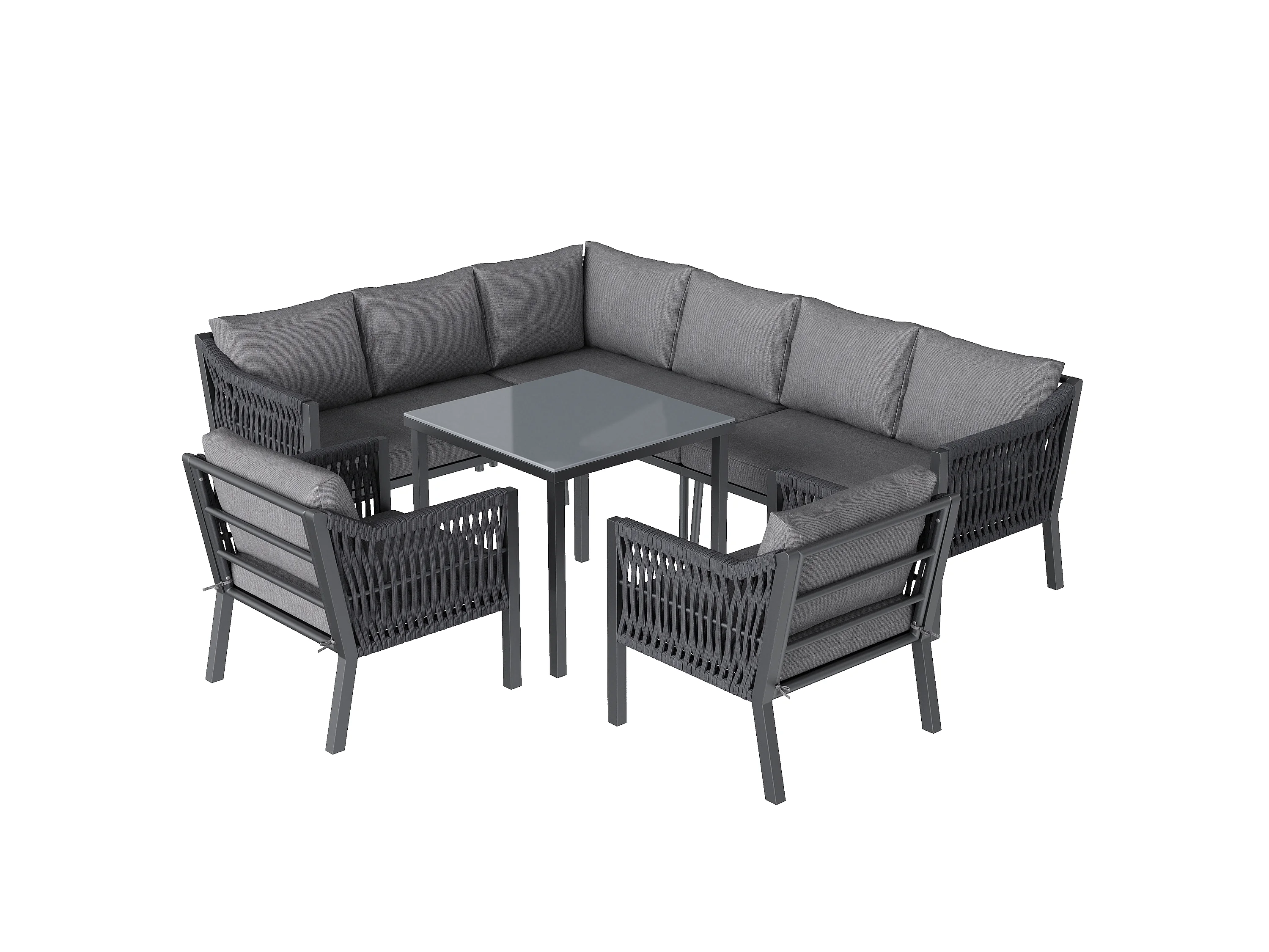 Zestaw mebli ogrodowych na 8 osób, w skład którego wchodzi 1 stół jadalny, 2 fotele i 1 narożnik - Stal ocynkowana - Szara