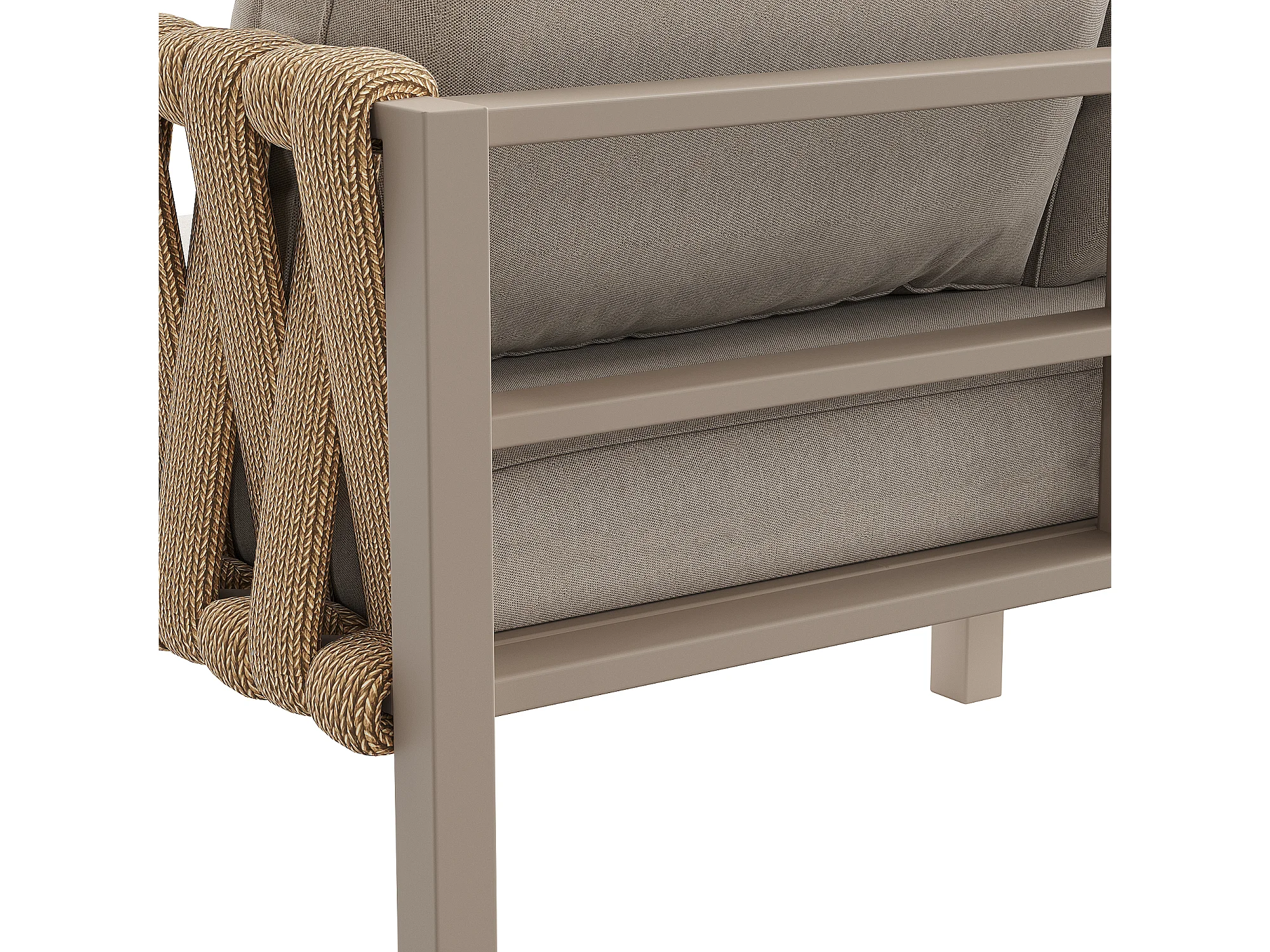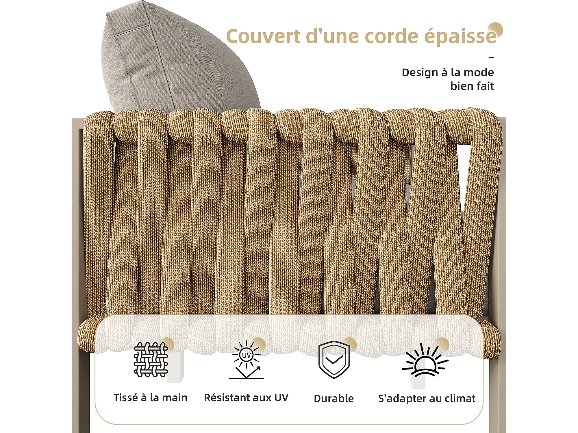 Zestaw mebli ogrodowych - z liną - z galwanizowanej stali, regulowane nogi, narożna sofa, 1 fotel, 1 stołek, beżowy