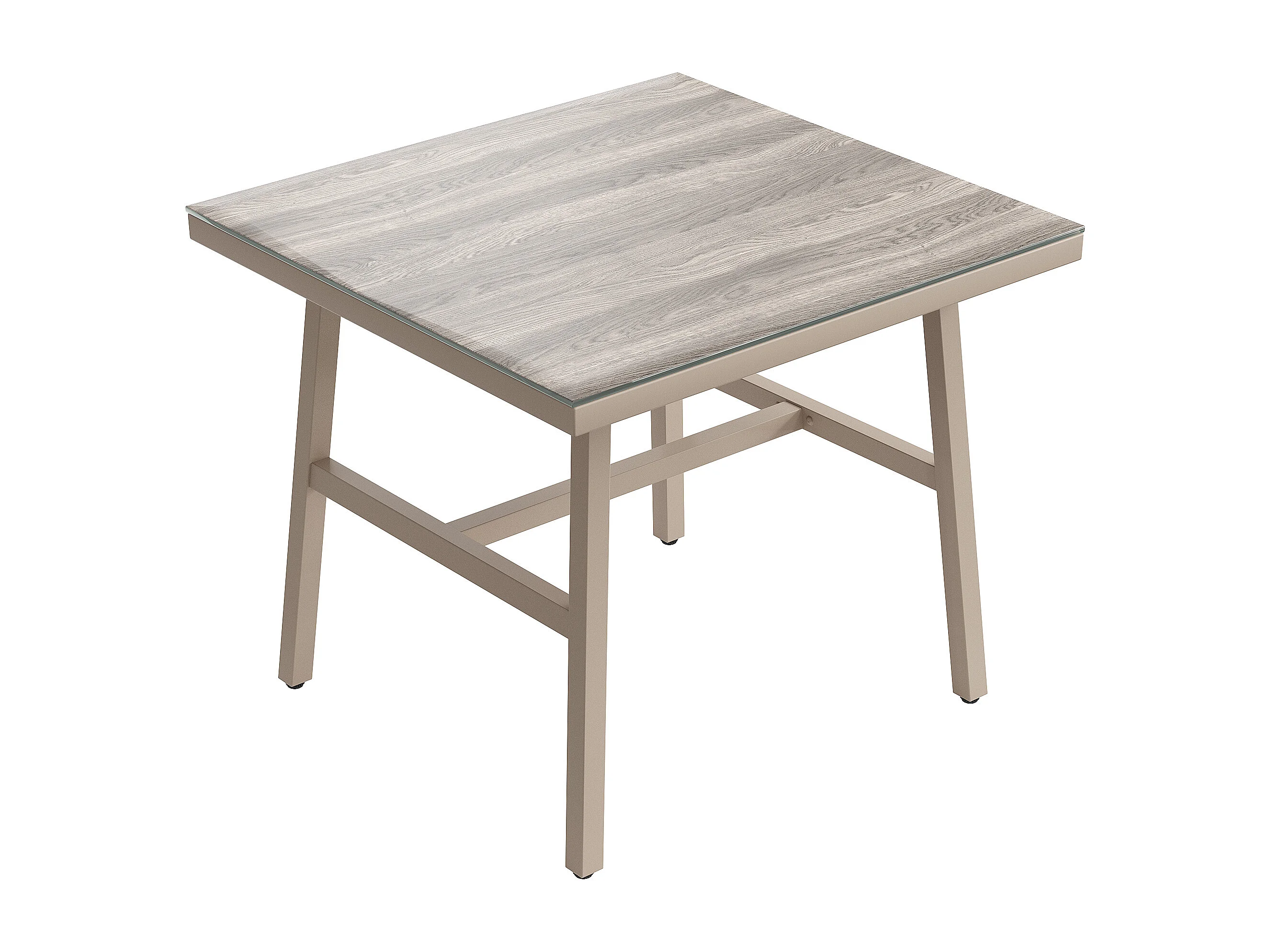 Wielofunkcyjny zestaw mebli ogrodowych ze stali ocynkowanej i dekorowany drewnem akacjowym - 4 miejsca - narożna sofa i 1 stolik kawowy - Beżowy