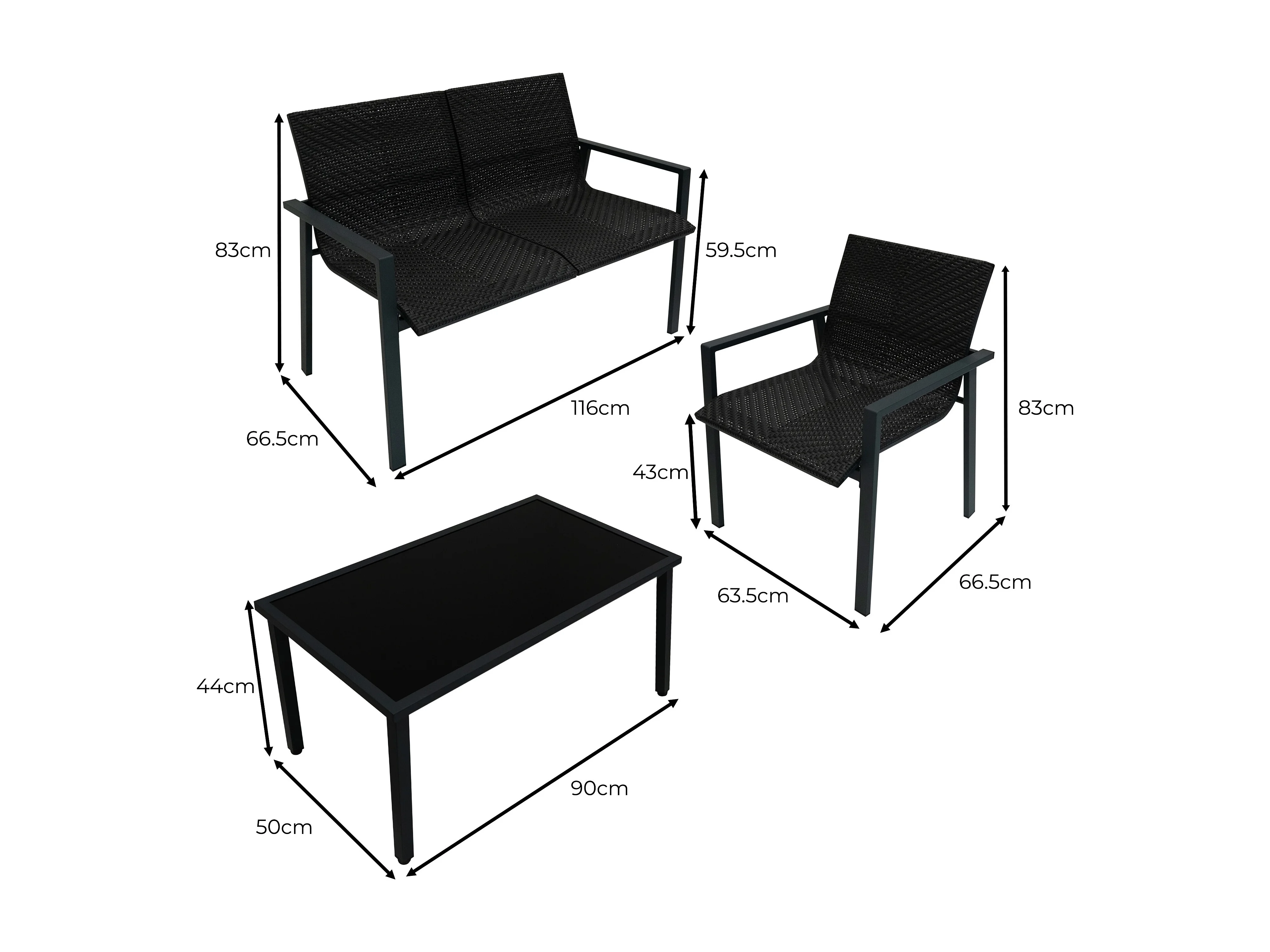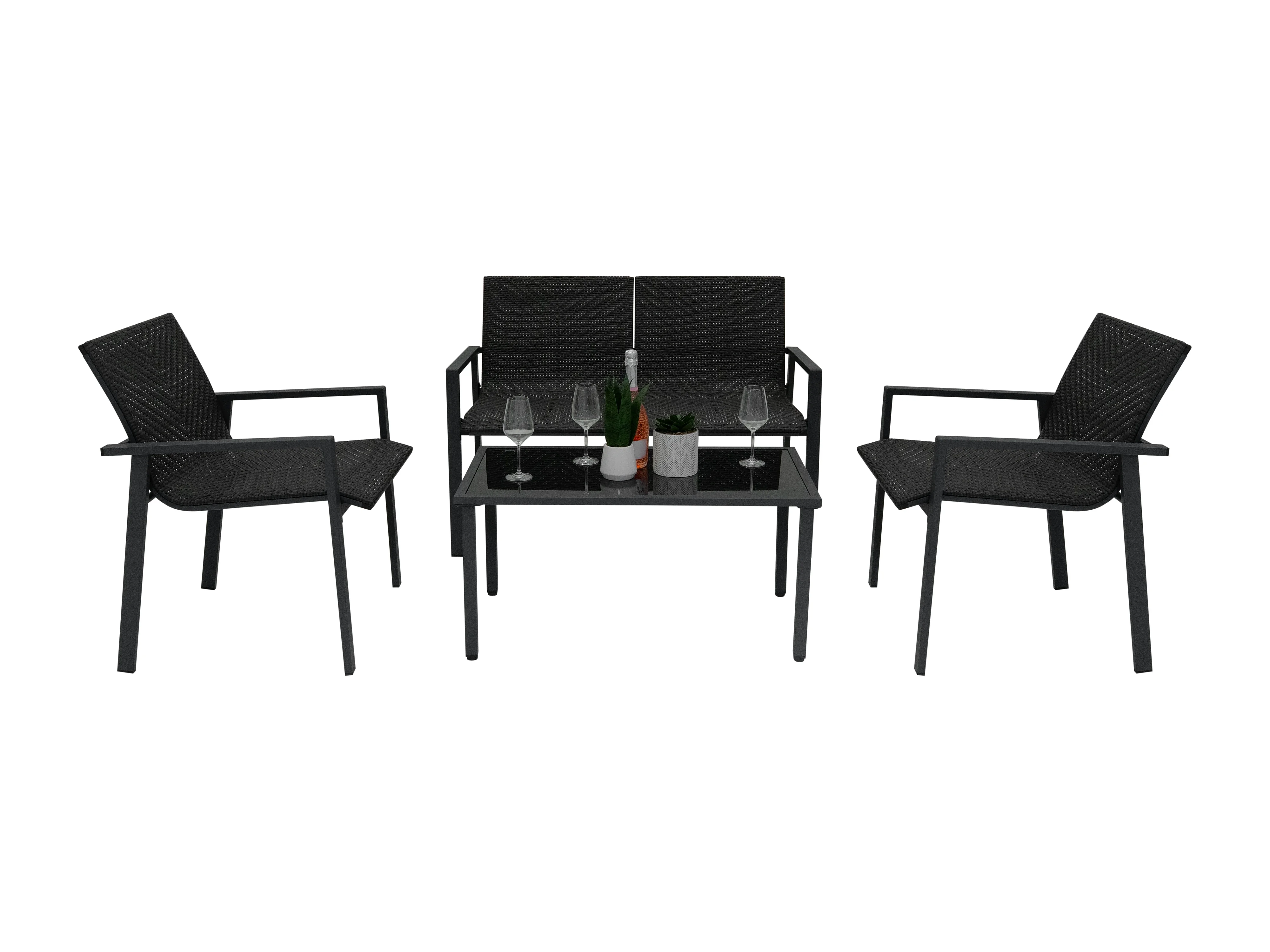 Zestaw mebli ogrodowych z rattanu - czarny