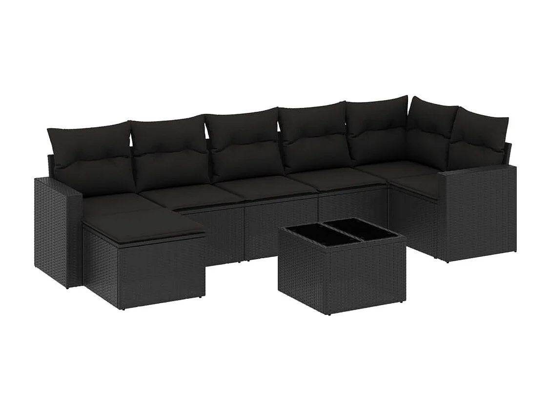 Zestaw modułowych sof ogrodowych z pojemnikiem i poduszkami z czarnego plecionego rattanu