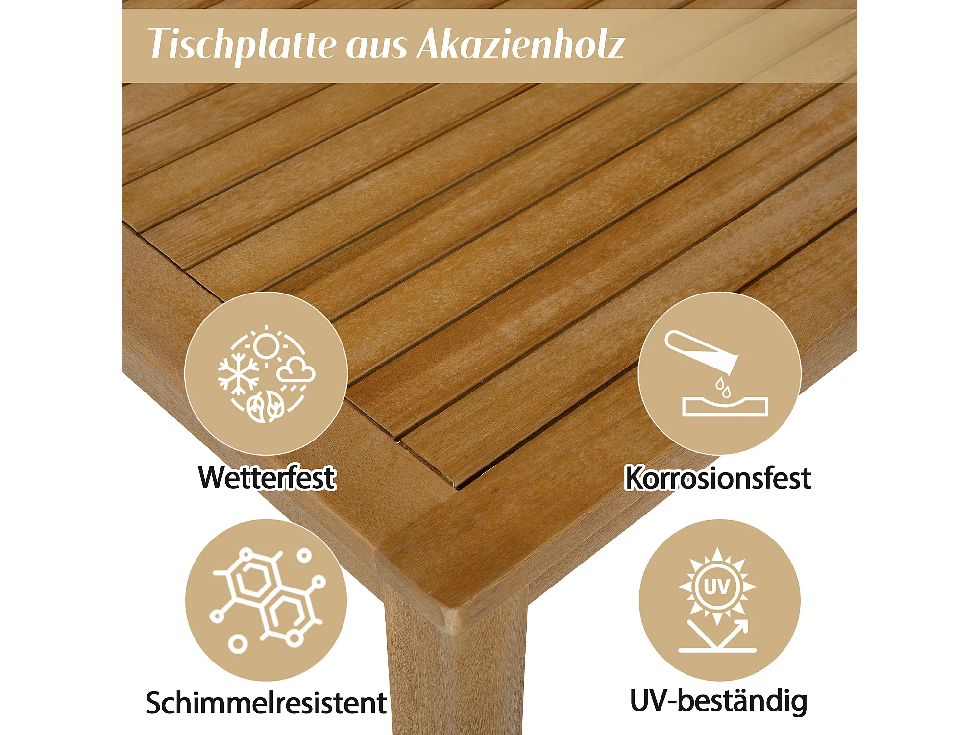 Zestaw mebli ogrodowych modułowych z drewna akacjowego: 1 sofa 2-osobowa + 2 fotele + 1 stolik kawowy - Beżowy