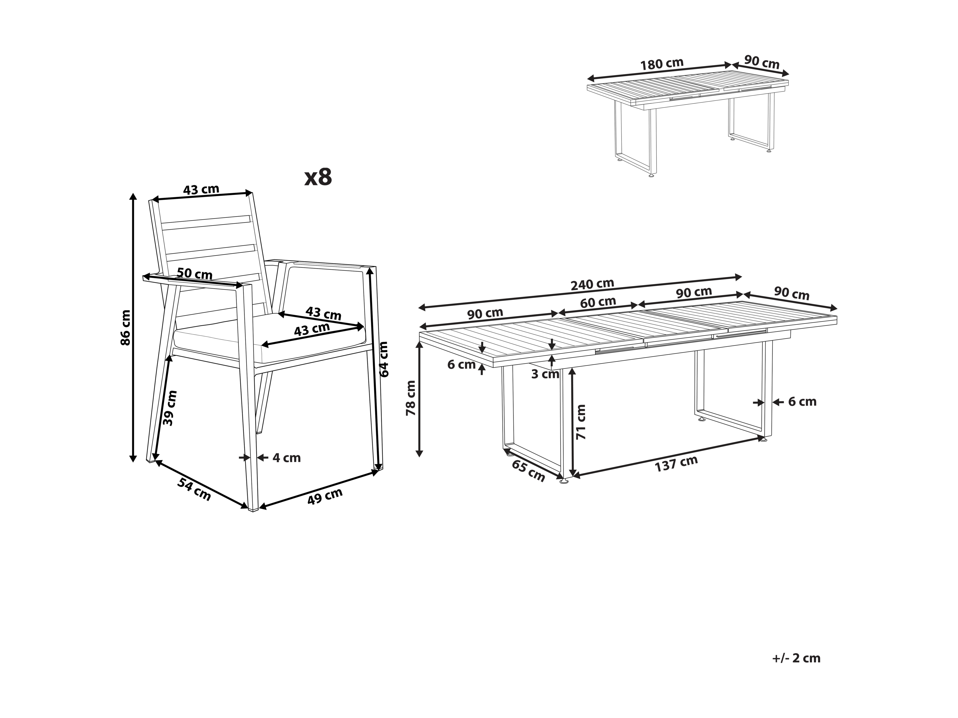 Zestaw ogrodowy dla 8 osób VALCANETTO/TAVIANO z poduszkami Metal Czarny