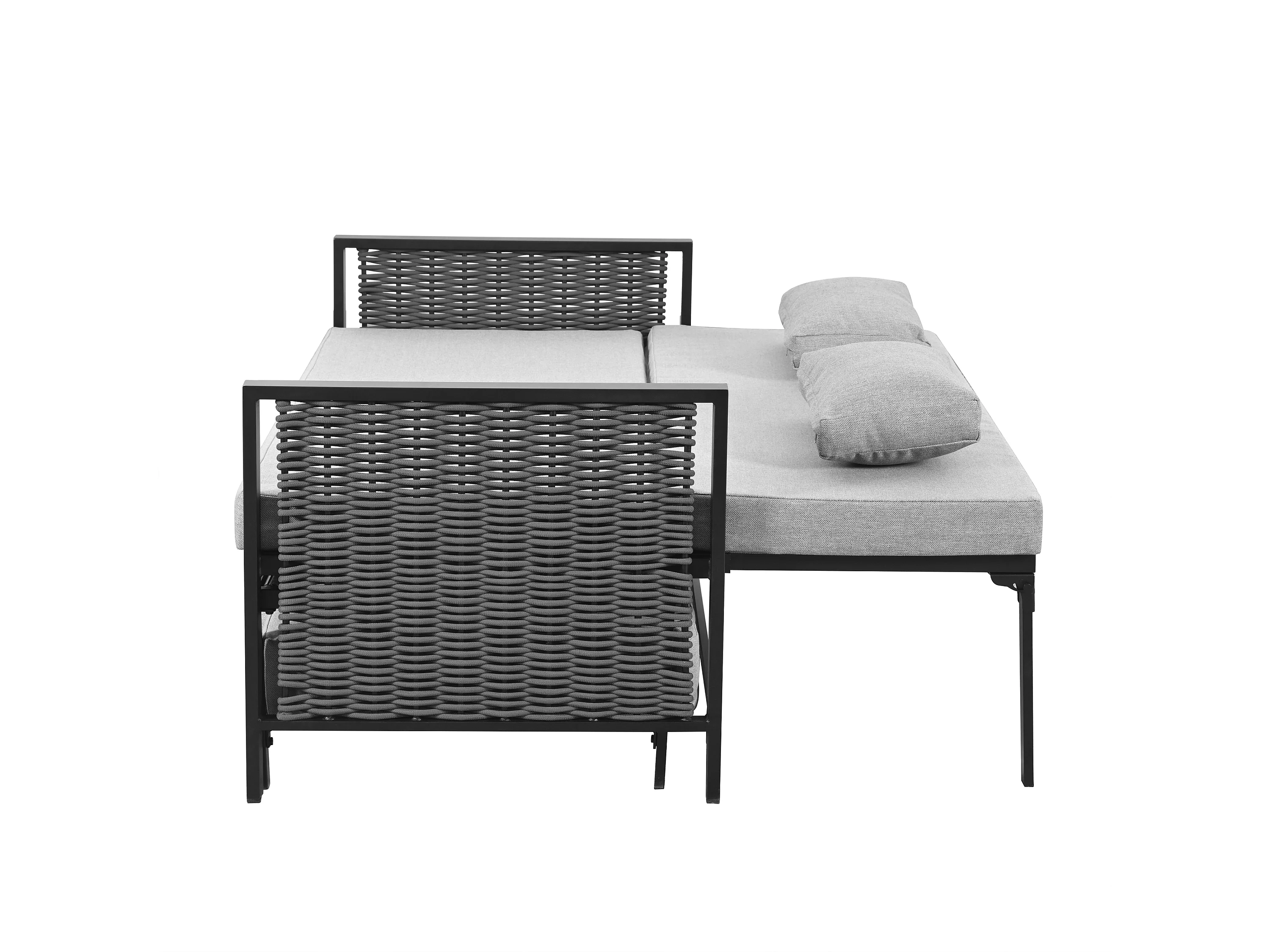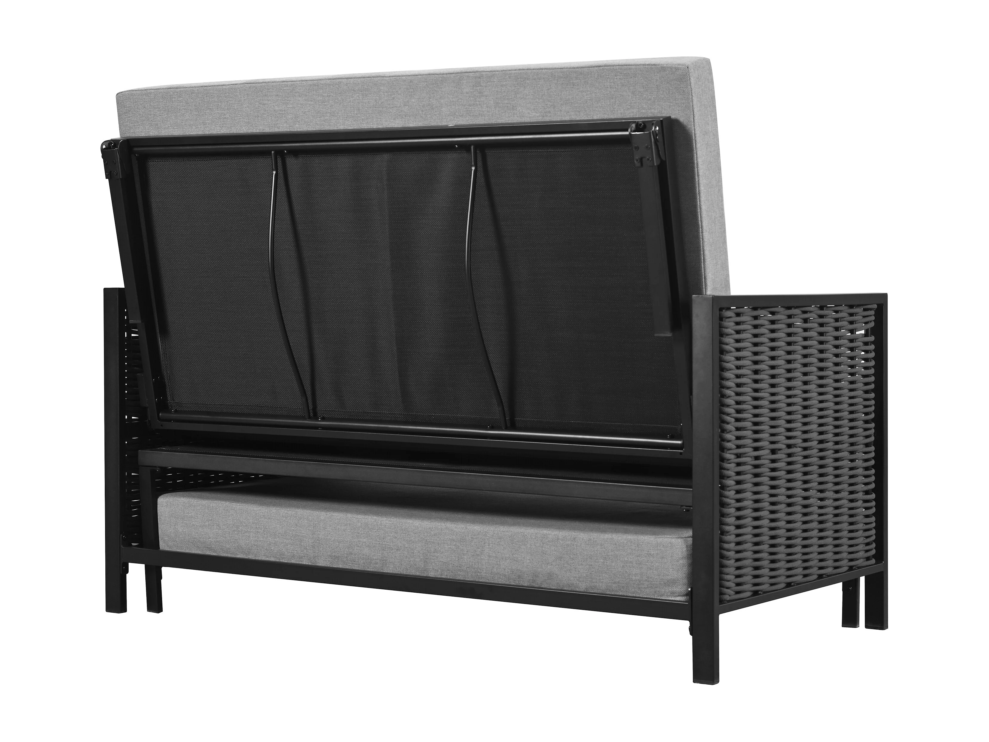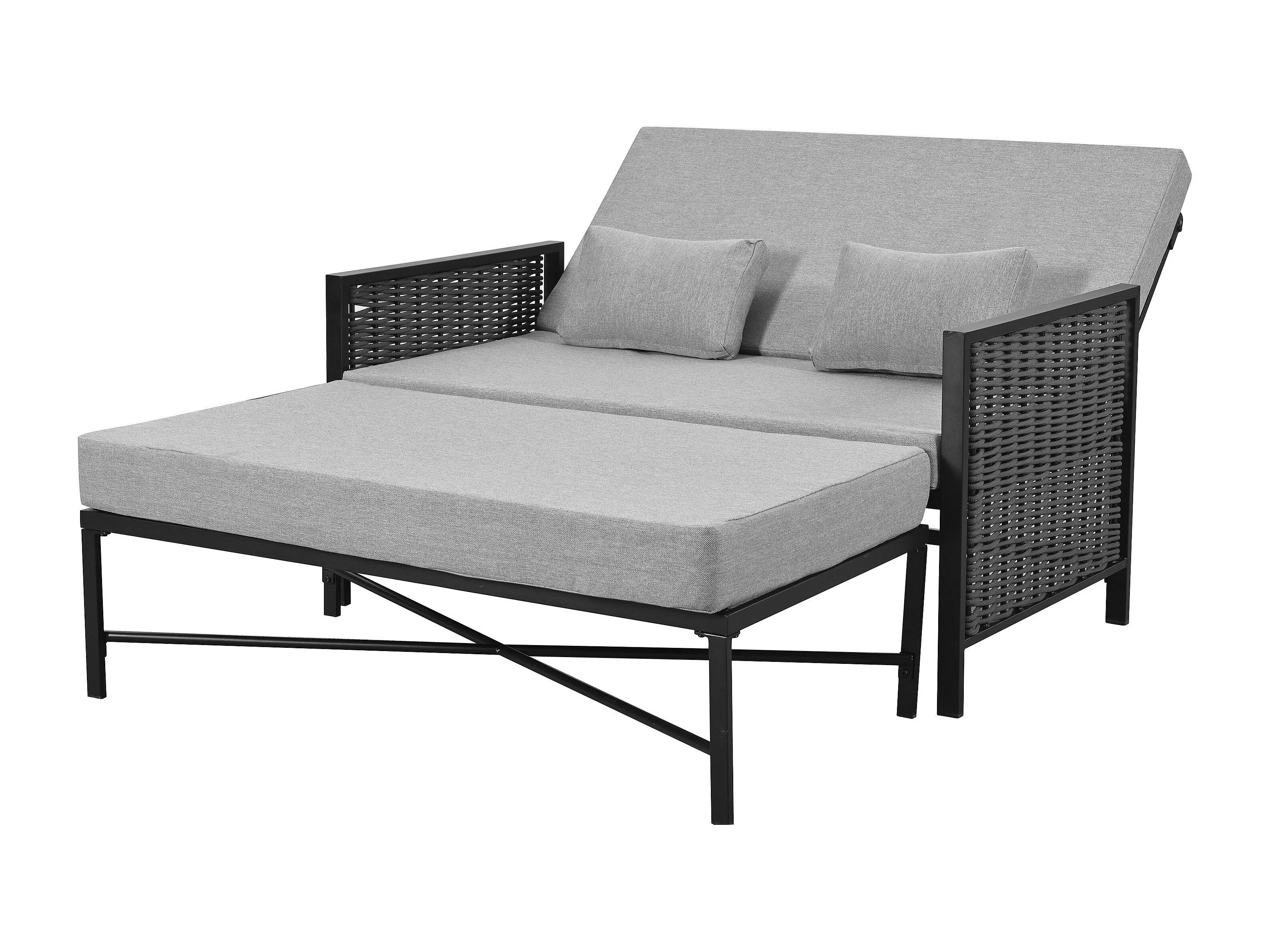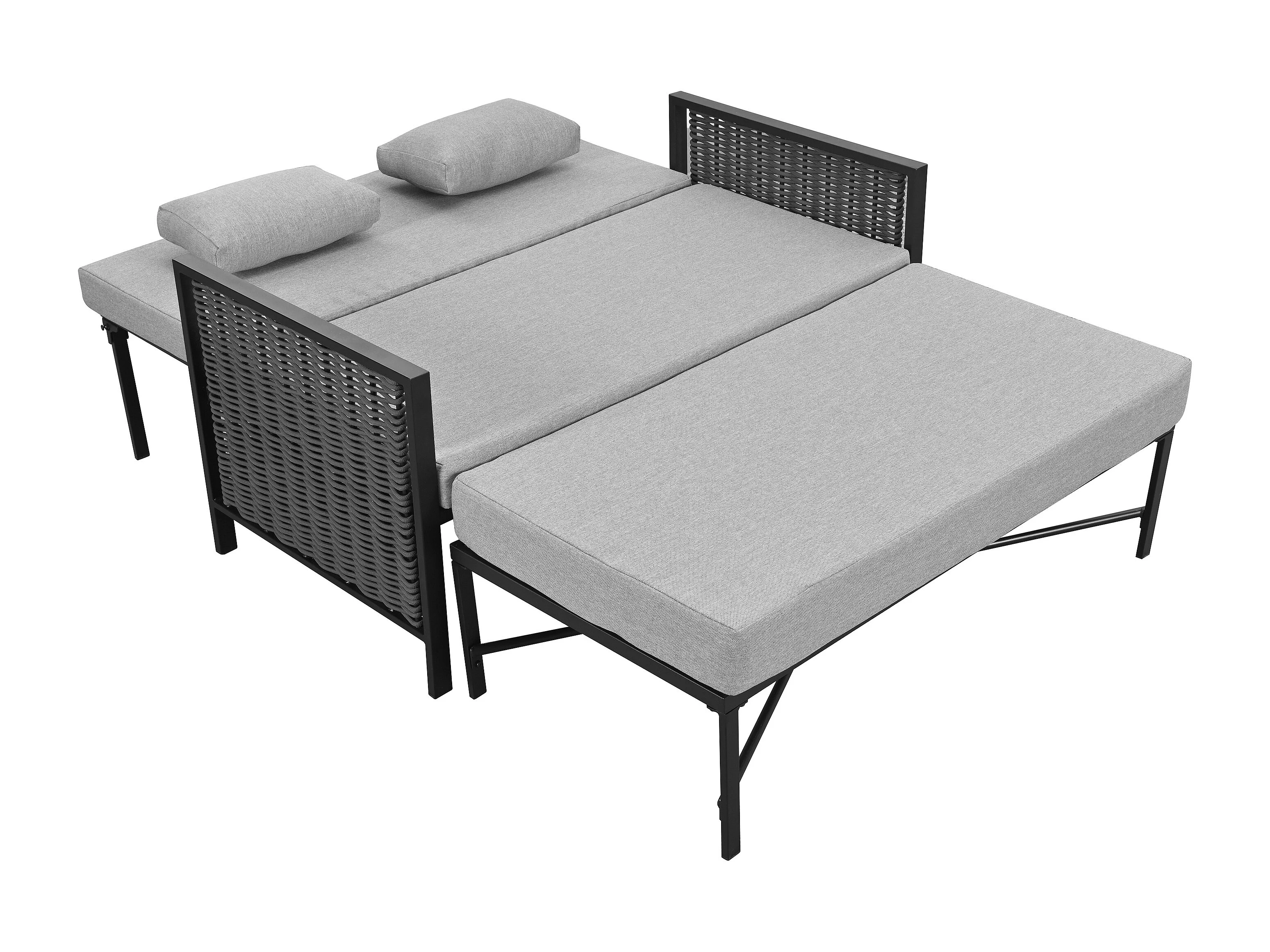Podwójna sofa z funkcją spania na taras zewnętrzny 150x140x30cm - Wielofunkcyjna sofa z wodoodpornym materiałem - Z półką - Metal, Poliester - Szary