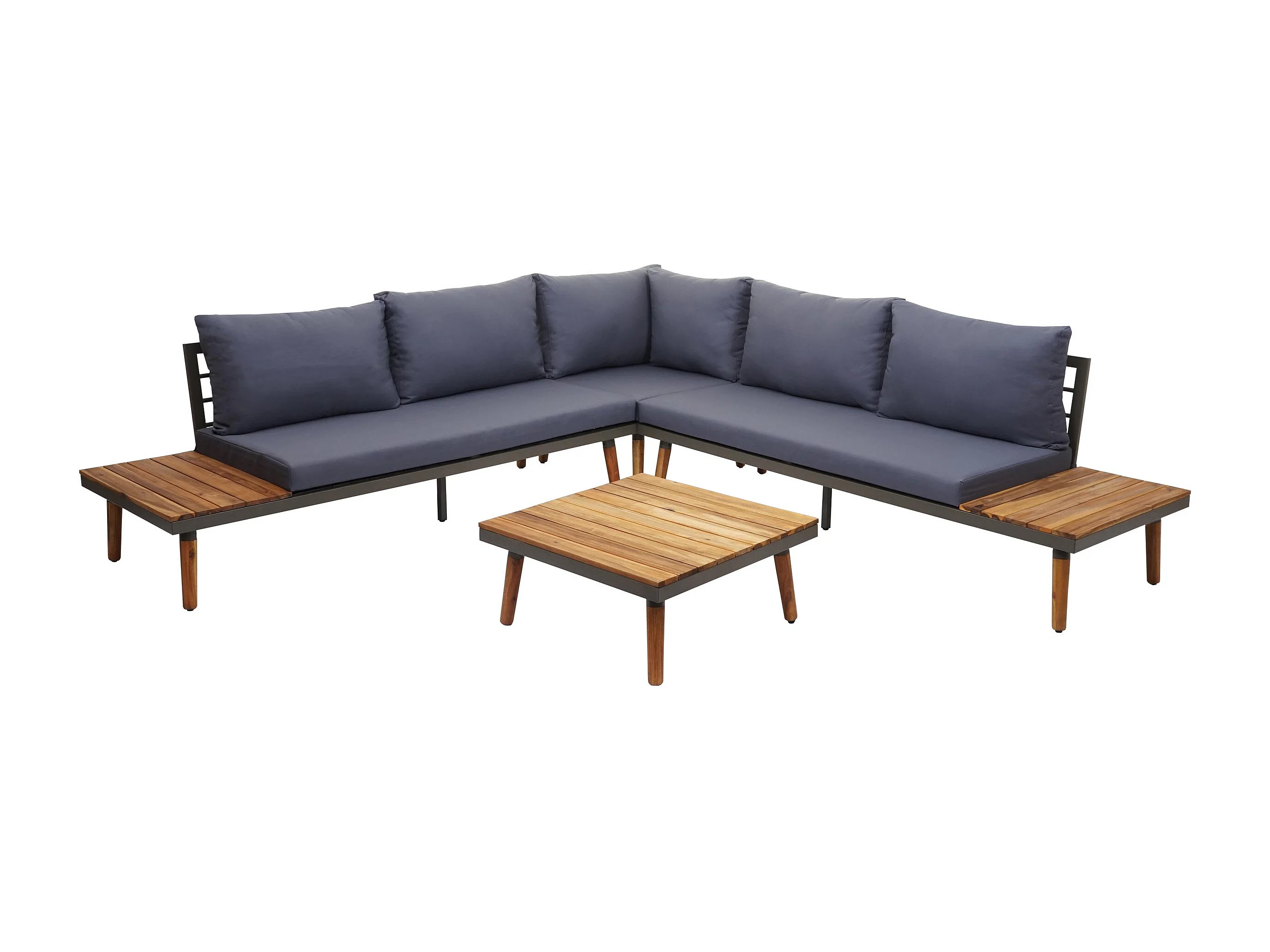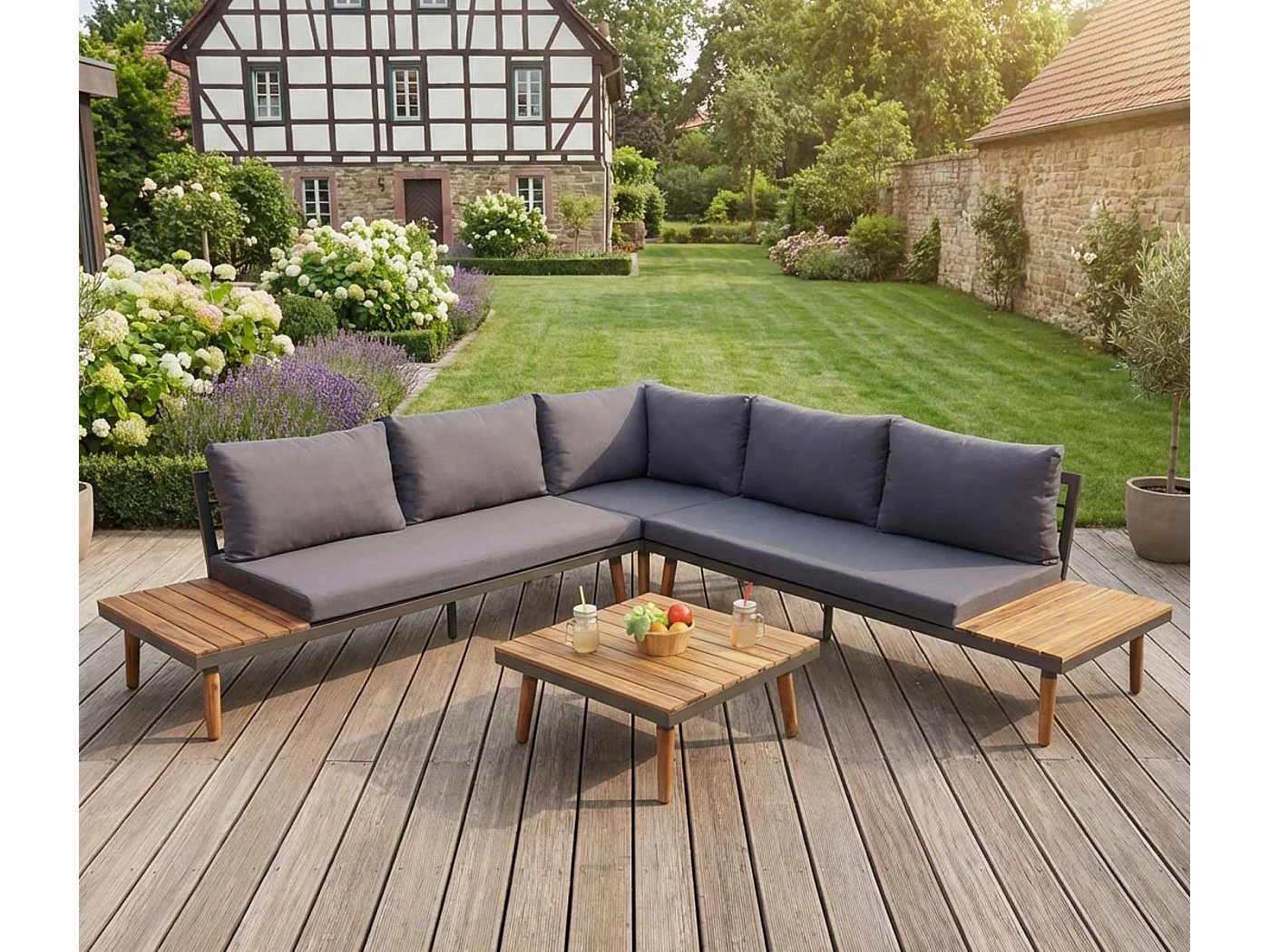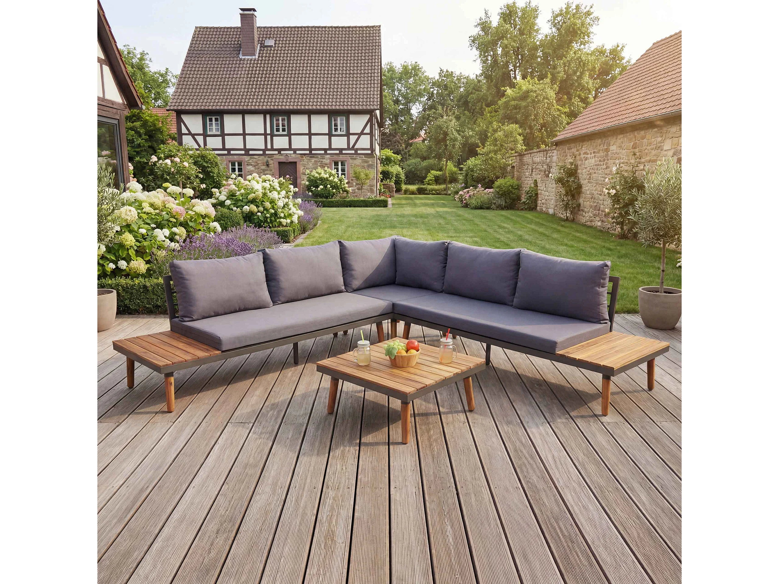 Narożnik ogrodowy ze stolikiem dla 5 osób FRAZZANO Modułowy Certyfikowane drewno akacjowe Szary