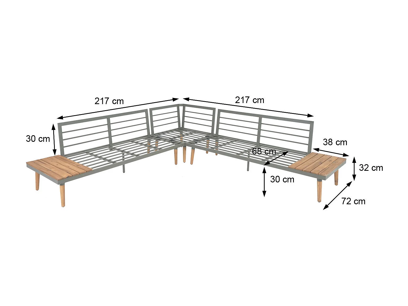 Zestaw mebli ogrodowych modułowych z ocynkowanego żelaza: 1 sofa 2-osobowa + 1 rozkładana sofa 2-osobowa + 1 stolik kawowy - Szary