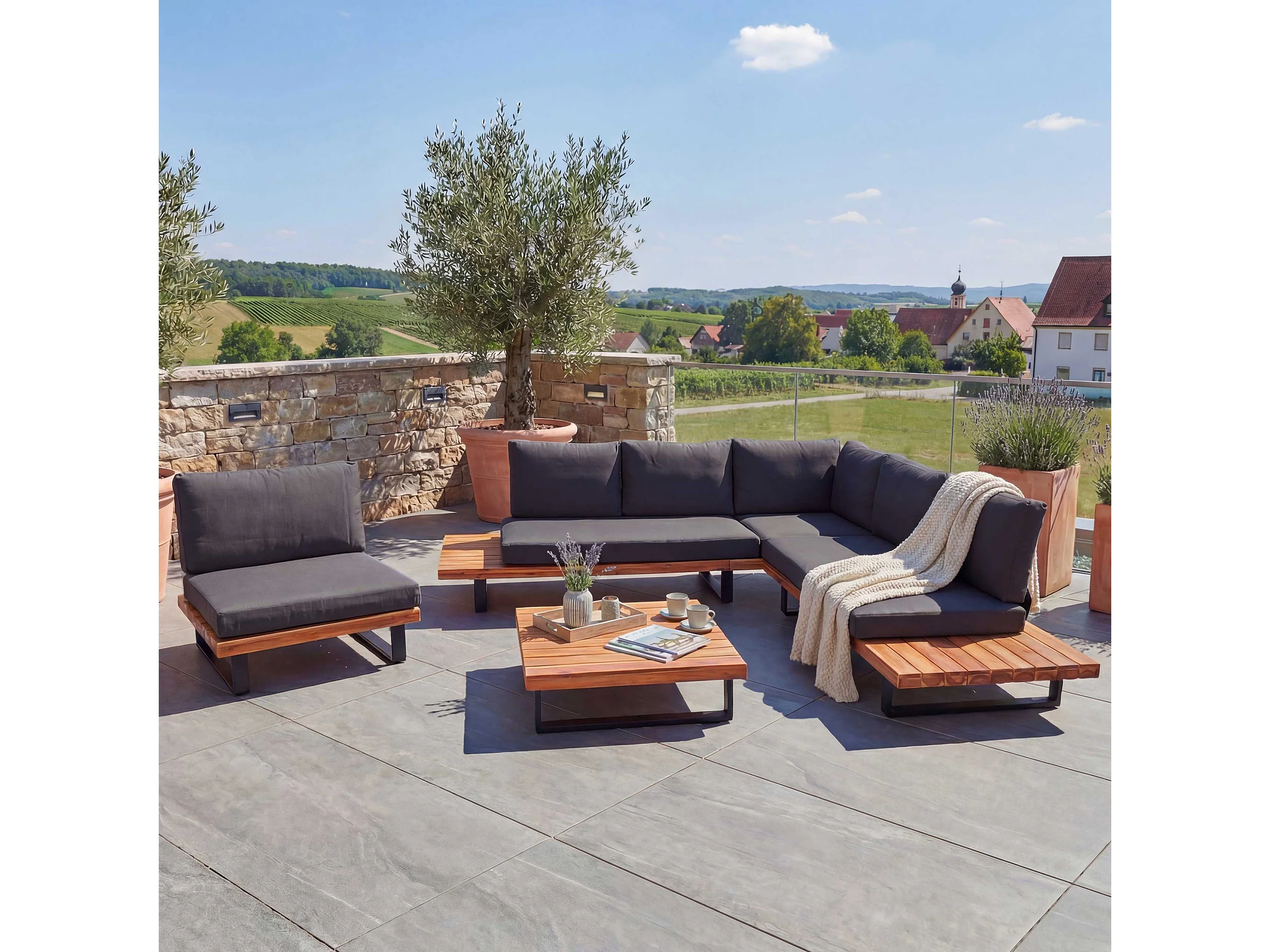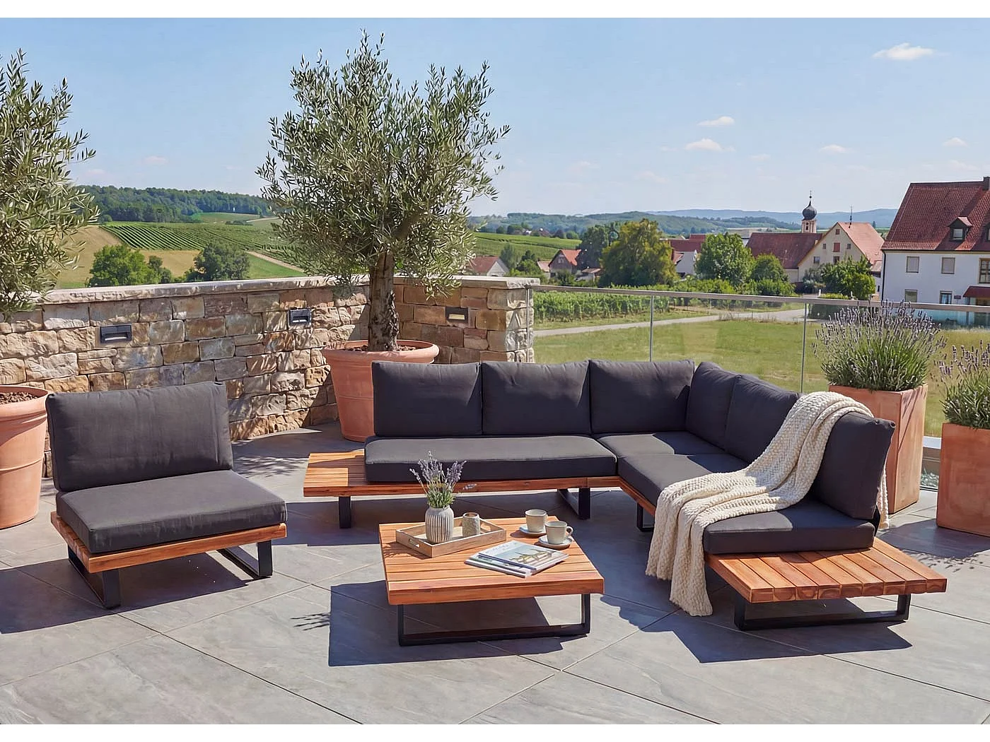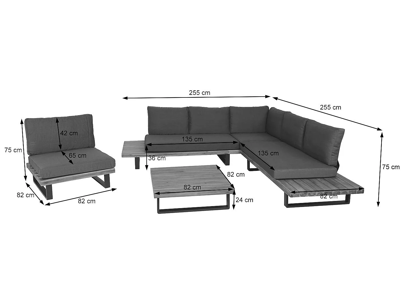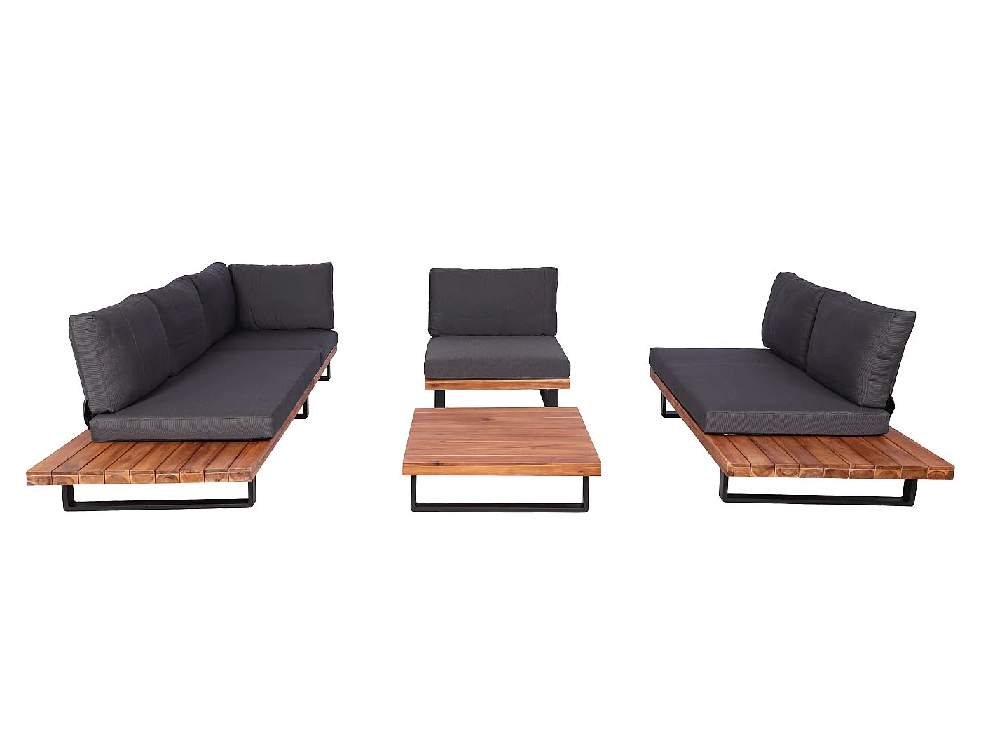 Zestaw ogrodowy MCW-H54 (zestaw 4-częściowy), brązowy, tapicerka ciemnoszara