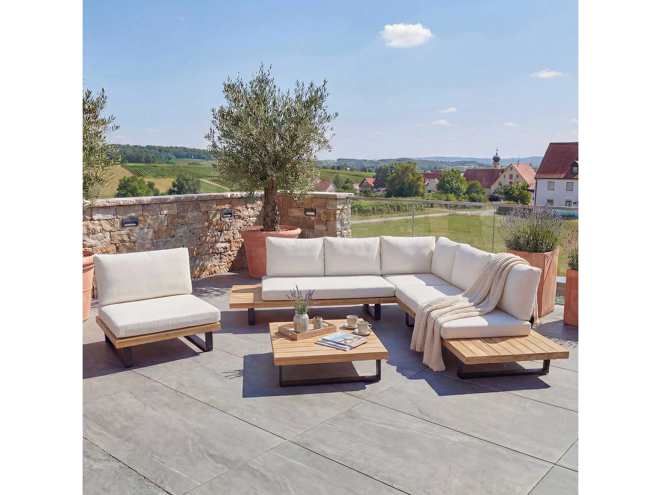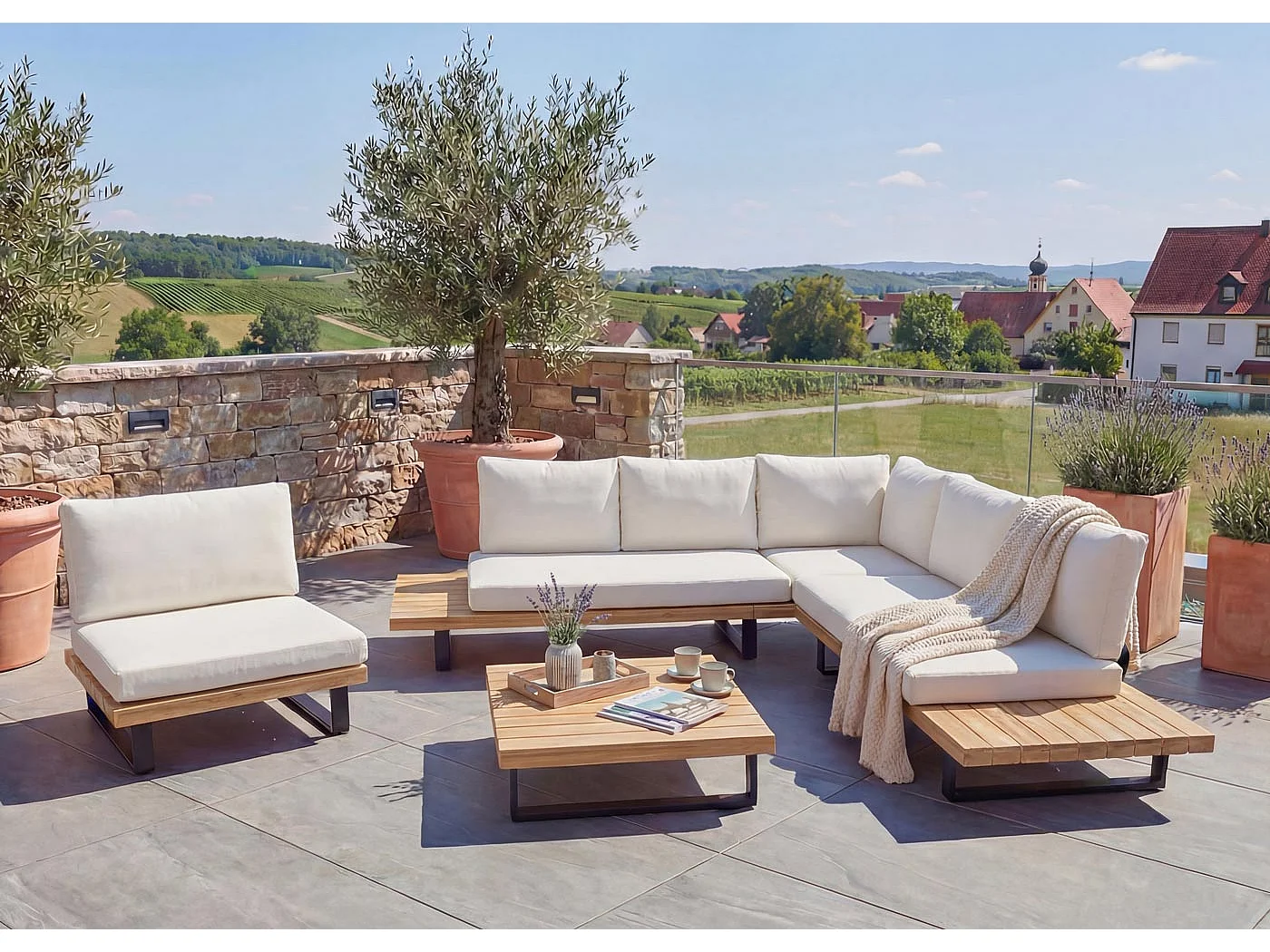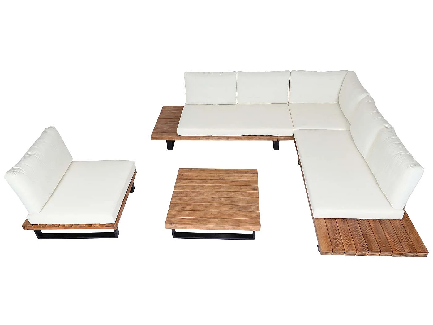 Zestaw ogrodowy MCW-H54 (zestaw 4-częściowy), jasnobrązowy, tapicerka w kolorze kremowo-białym