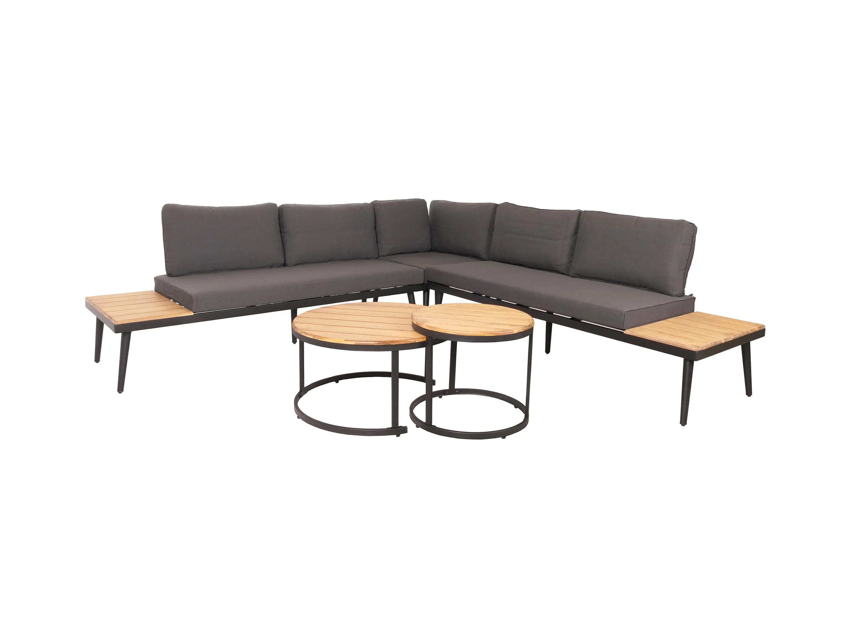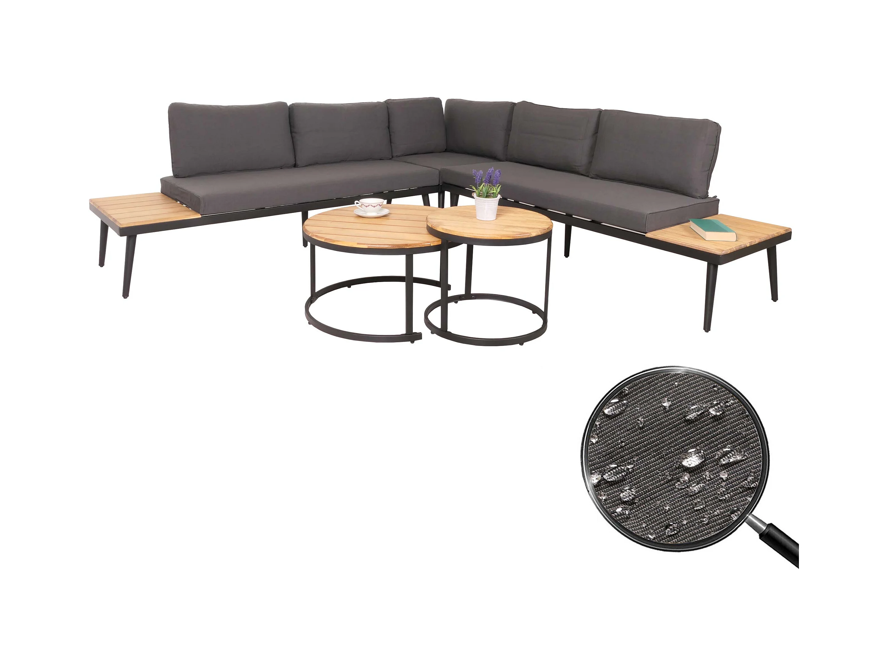 Zestaw mebli ogrodowych modułowych z ocynkowanego żelaza: 1 sofa 2-osobowa + 2 fotele + stoliki kawowe - Szary