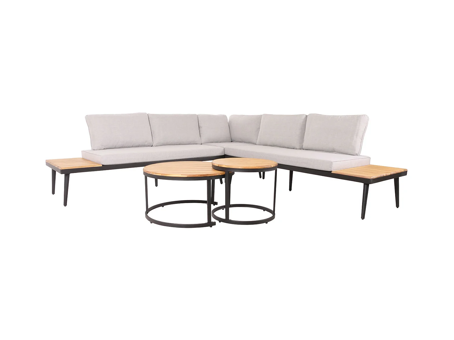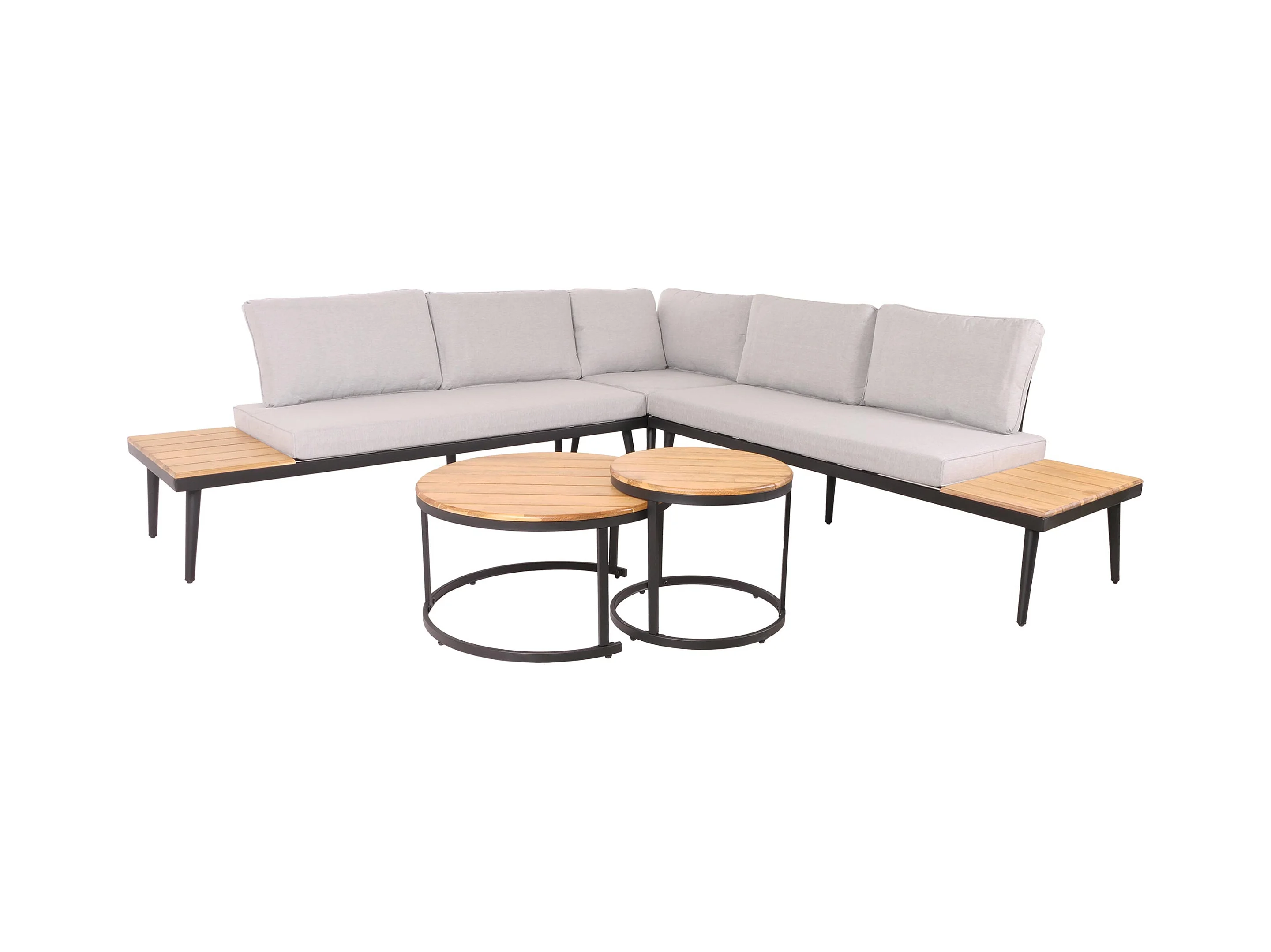 Zestaw mebli ogrodowych modułowych z ocynkowanego żelaza: 1 sofa 2-osobowa + 2 fotele + stoliki kawowe - Szary