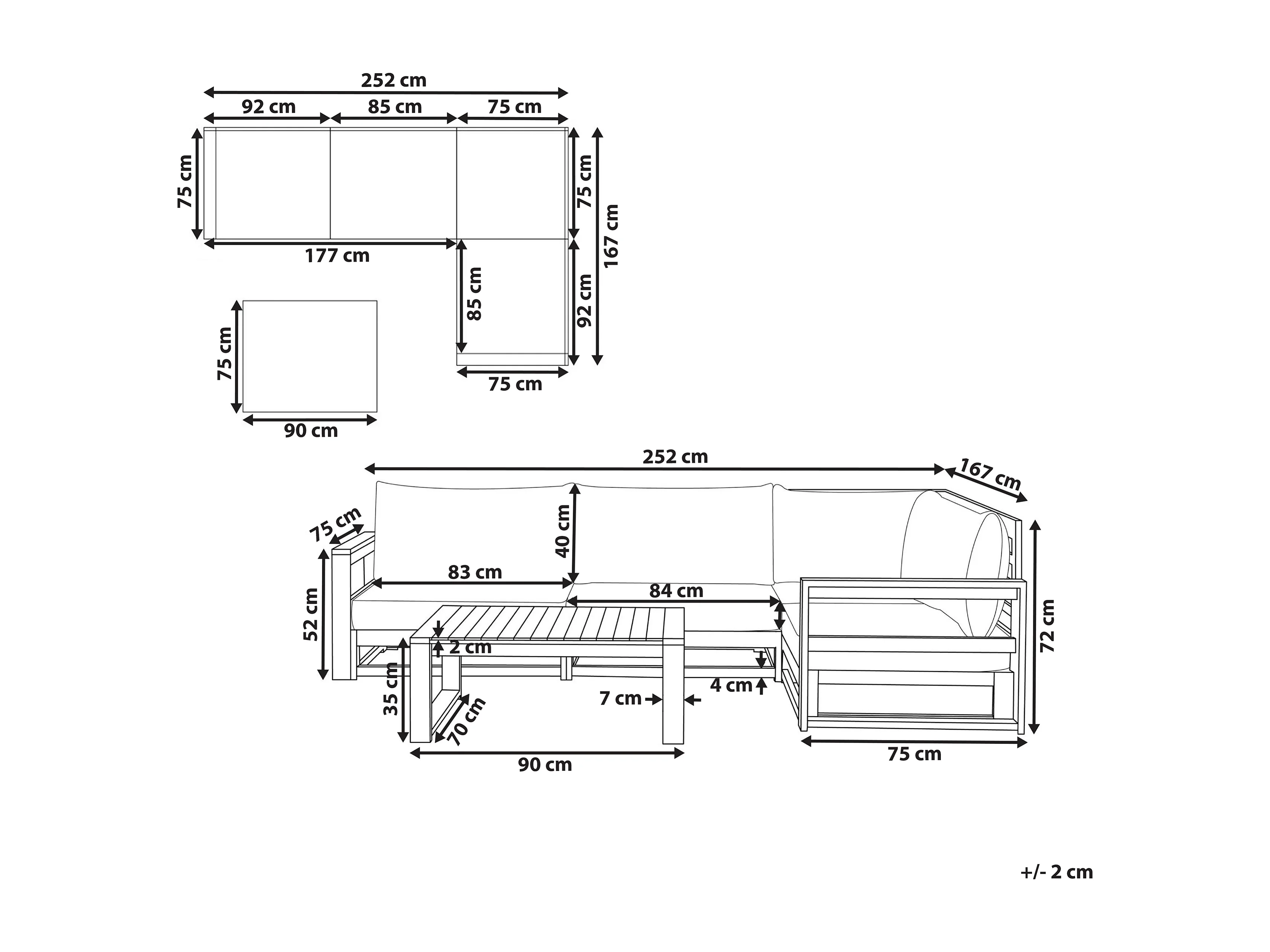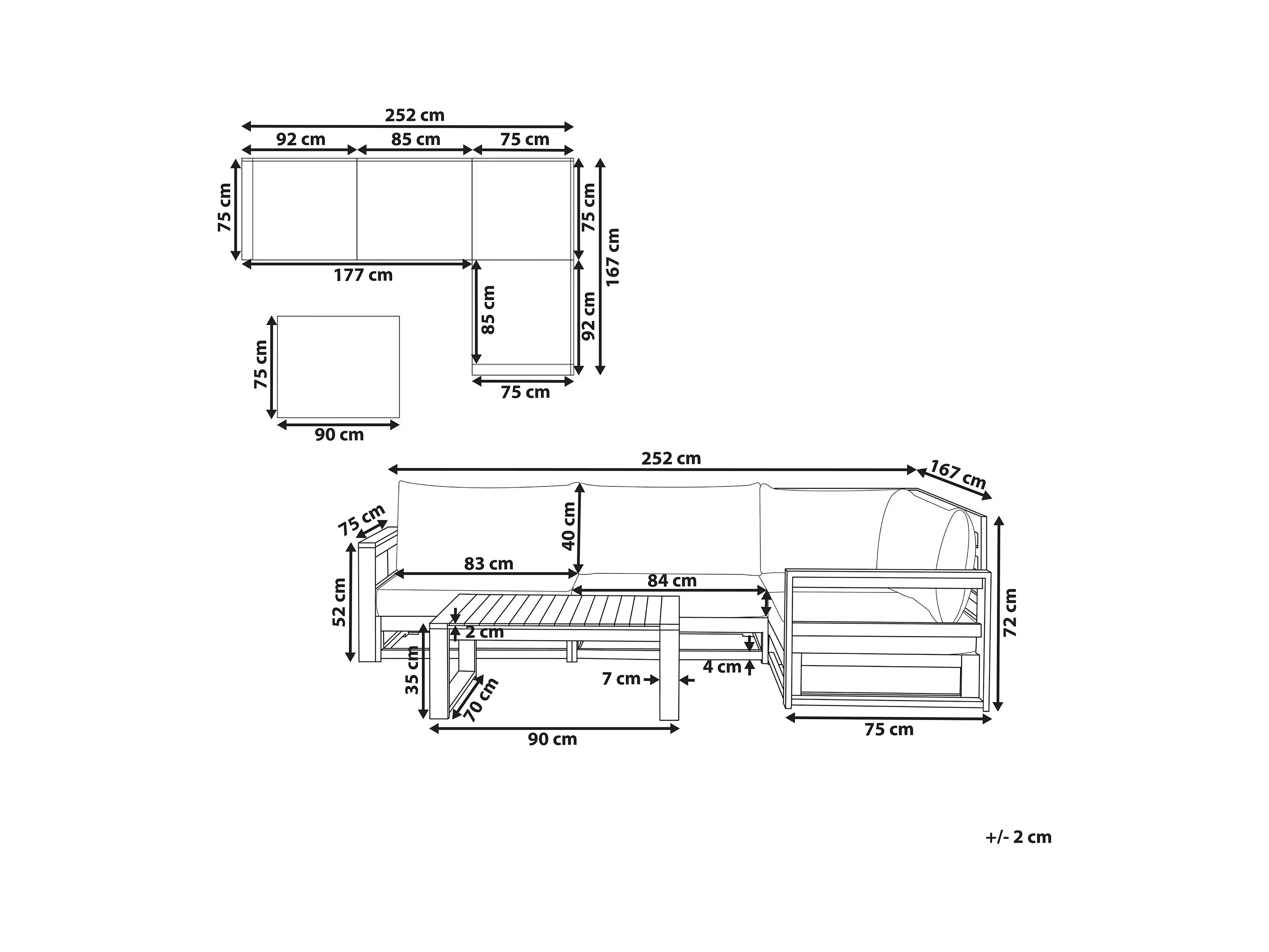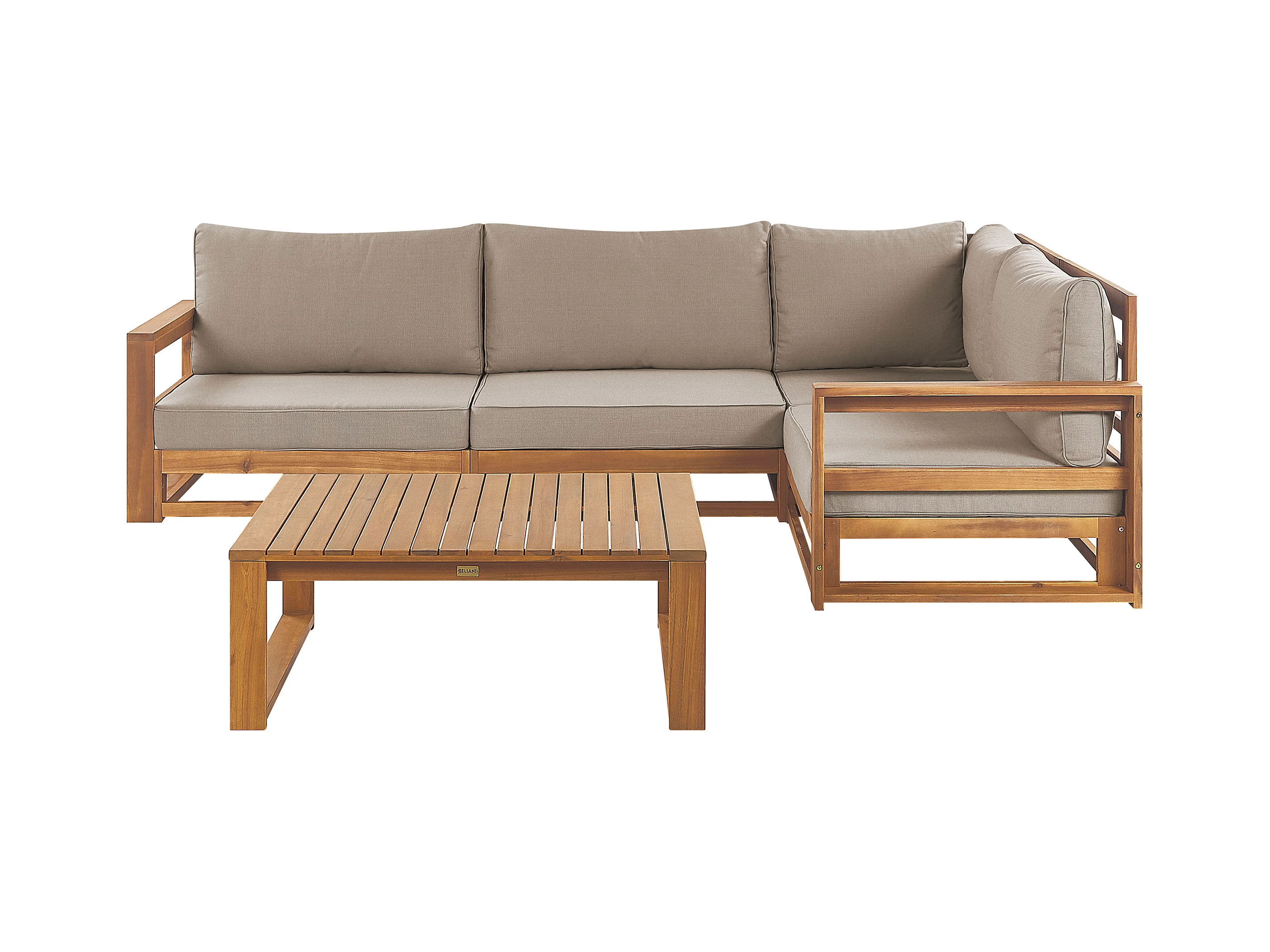Narożnik ogrodowy ze stolikiem dla 4 osób TIMOR Lewostronny Modułowy Certyfikowane drewno akacjowe Jasnobrązowy