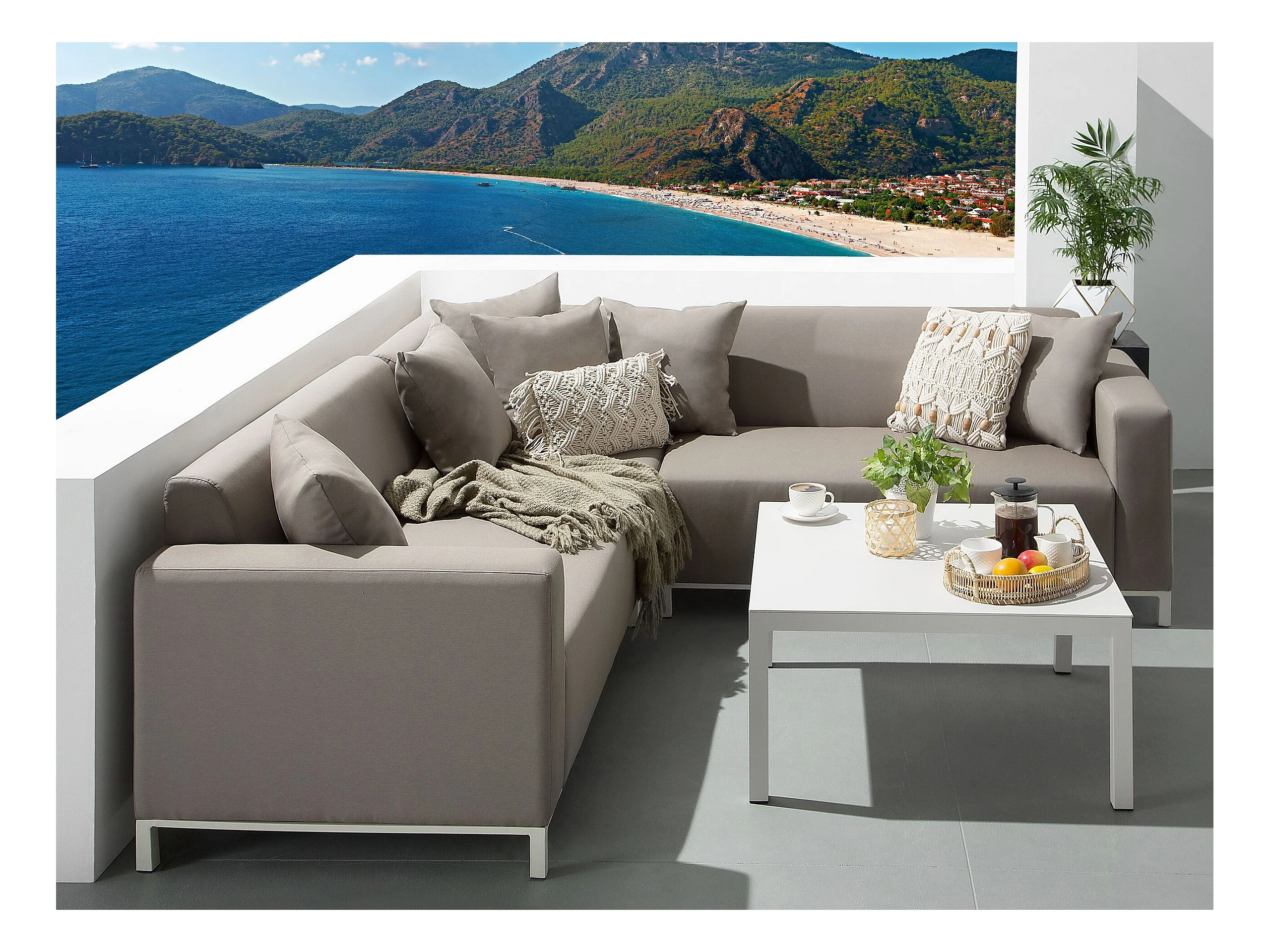Narożnik ogrodowy z otomaną dla 7 osób AREZZO Prawostronny Modułowy Beżowy