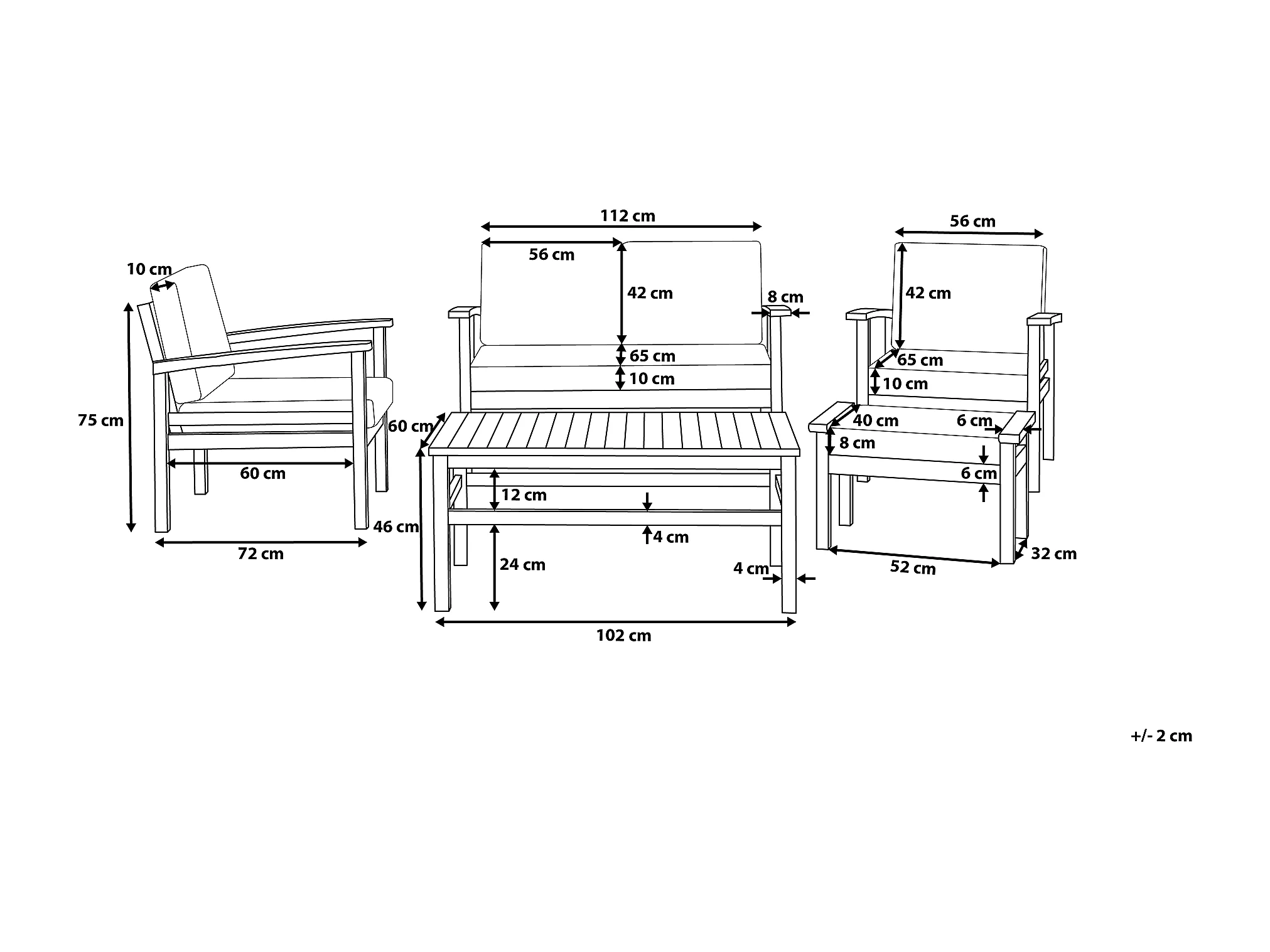 Zestaw ogrodowy ze stolikiem dla 4 osób CREMONA Prawostronny Drewno akacjowe Złamana biel