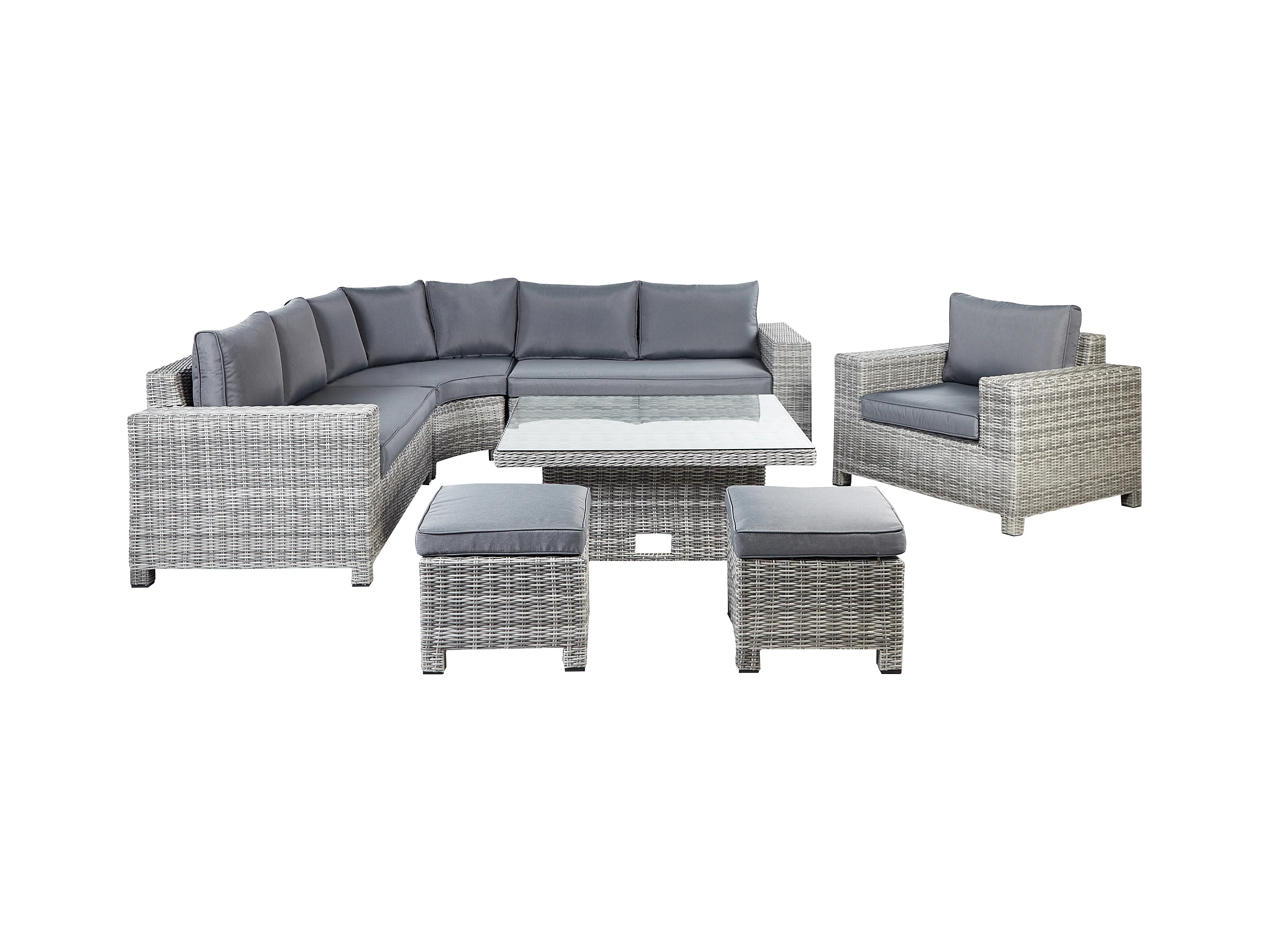 Zestaw ogrodowy ze stolikiem i otomaną dla 9 osób LACONA Prawostronny Technorattan Jasnoszary