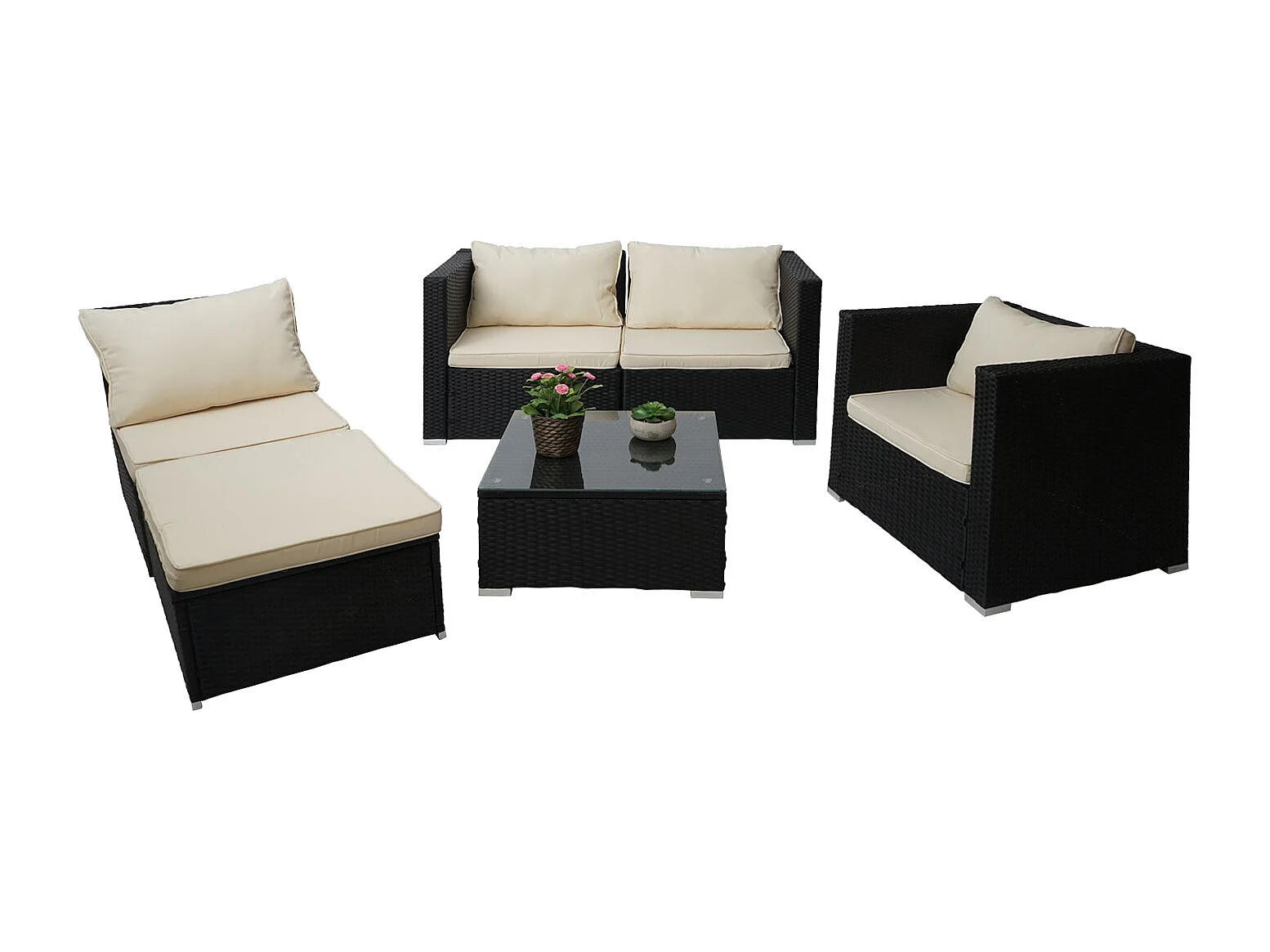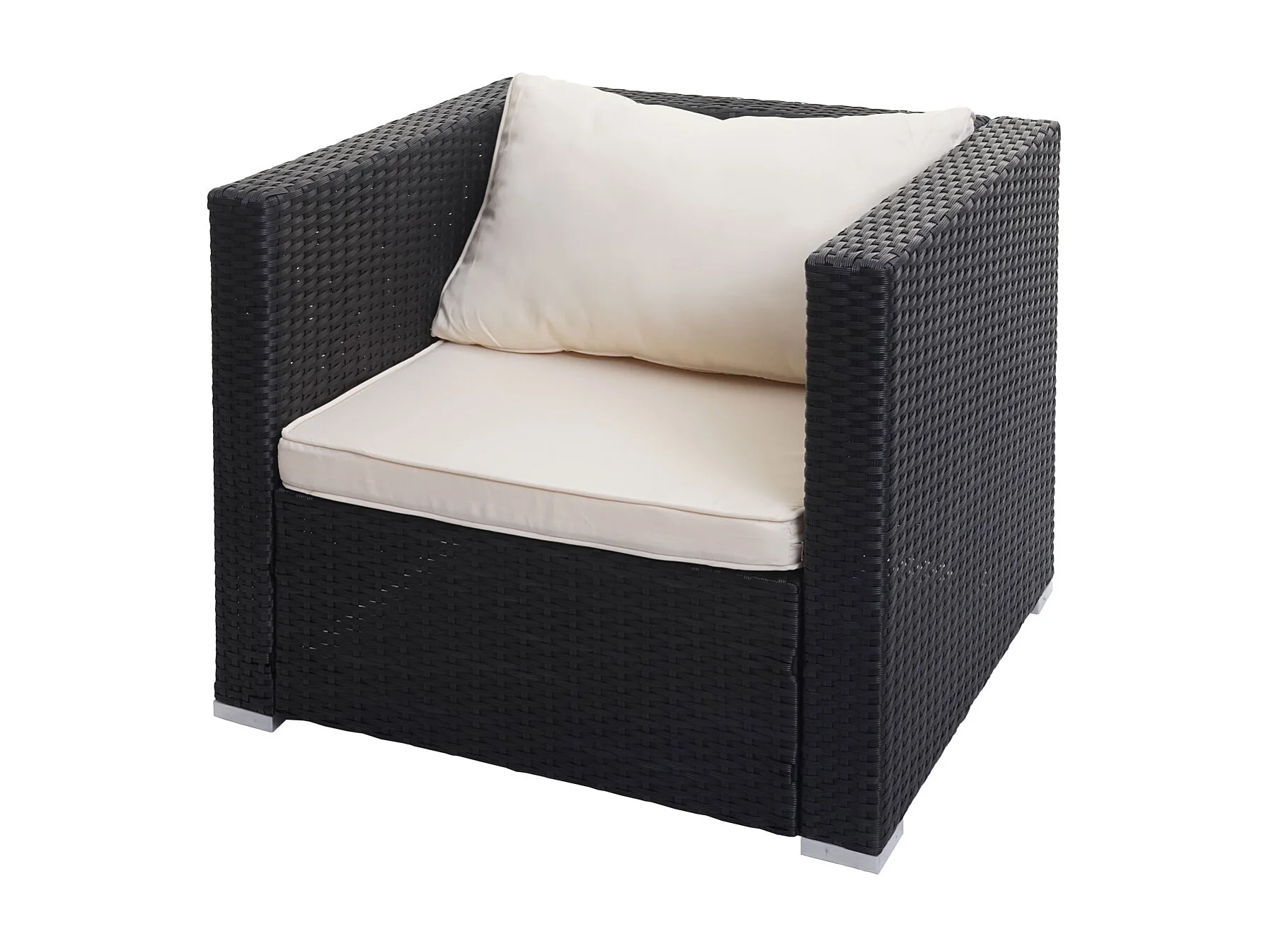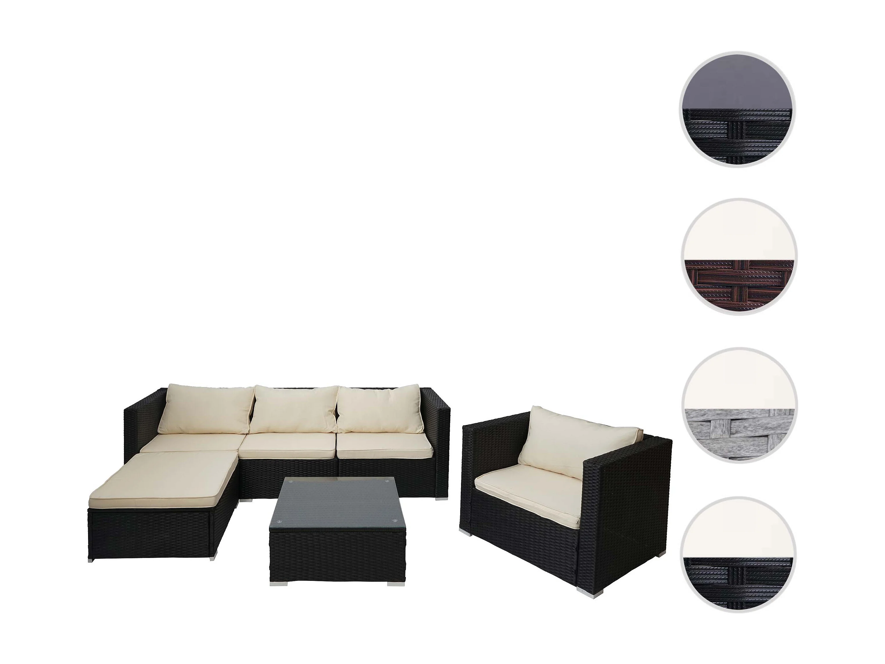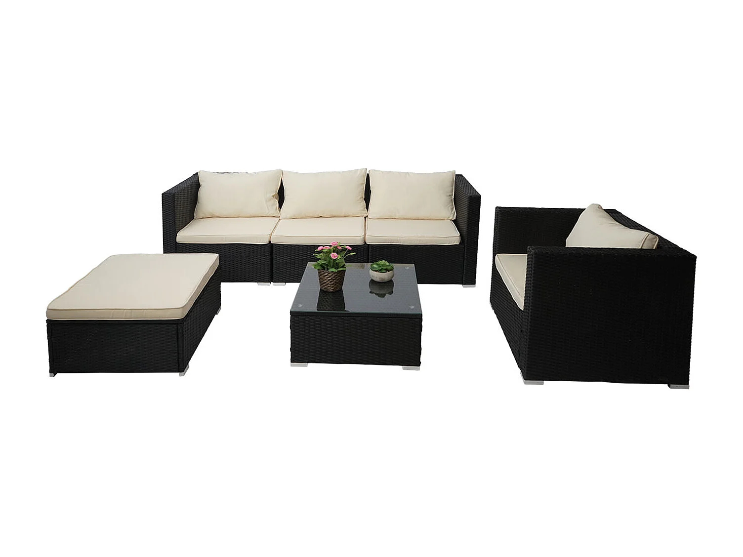 Zestaw z polirattanowym wykończeniem Busto, czarny, poduszki w kolorze kremowym