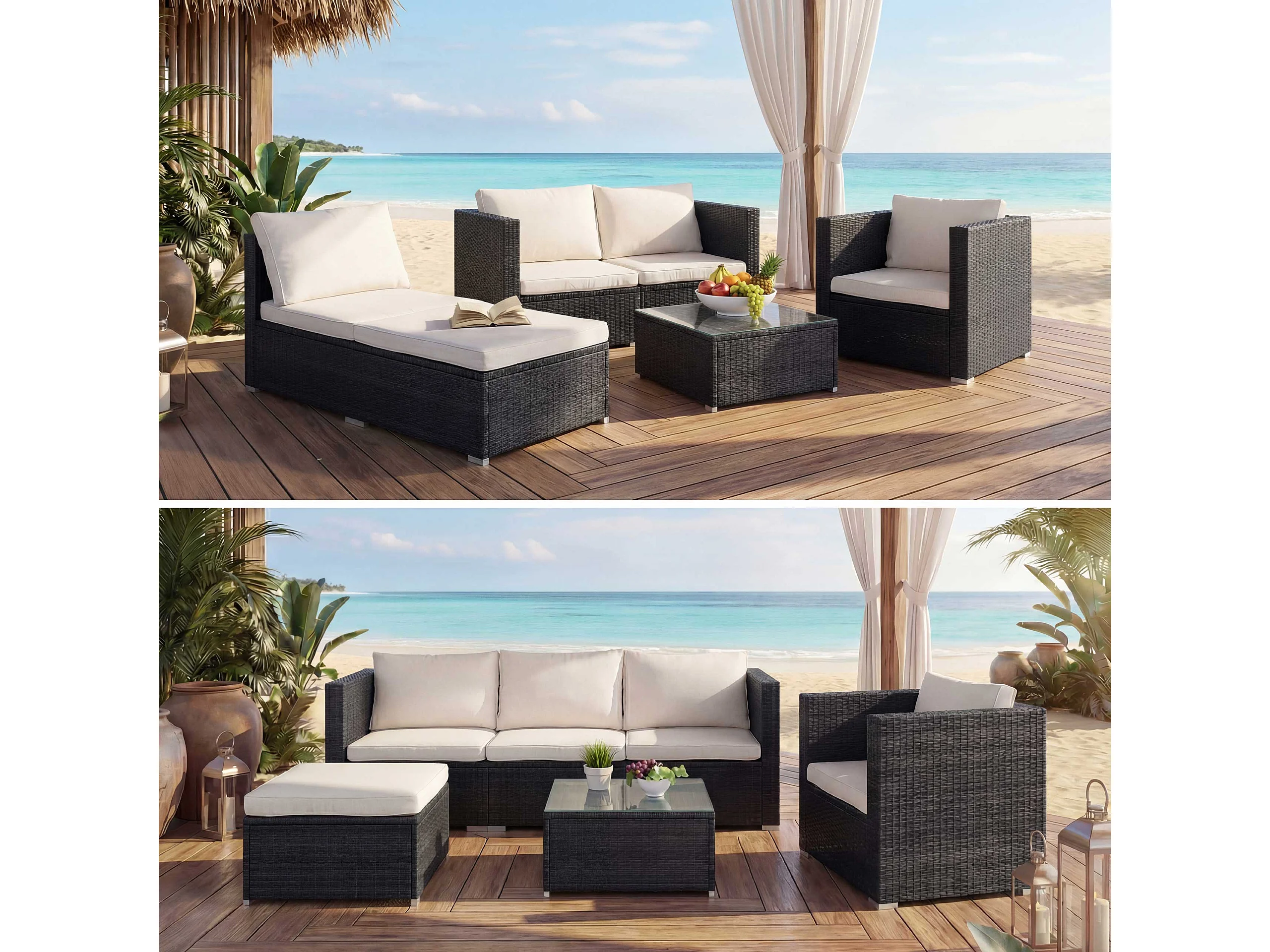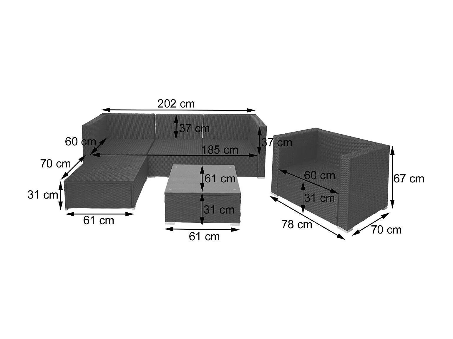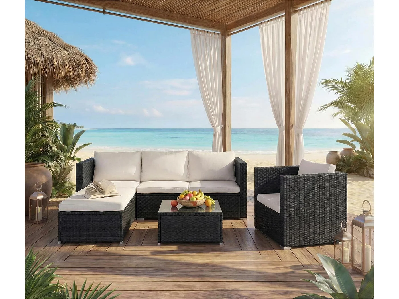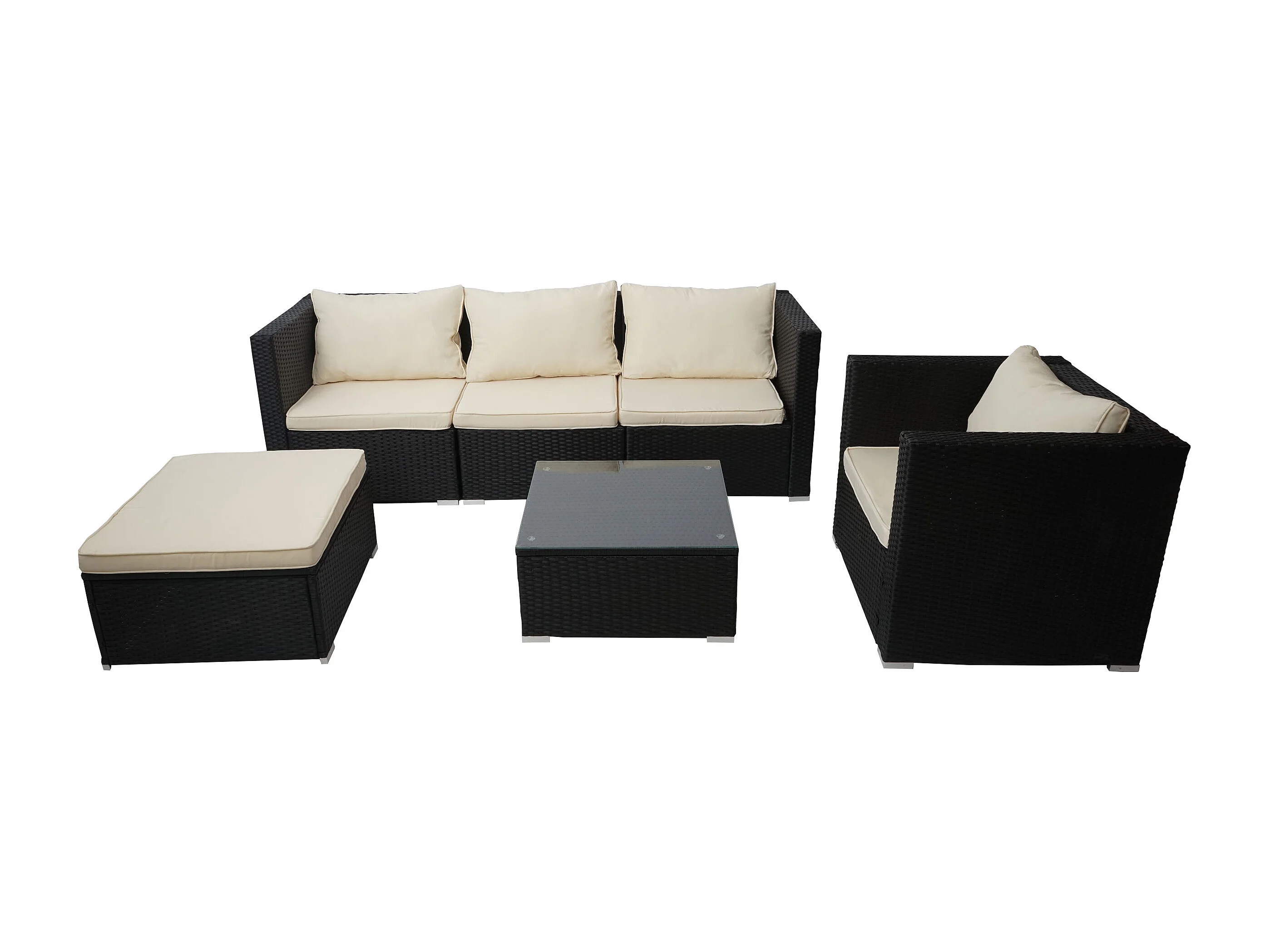 Zestaw z polirattanowym wykończeniem Busto, czarny, poduszki w kolorze kremowym