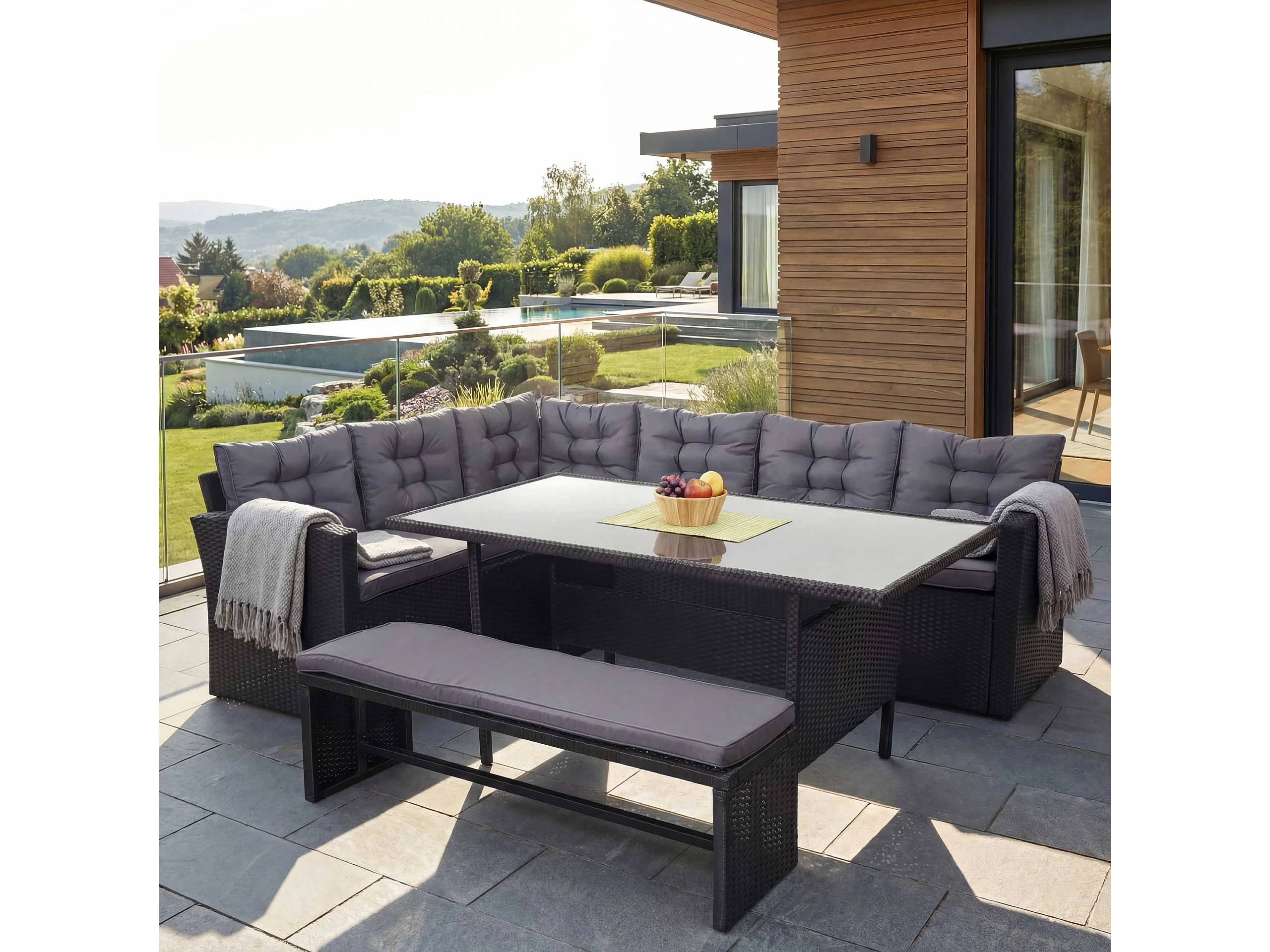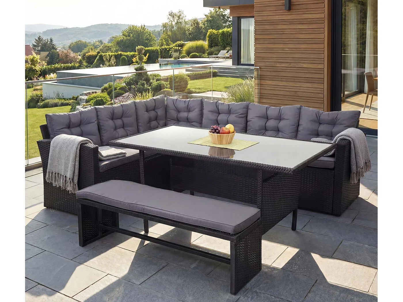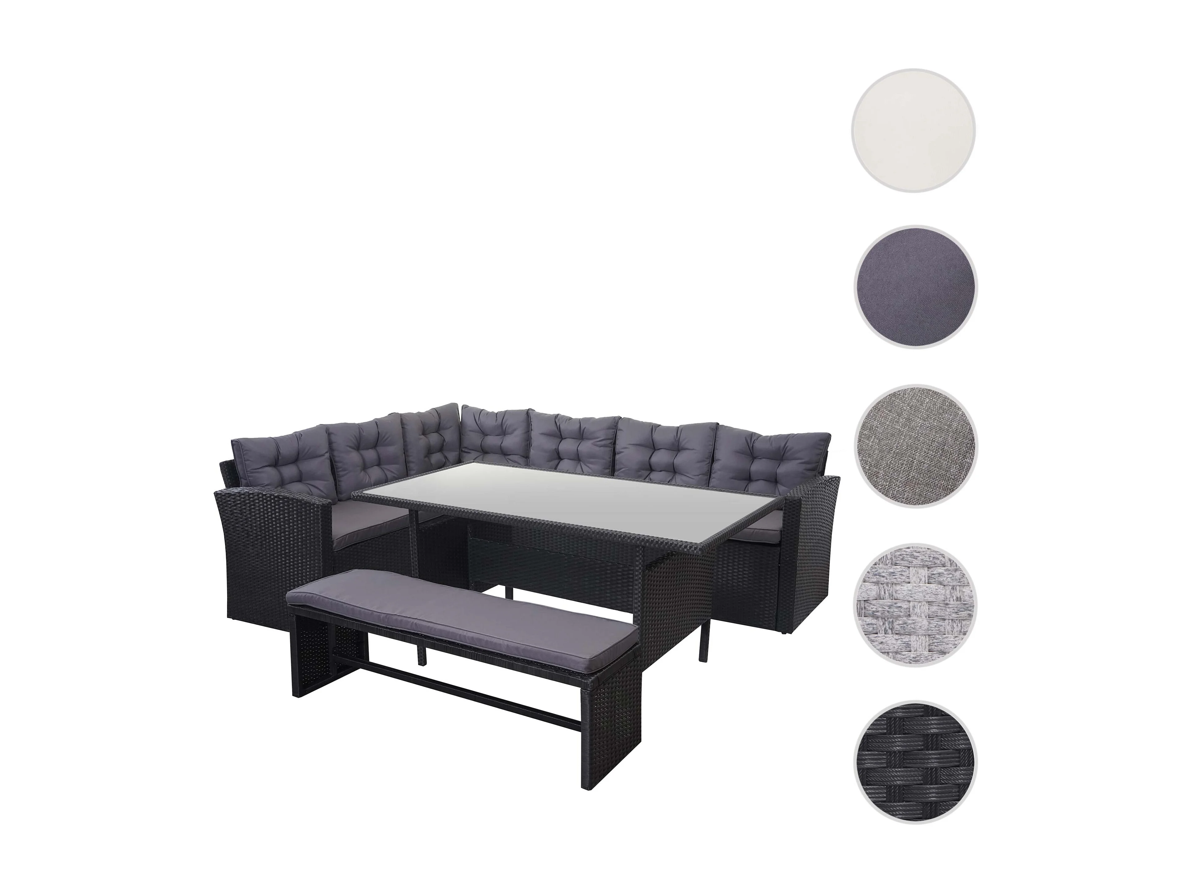 Zestaw z rattanu syntetycznego MCW-A29 z ławką, poduszki ciemnoszare, z ławką