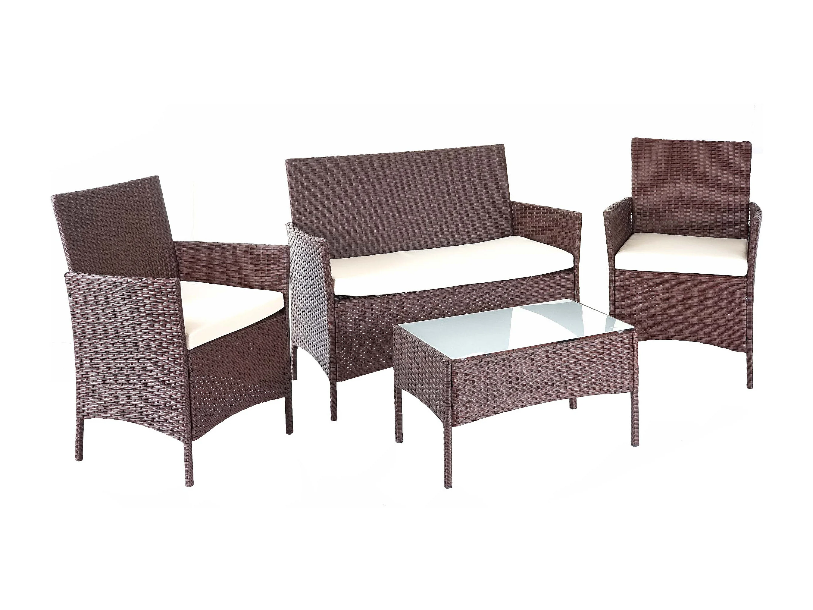 Zestaw polirattanowy MCW-D82 (4-częściowy), brązowo-motylkowy z kremowymi poduszkami