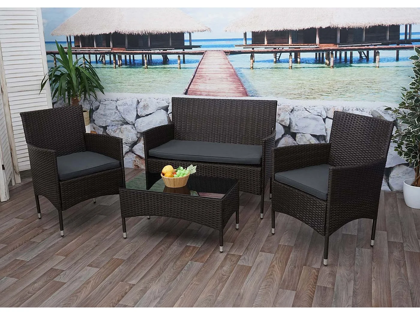 Zestaw polirattanowy MCW-F55 (4-częściowy), brązowy, ciemnoszare poduszki