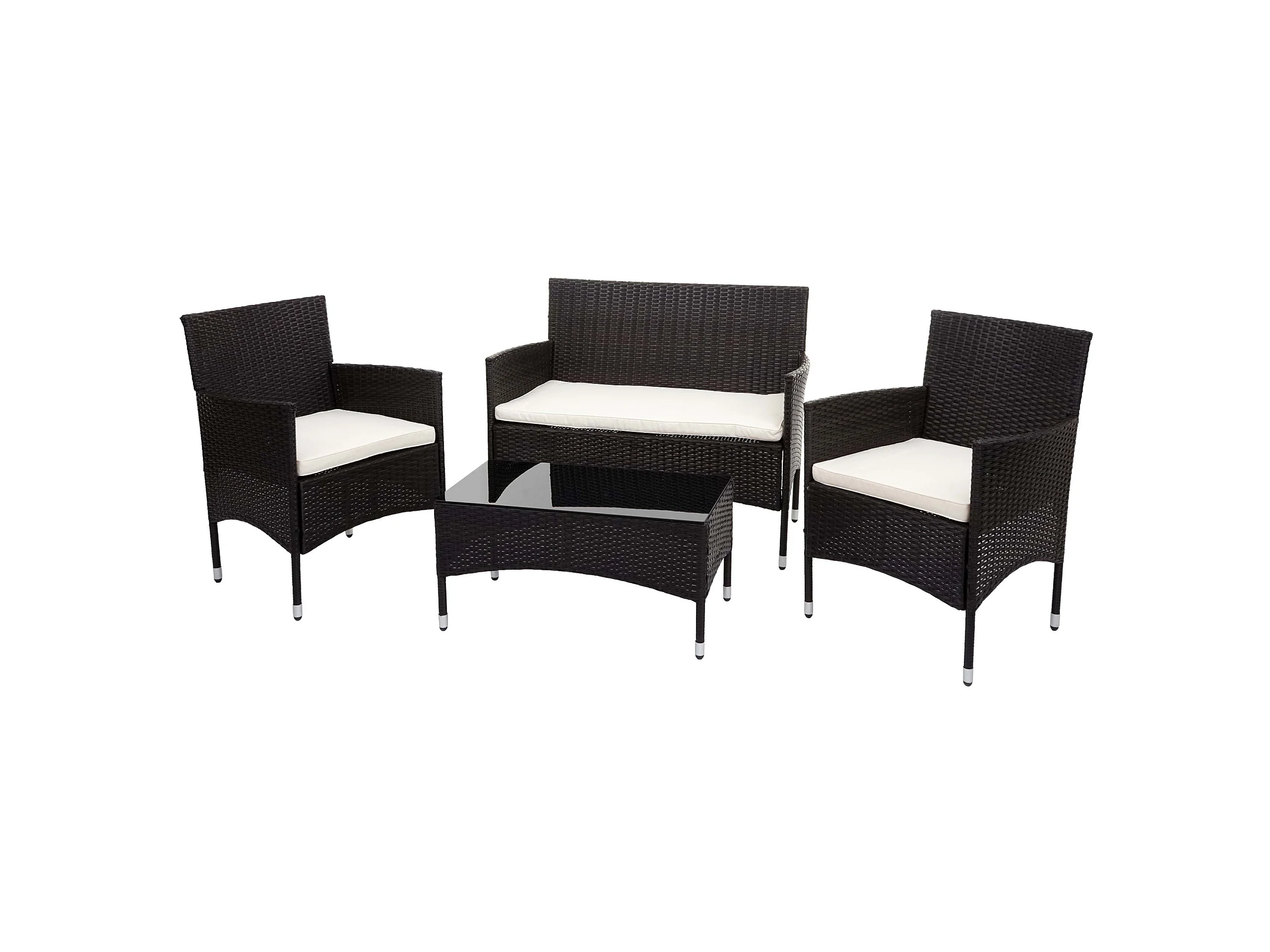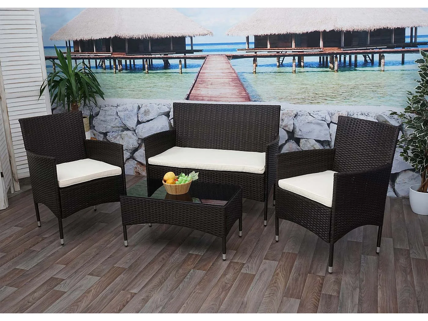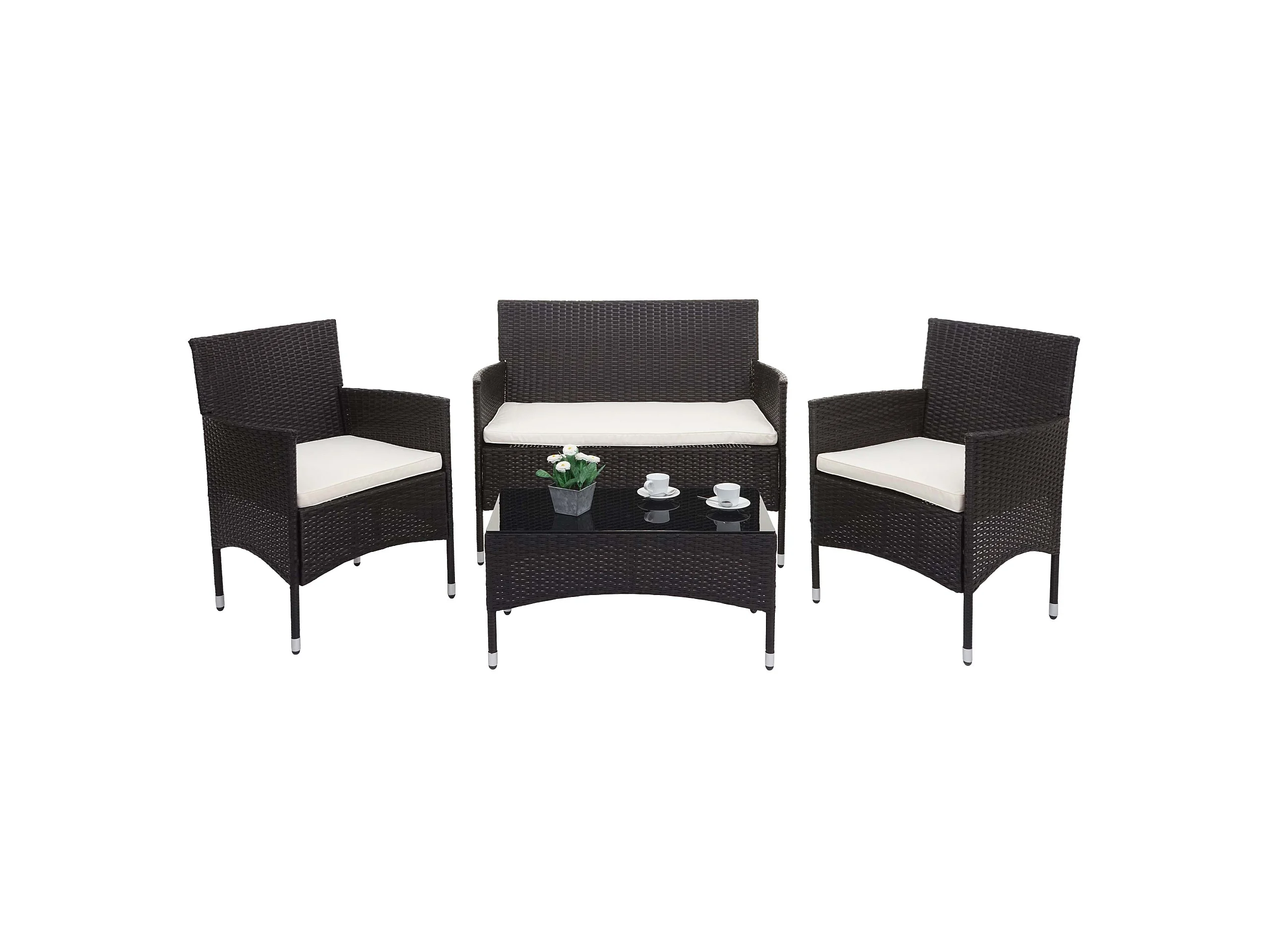 Zestaw polirattanowy MCW-F55 (4-częściowy), brązowy, kremowe poduszki