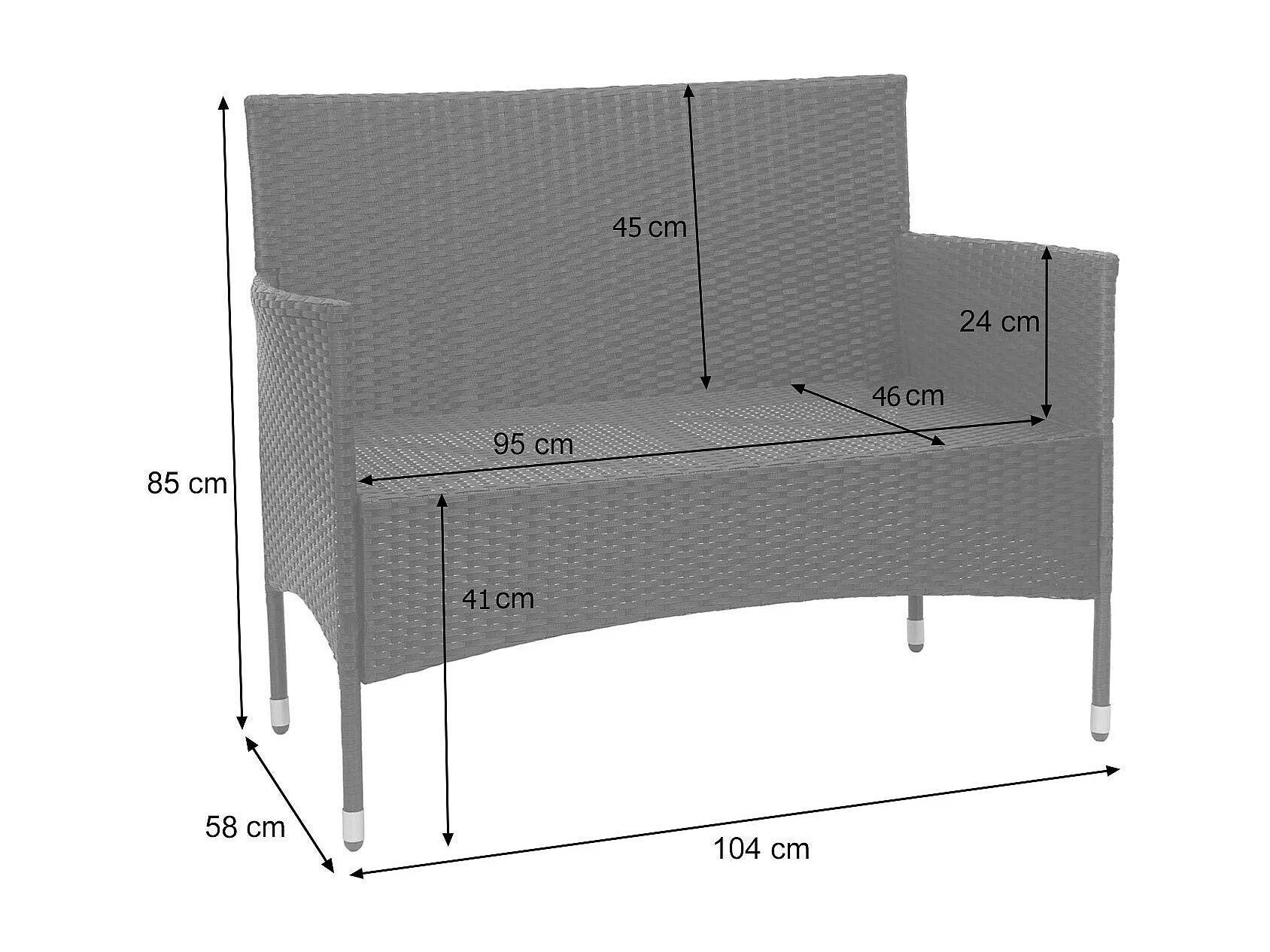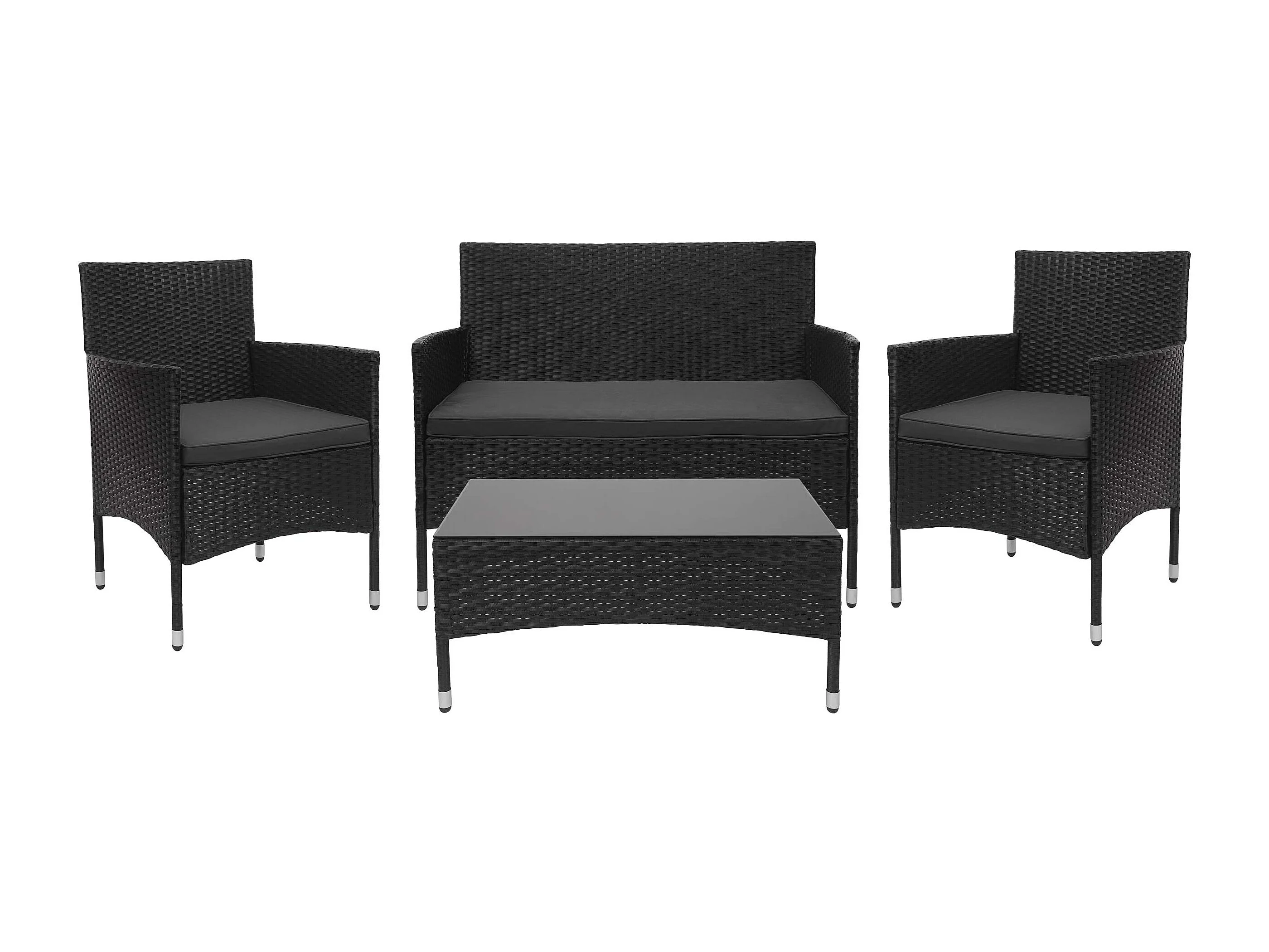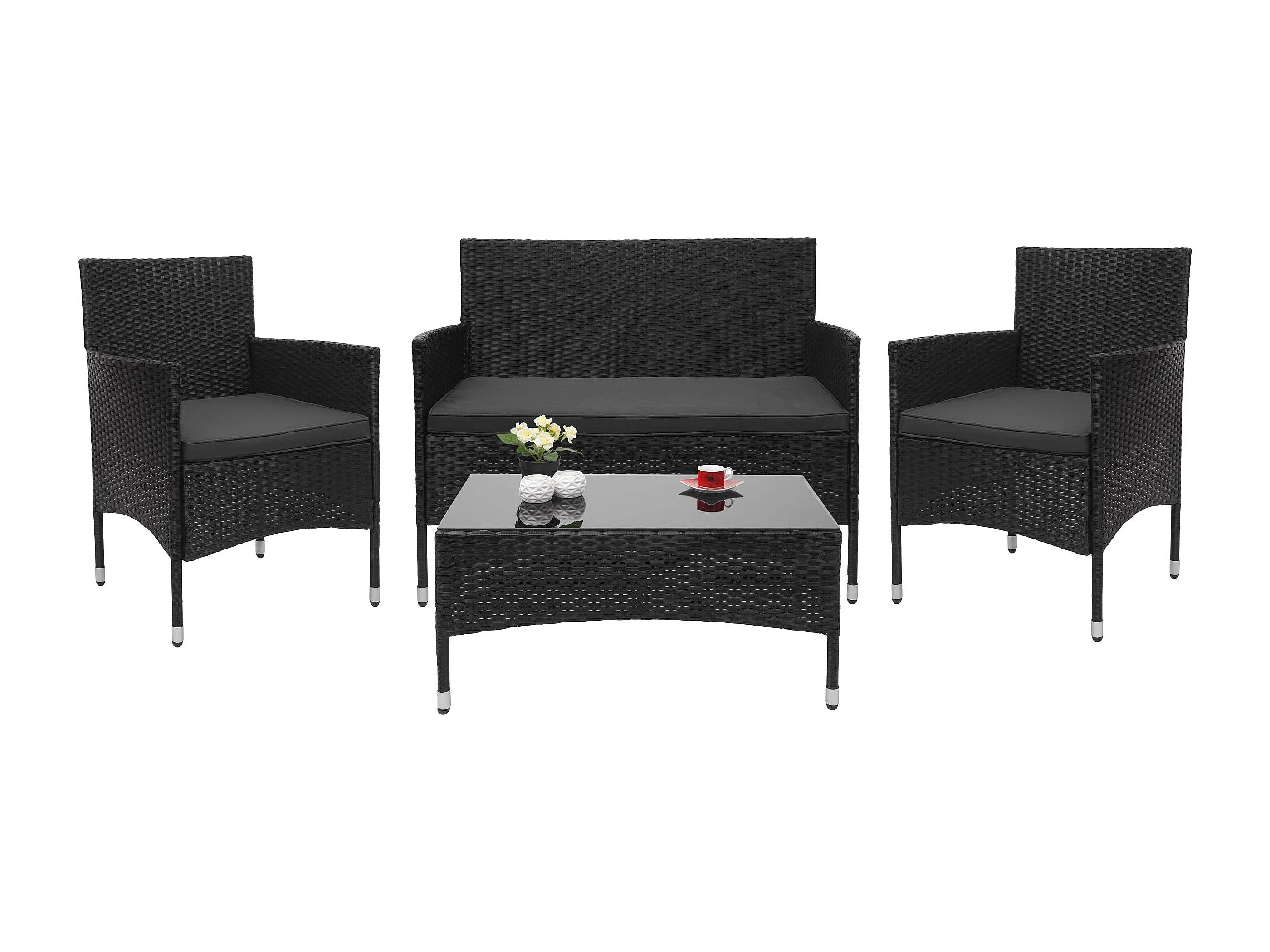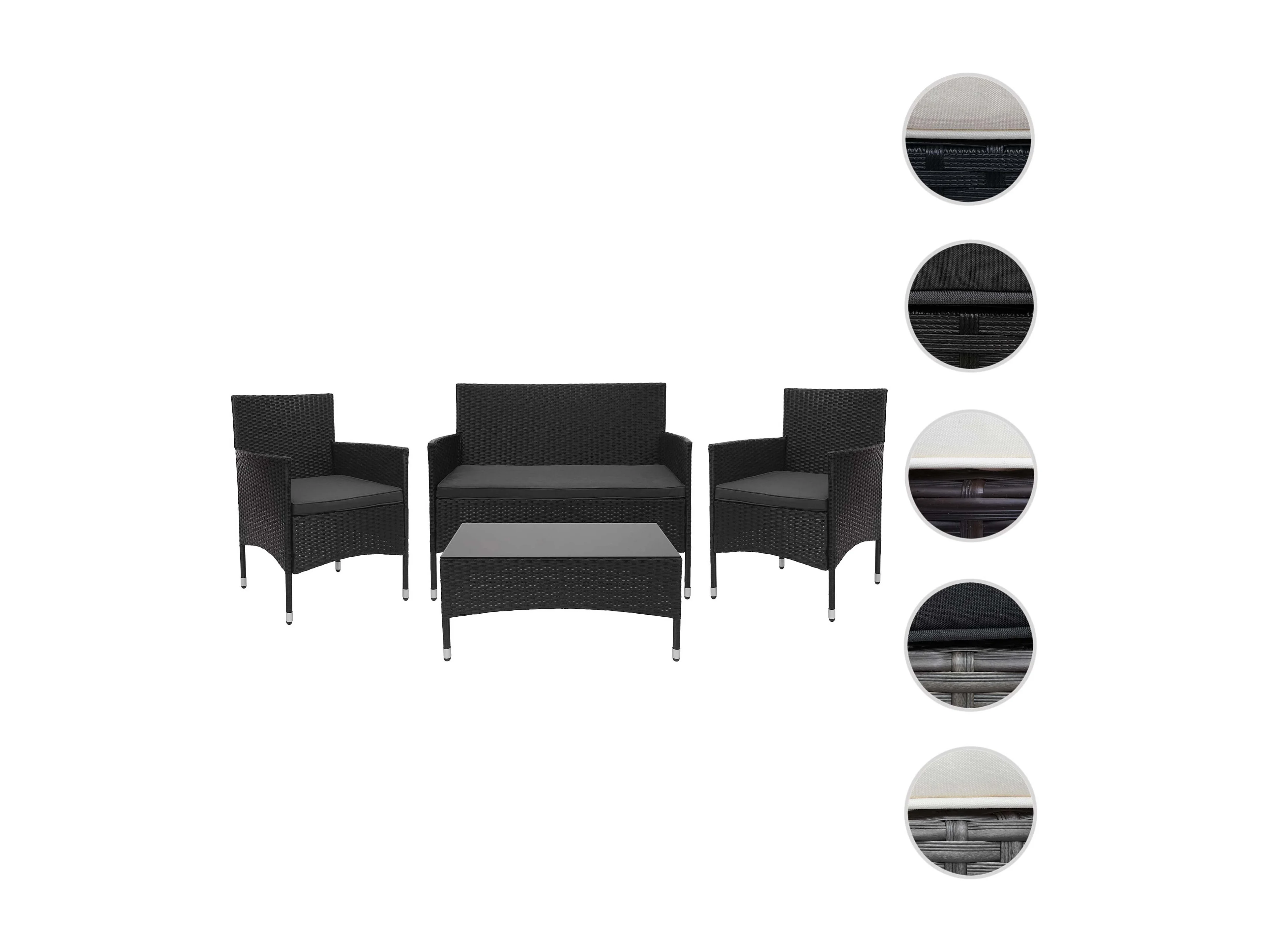Zestaw polirattanowy MCW-F55 (4-częściowy), czarny, ciemnoszare poduszki