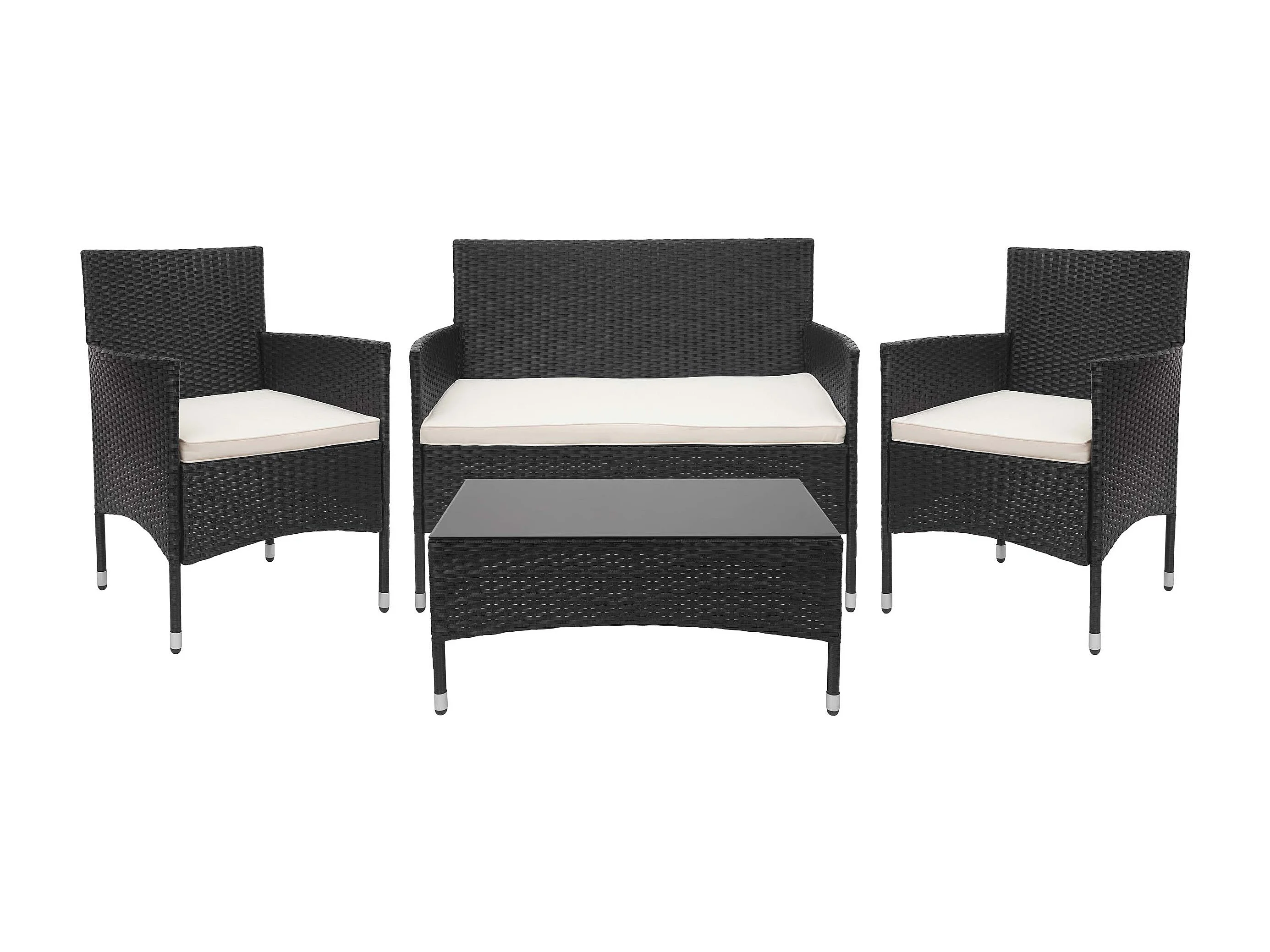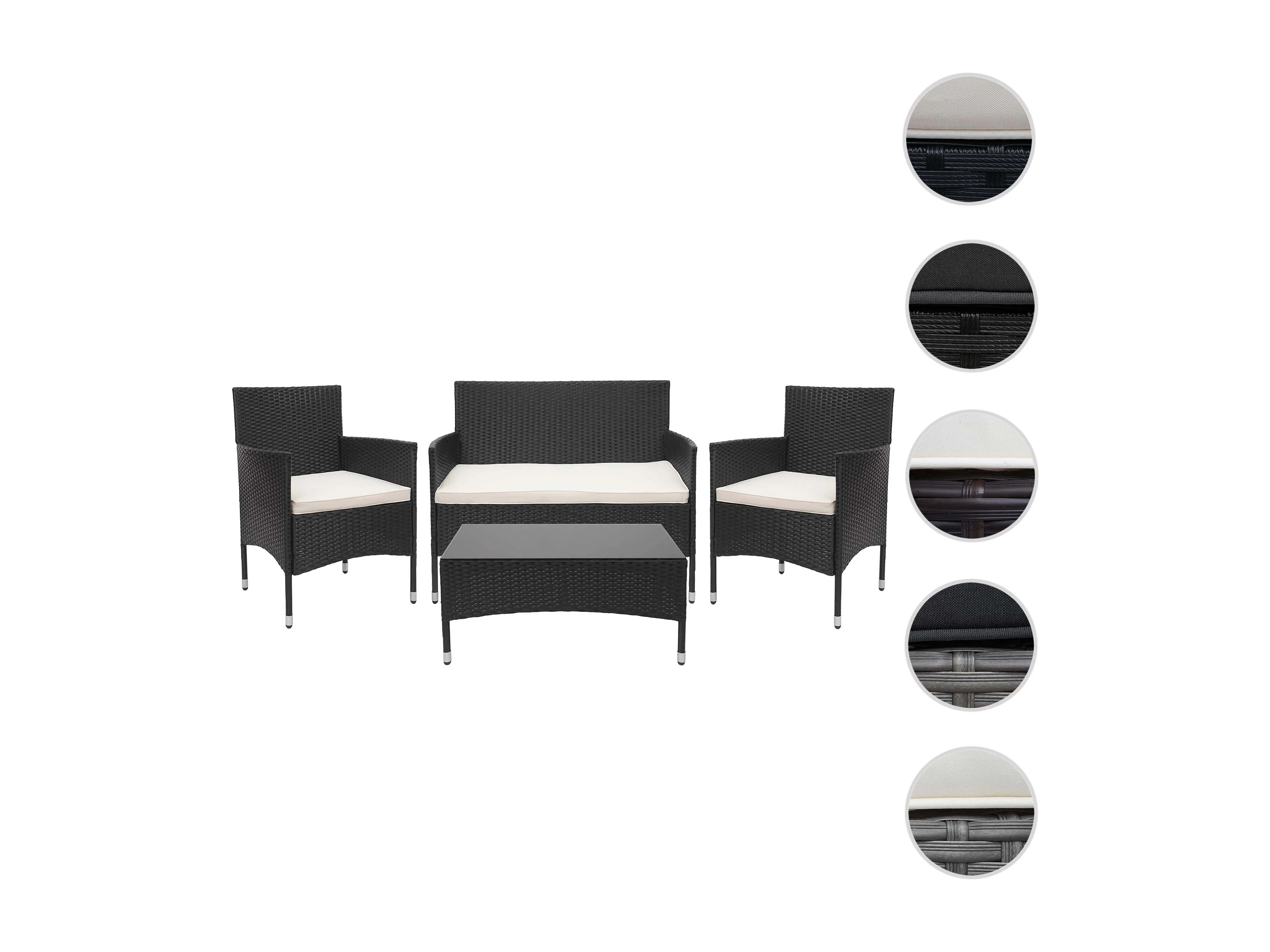 Zestaw polirattanowy MCW-F55 (4-częściowy), czarny, kremowe poduszki