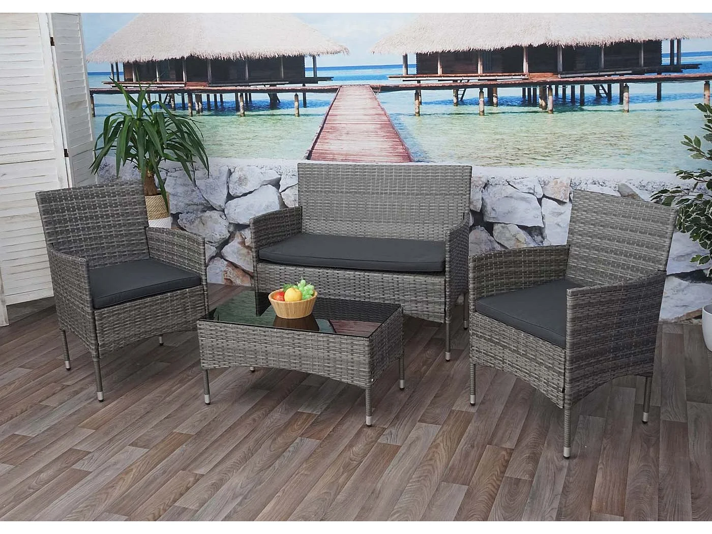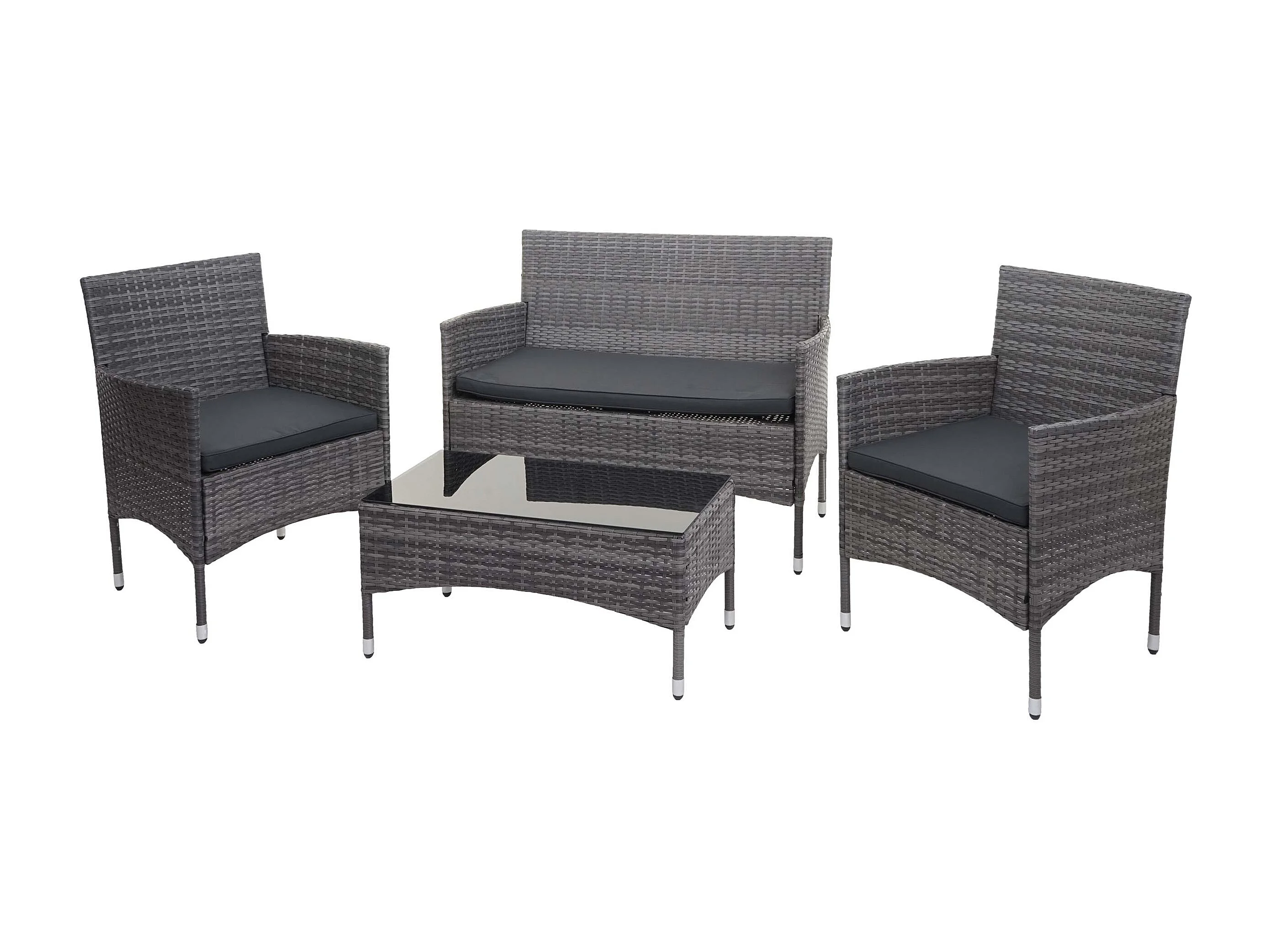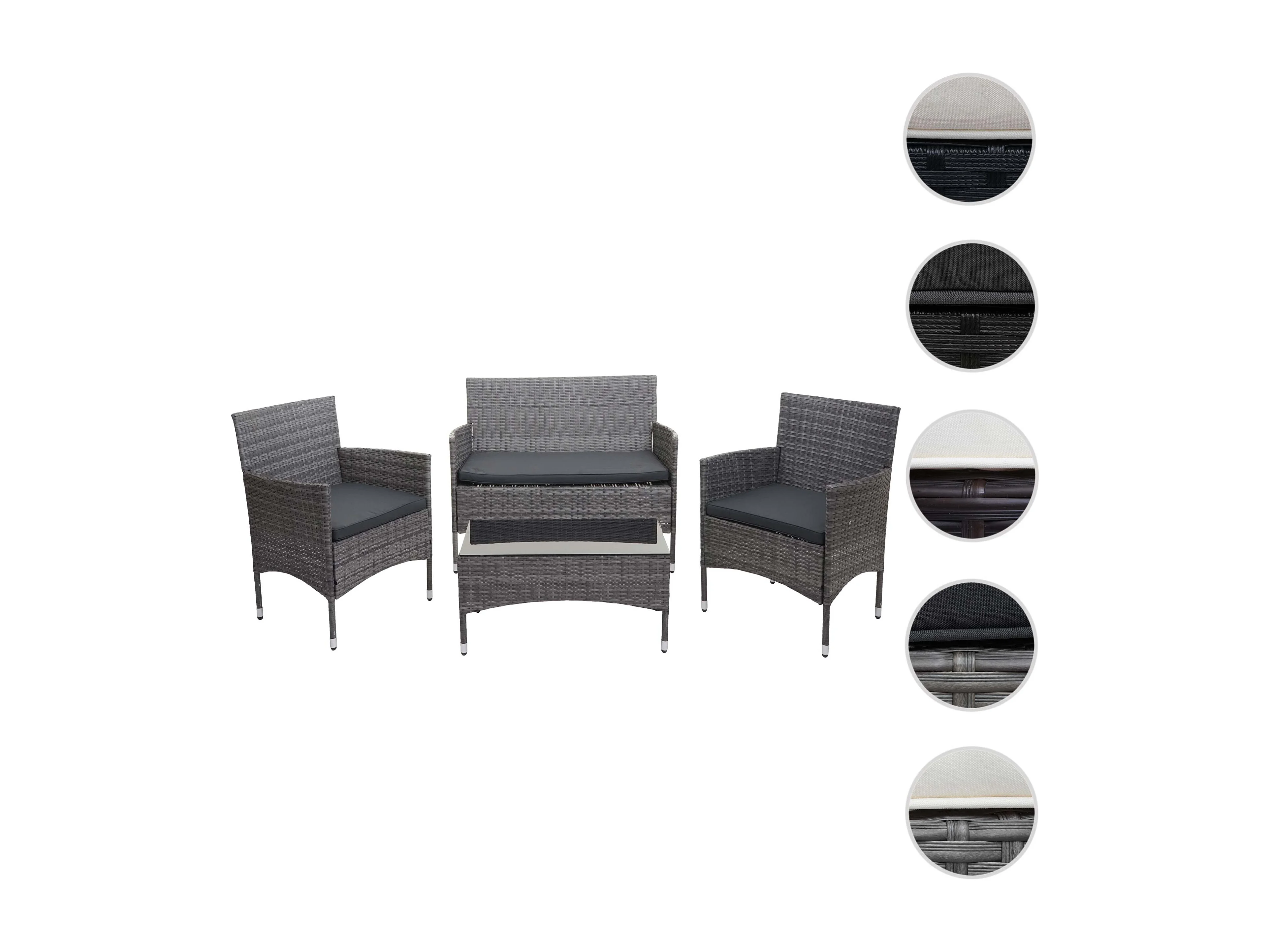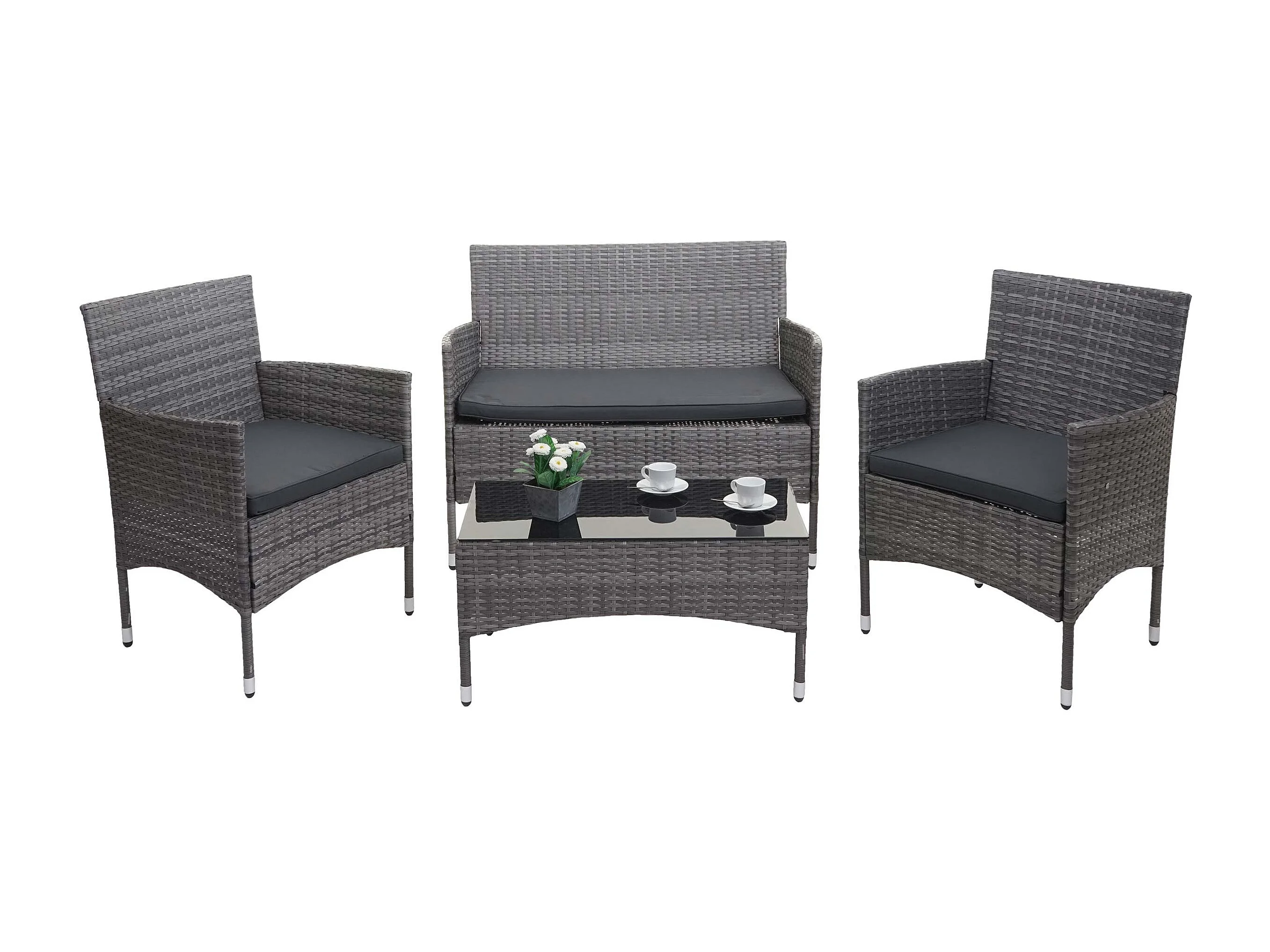 Zestaw polirattanowy MCW-F55 (4-częściowy), szary, ciemnoszare poduszki