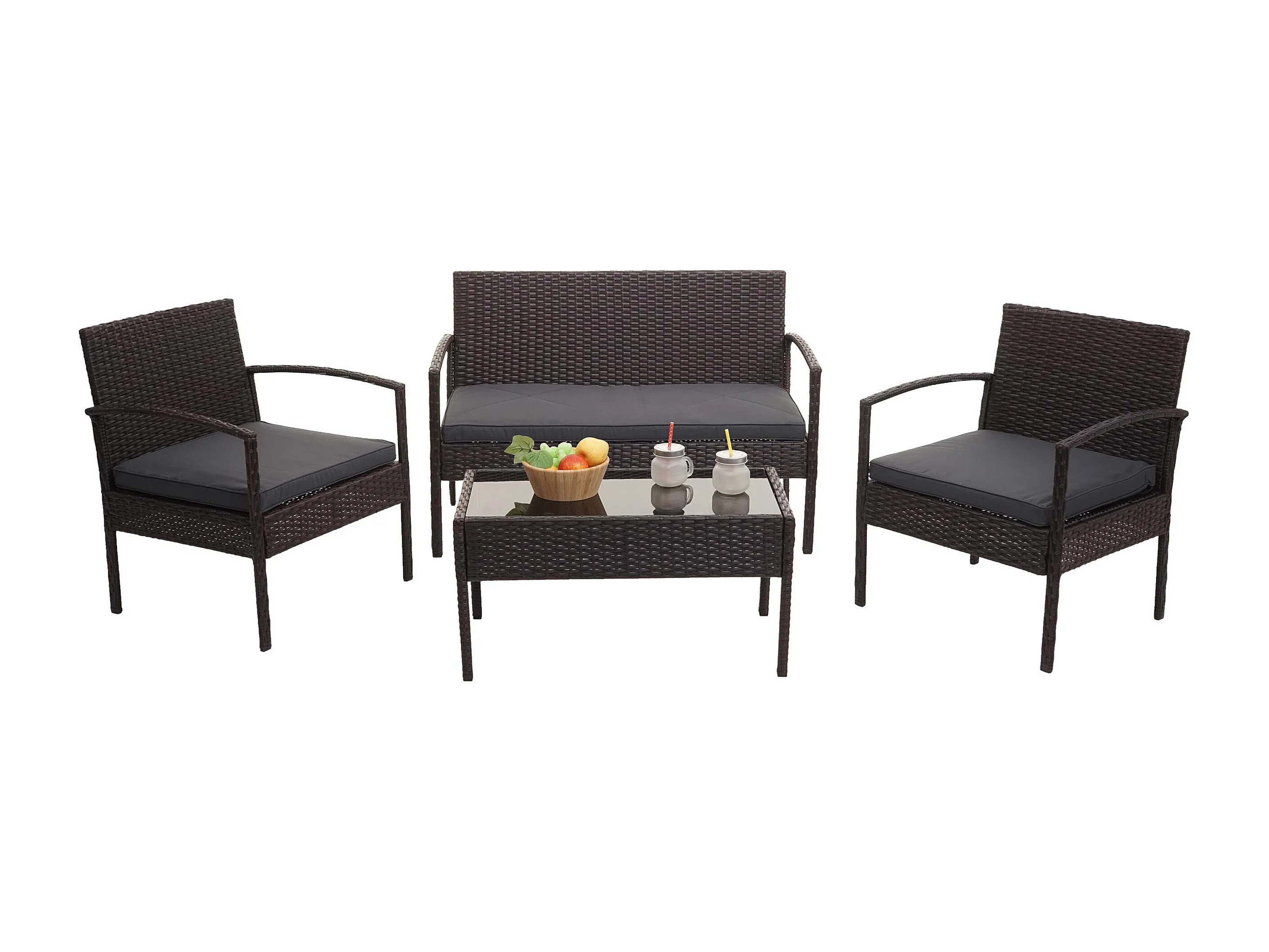 Zestaw polirattanowy MCW-F56 (4-częściowy), brązowy, ciemnoszare poduszki