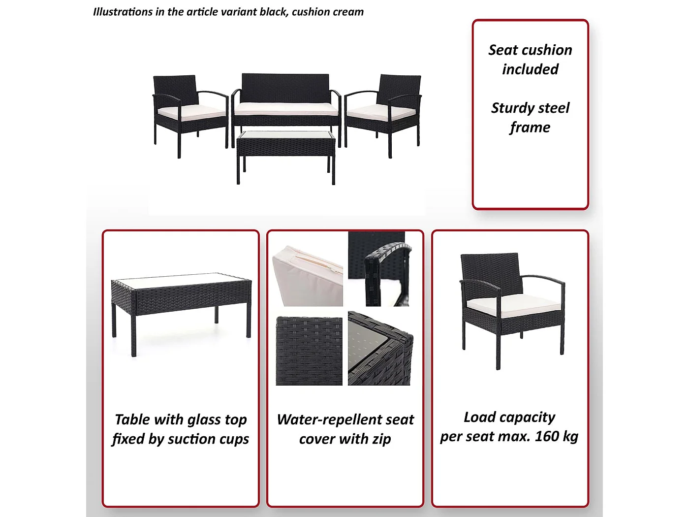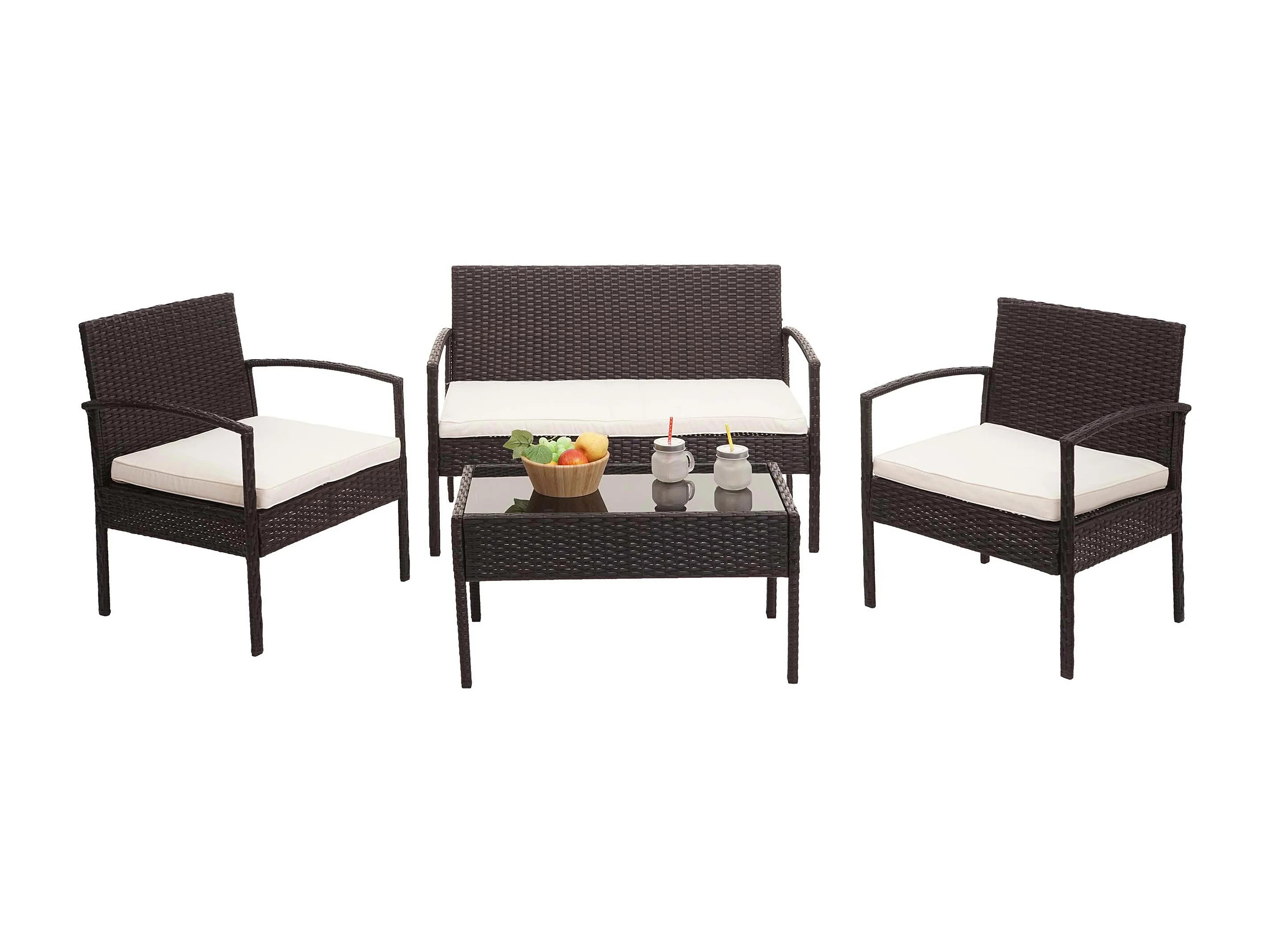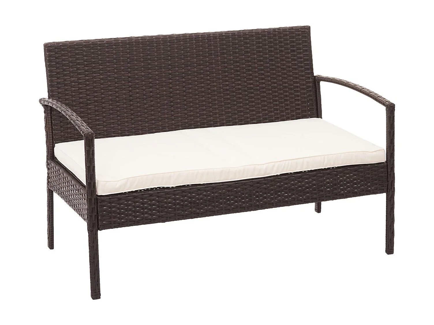 Zestaw polirattanowy MCW-F56 (4-częściowy), brązowy, kremowe poduszki