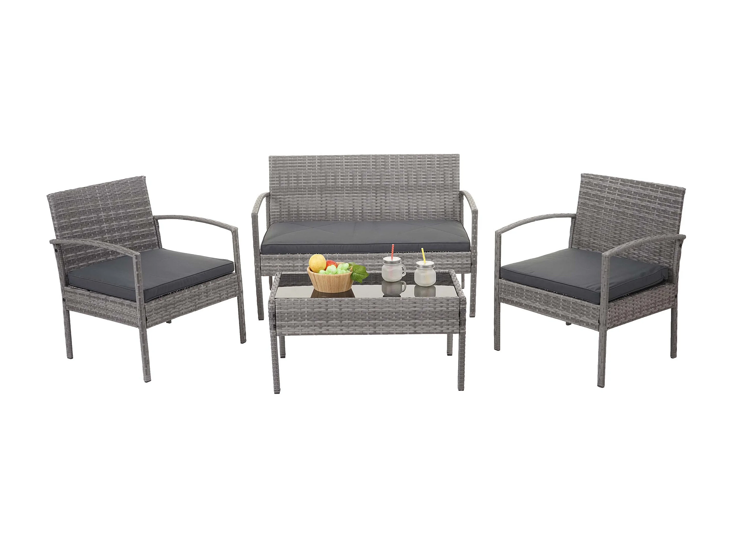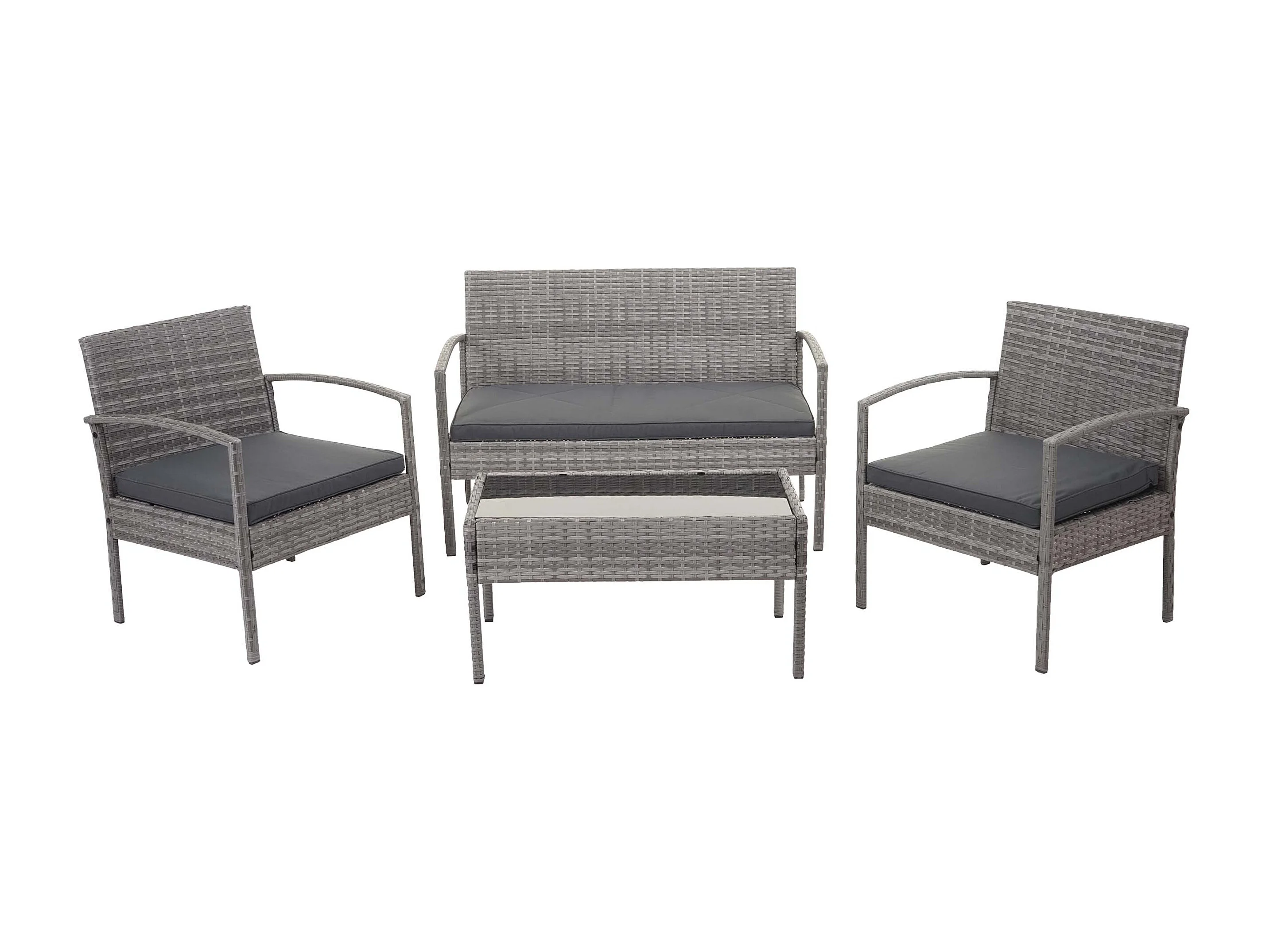 Zestaw polirattanowy MCW-F56 (4-częściowy), szary, ciemnoszare poduszki