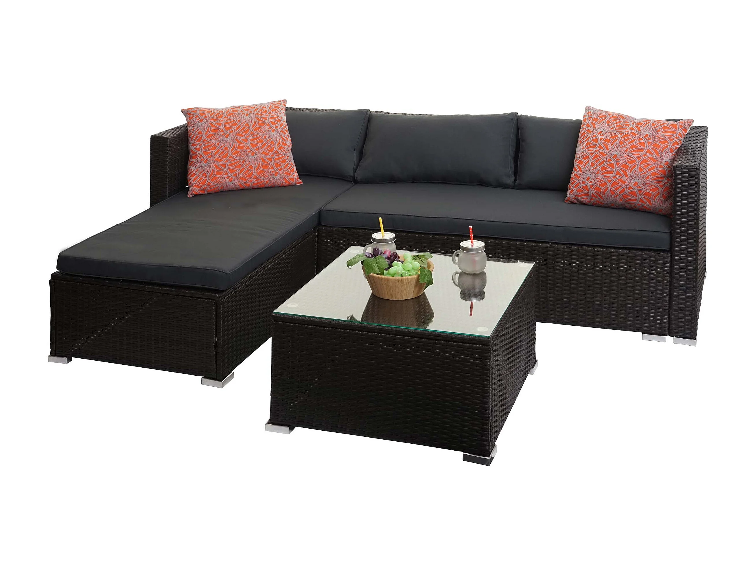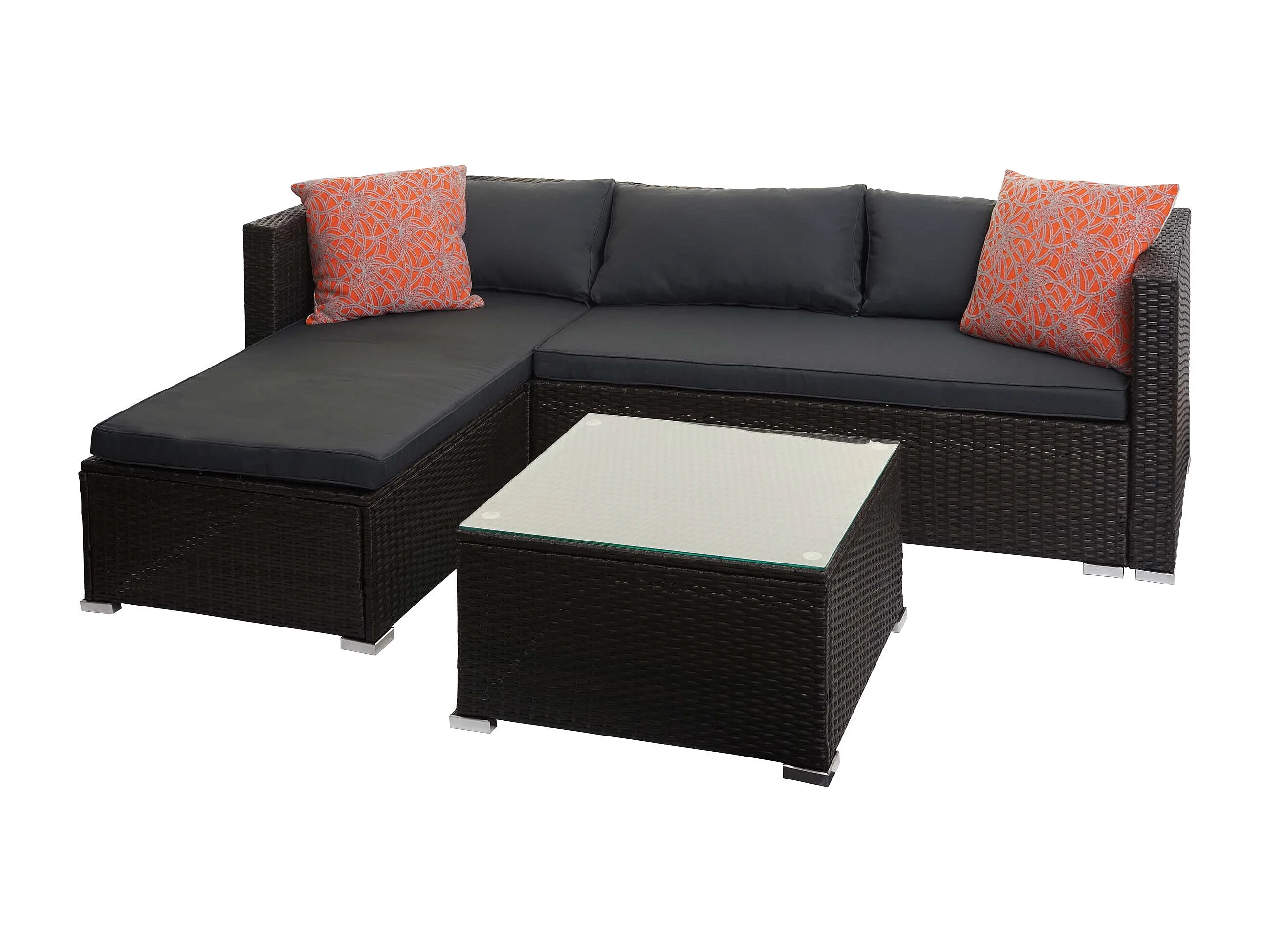 Zestaw polirattanowy MCW-F57 (3-częściowy), brązowe, ciemnoszare poduszki z poduszkami dekoracyjnymi