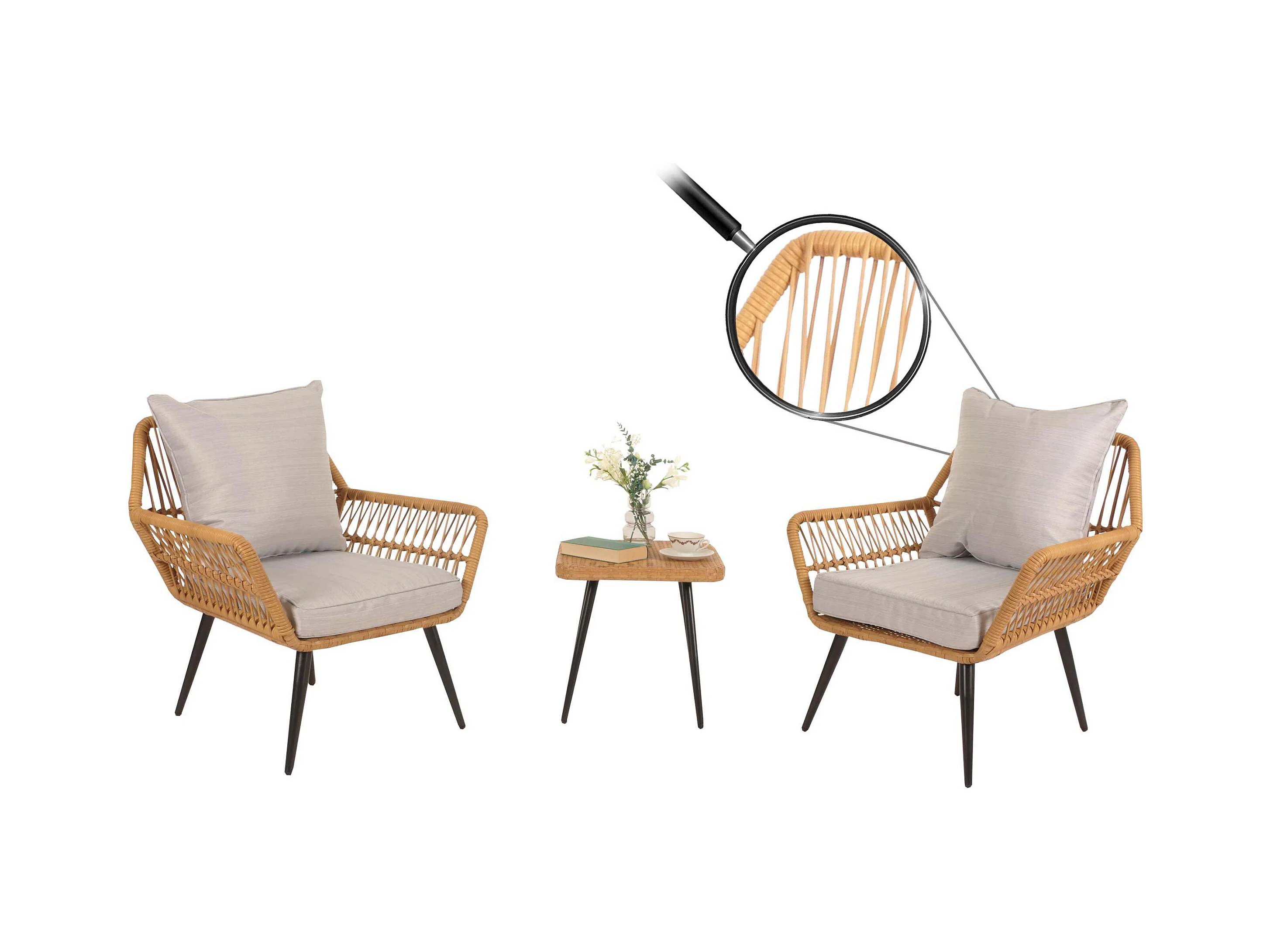 Zestaw ogrodowy MCW-H54 (zestaw 4 sztuk), jasnobrązowa, ciemnoszara tapicerka