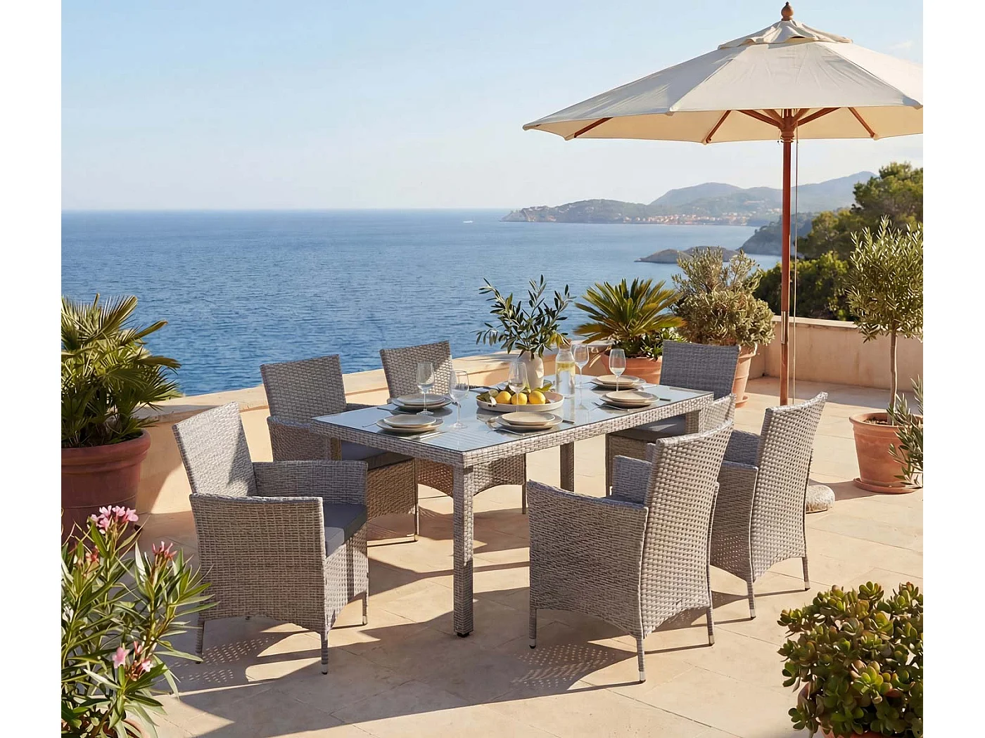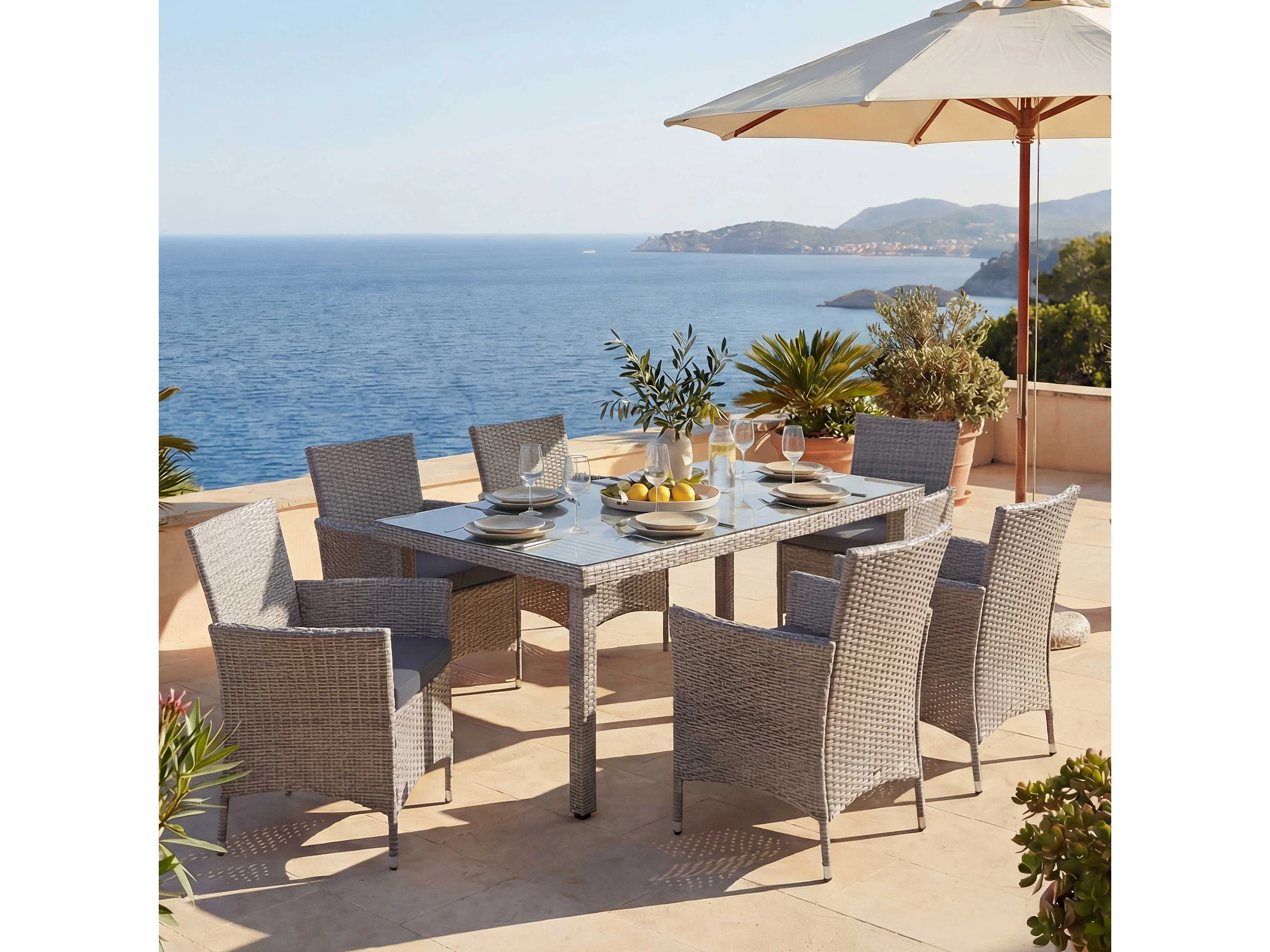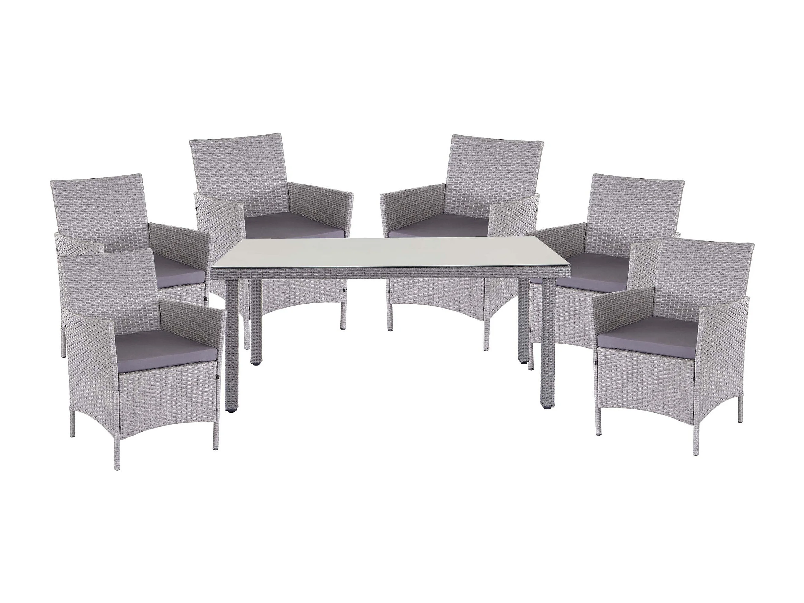 Zestaw z polirattanowym wykończeniem Hamar (7 elementów), szary, poduszki antracytowe