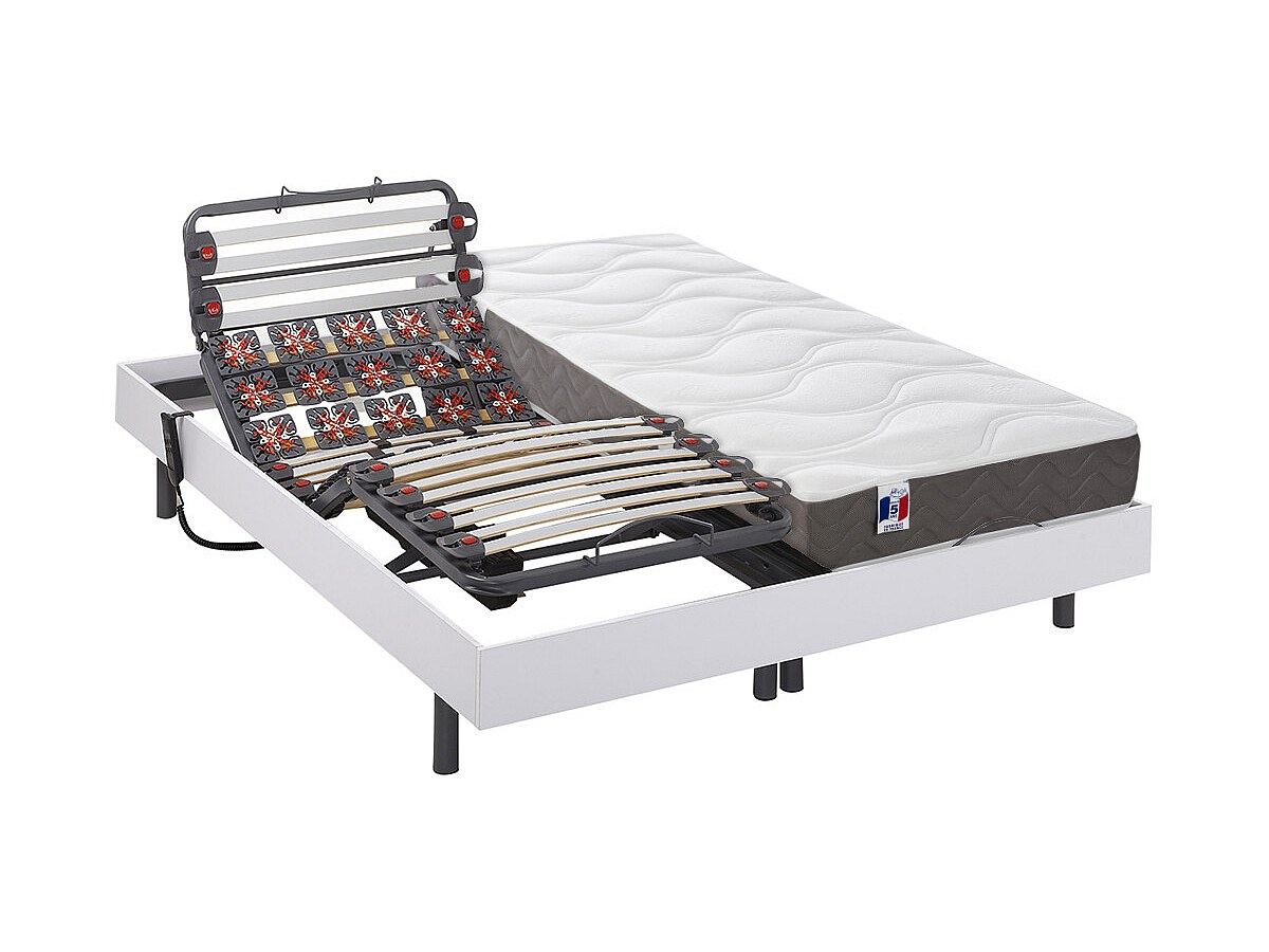 Zestaw relaksacyjny z płytek i listewek 100% lateksu 5-strefowy MENELAS marki DREAMEA - Kolor biały - 2x80x200cm - silniki OKIN
