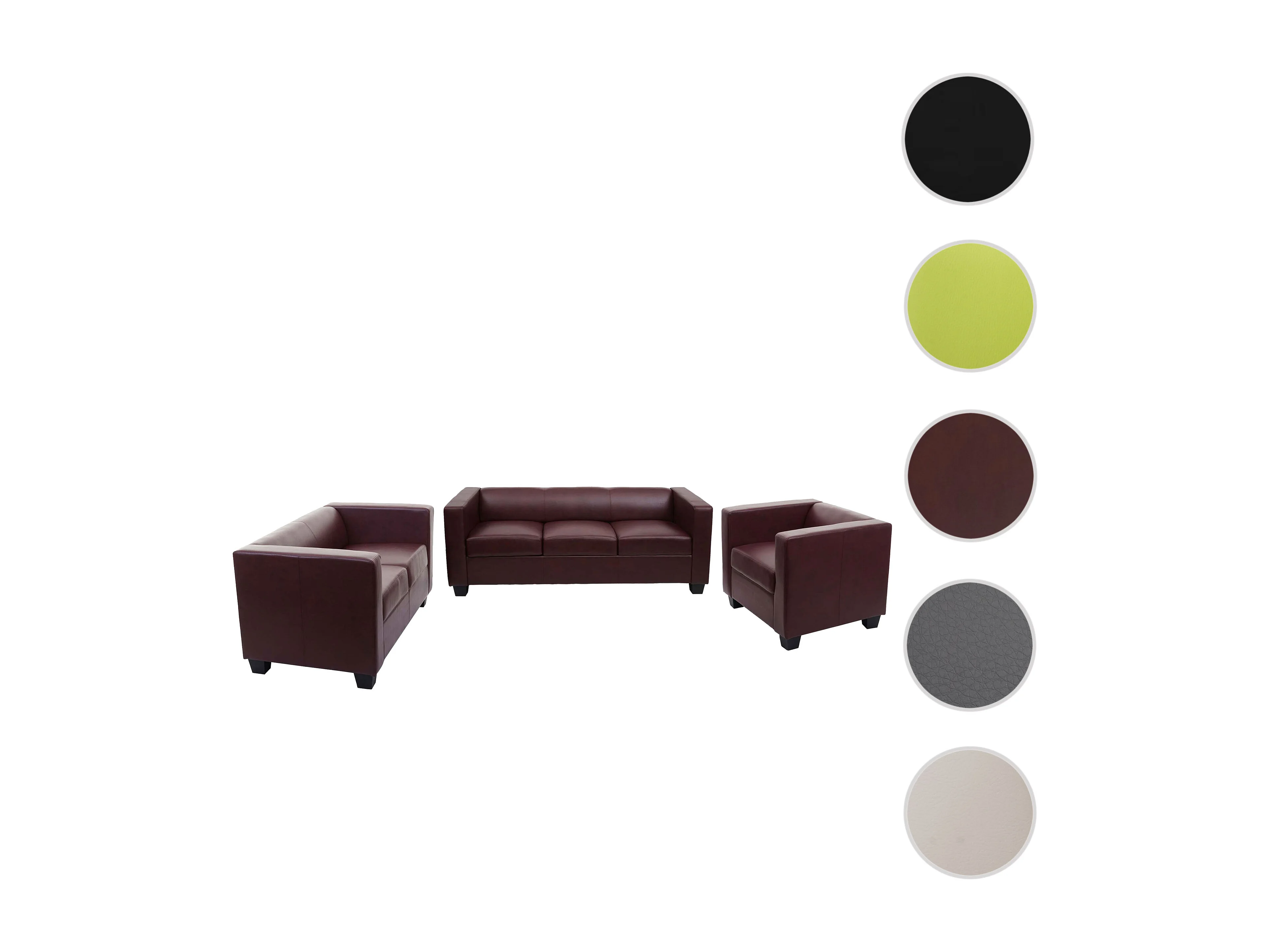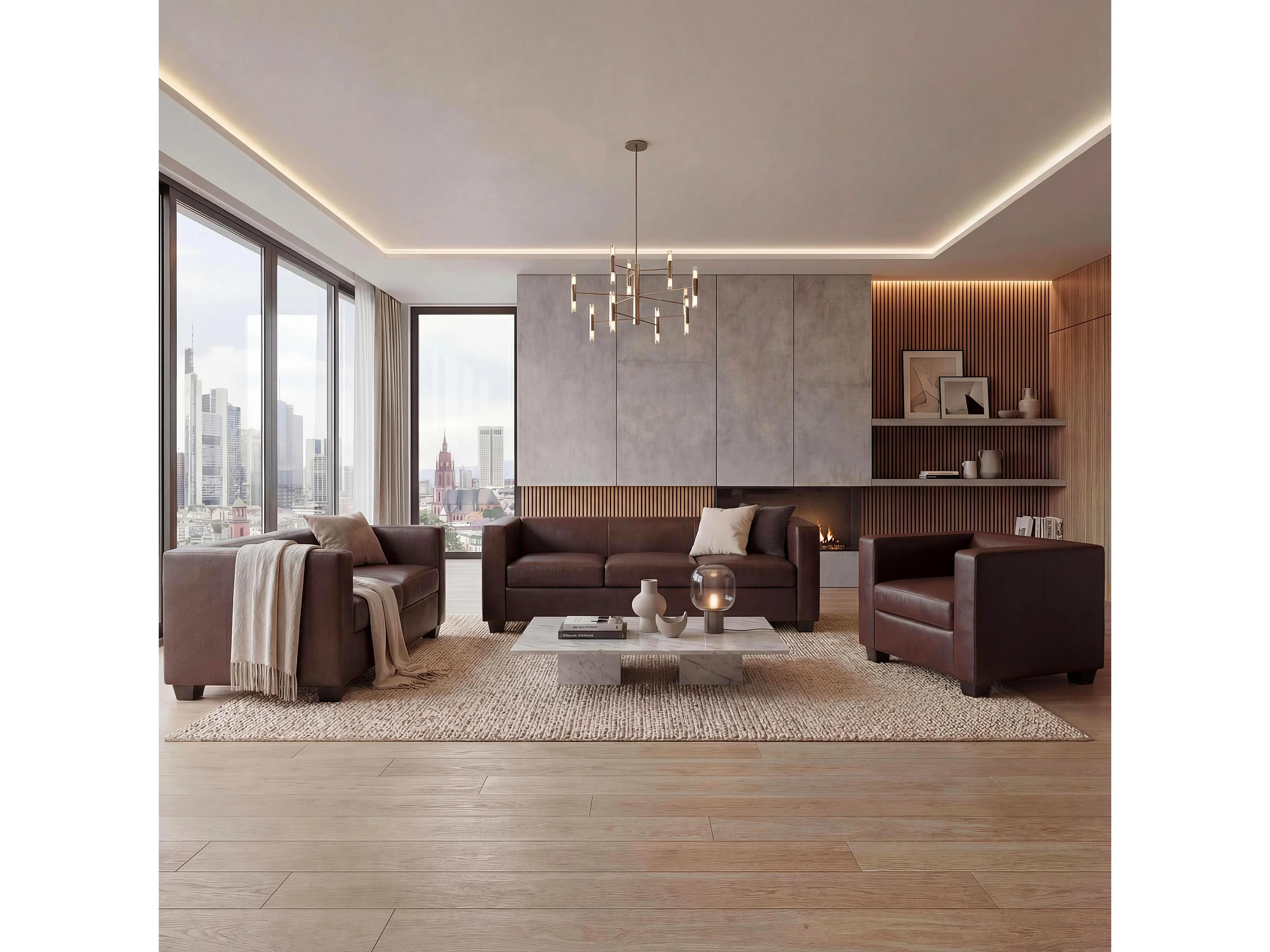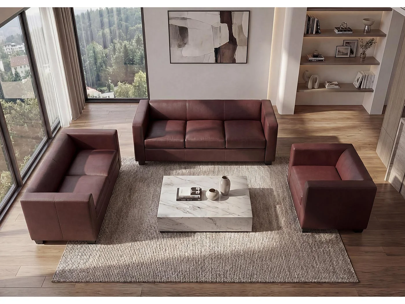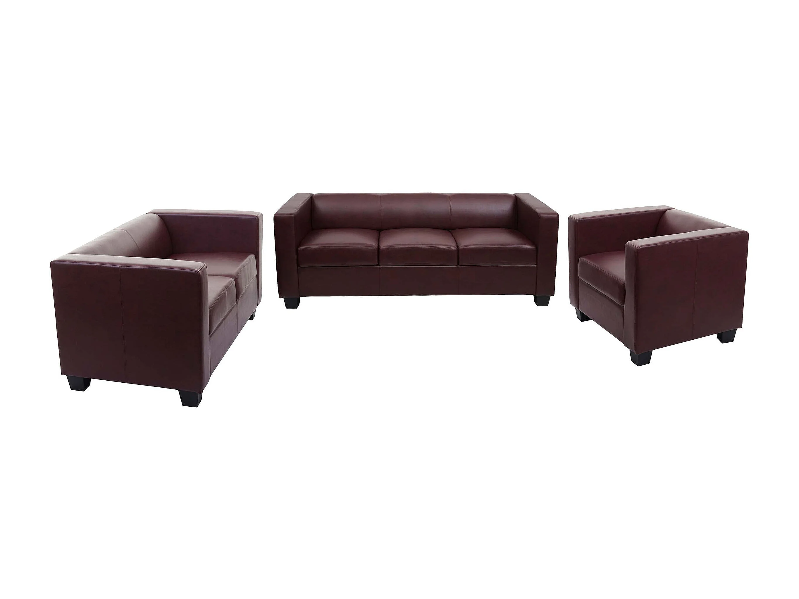 Zestaw wypoczynkowy Lille (3-częściowy) 3-2-1, sztuczna skóra, czerwono-brązowa