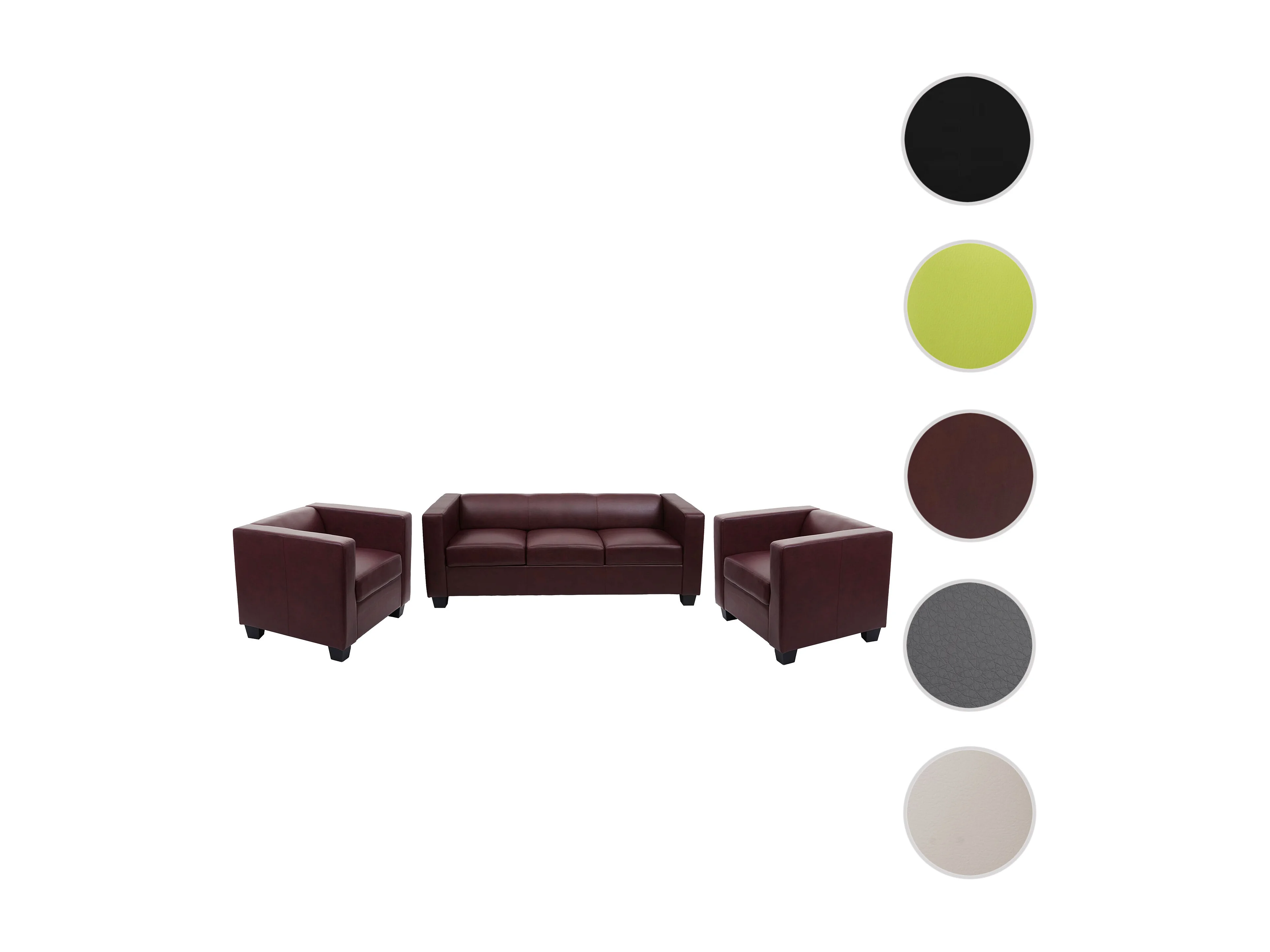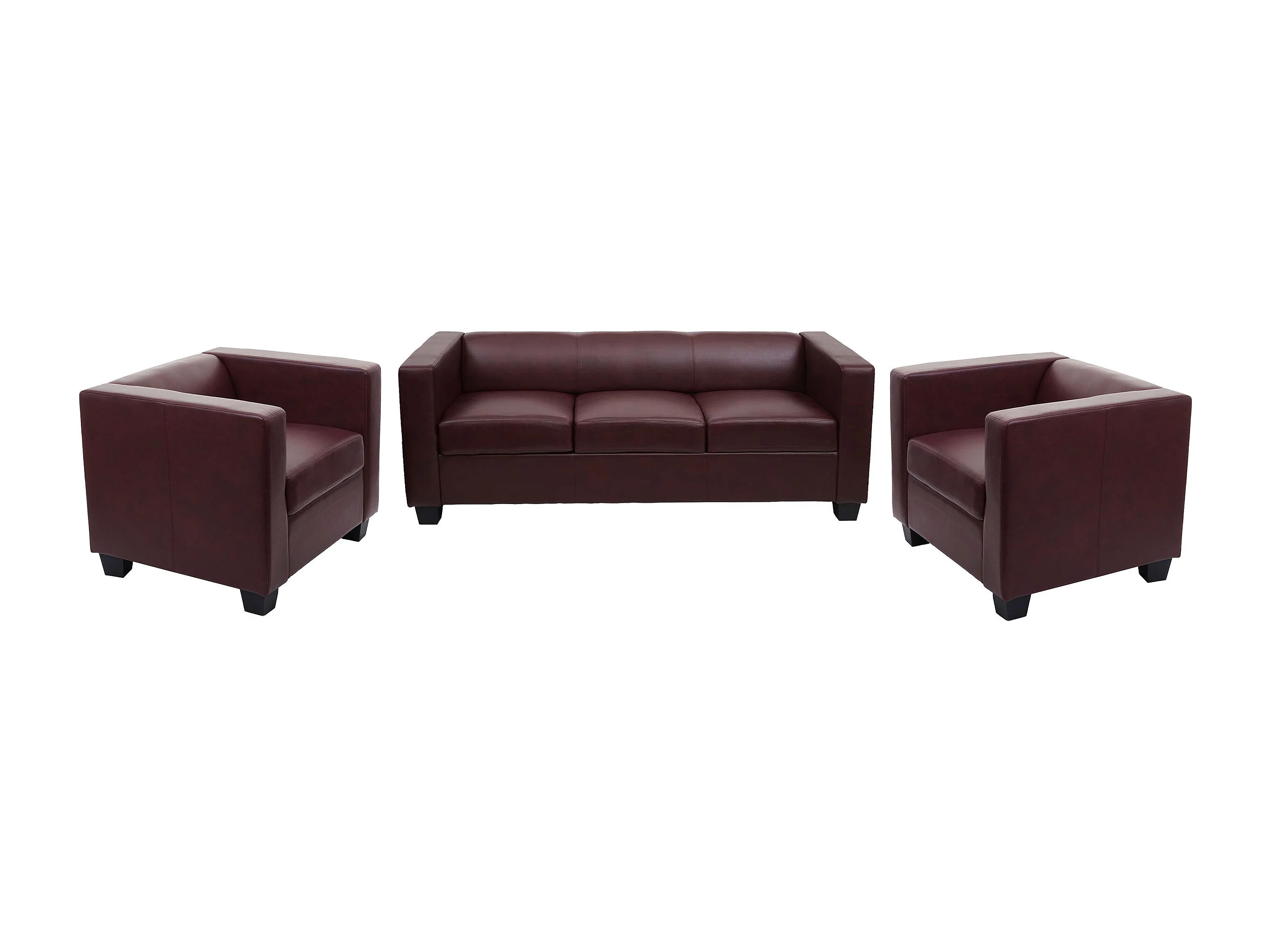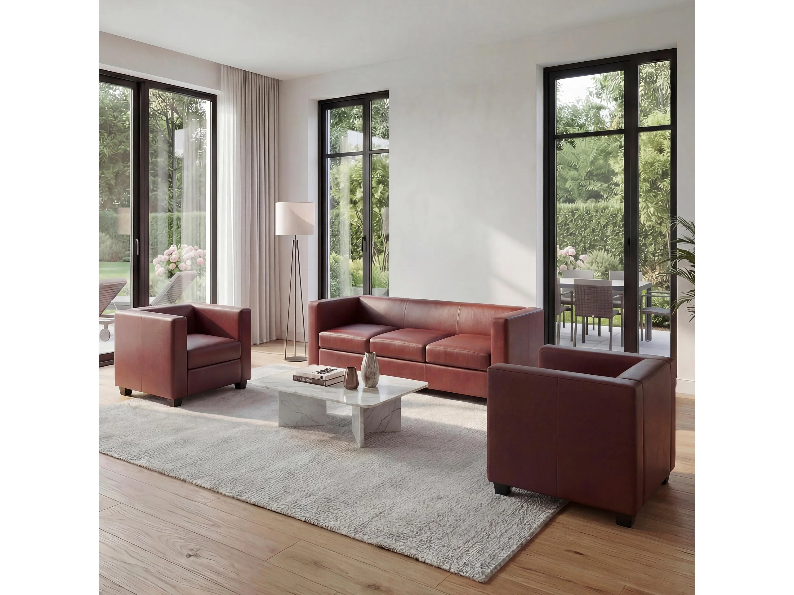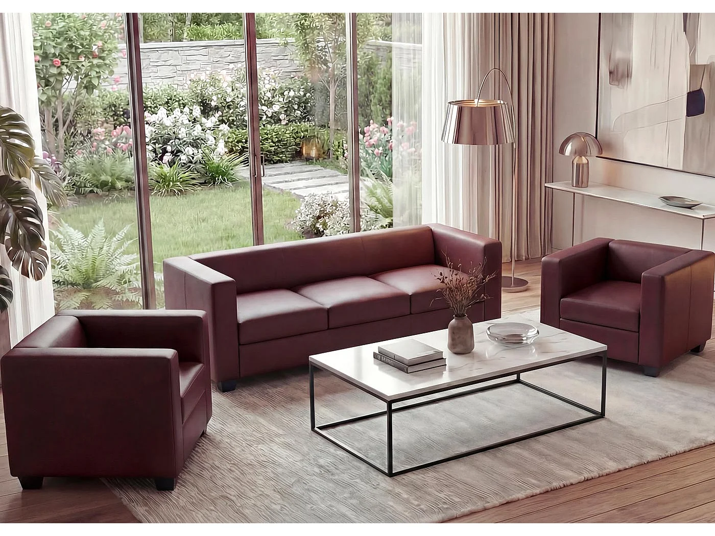 Zestaw wypoczynkowy Lille (3-częściowy), sztuczna skóra, czerwono-brązowa