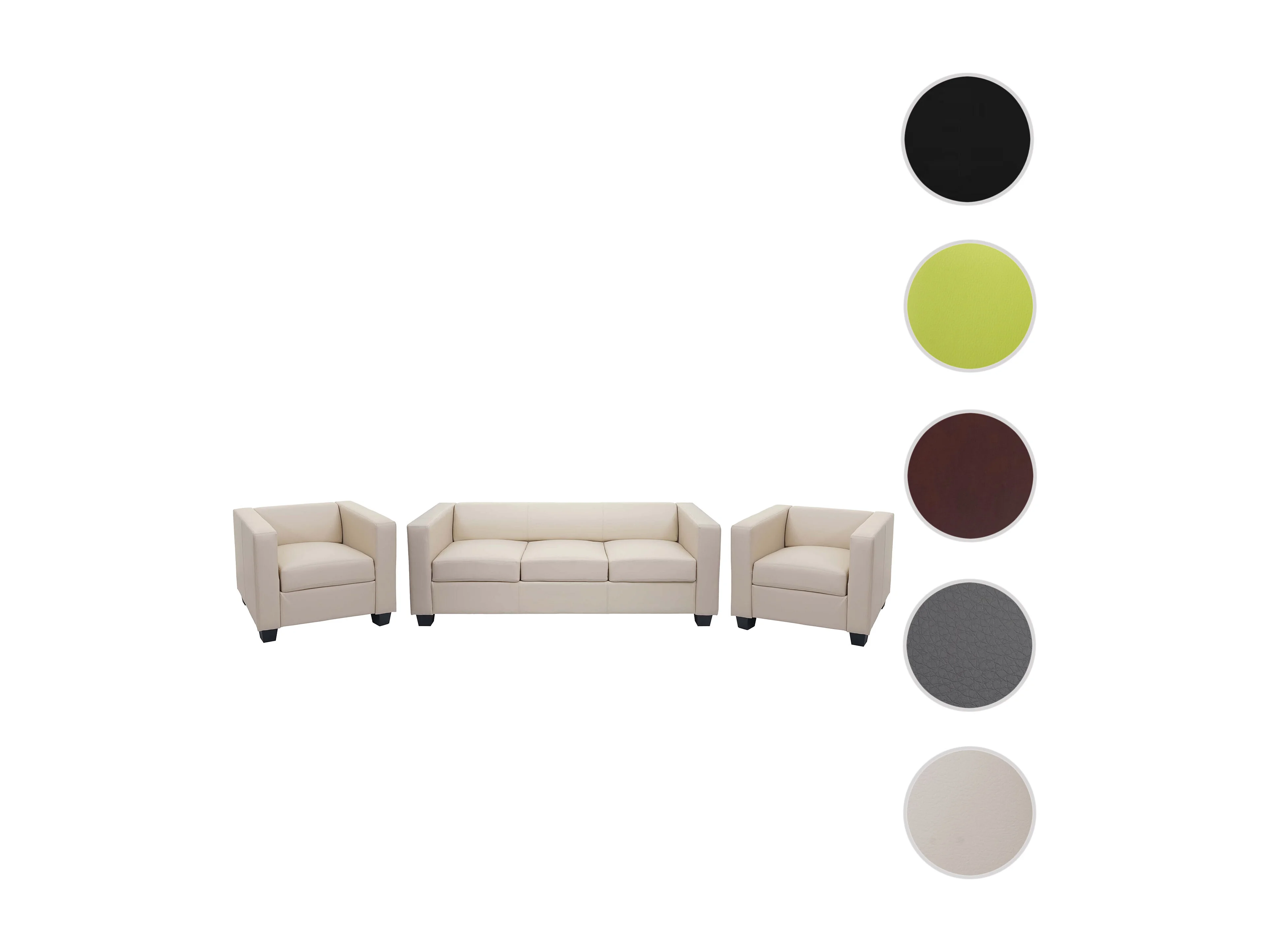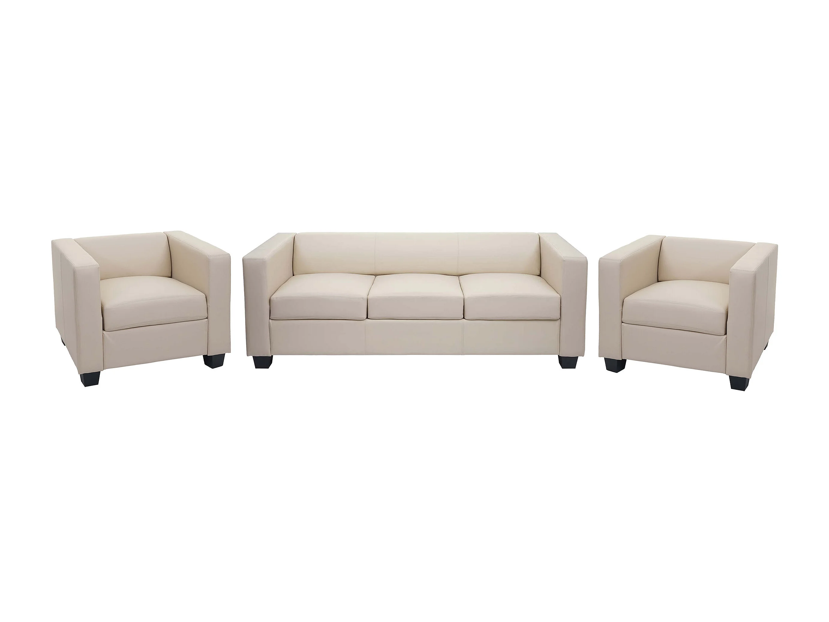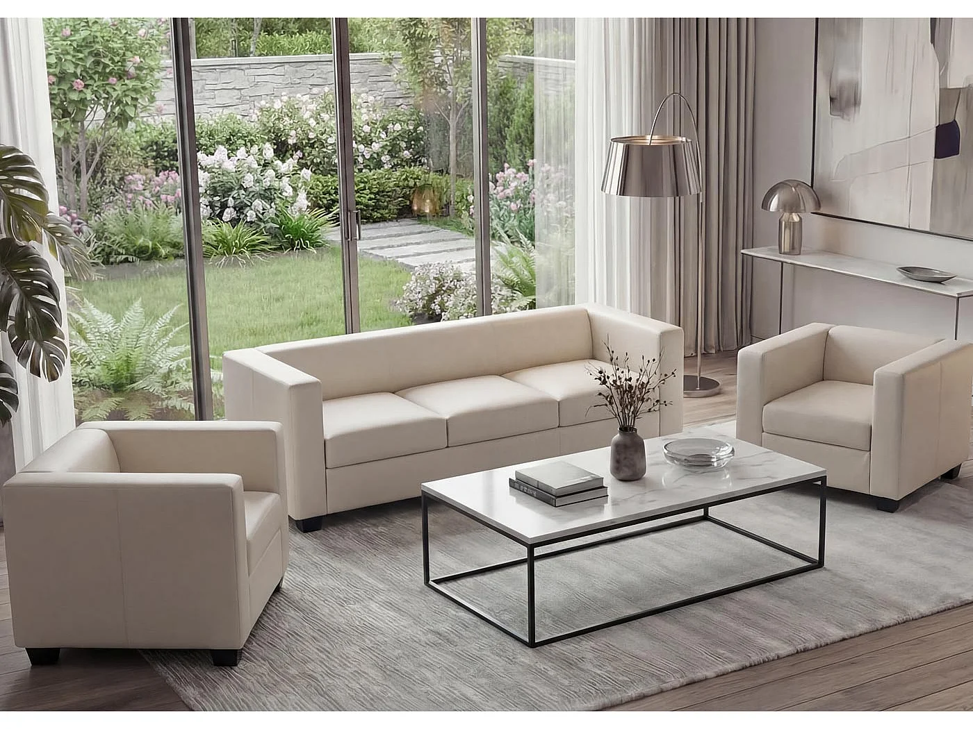 Zestaw wypoczynkowy Lille (3-częściowy), sztuczna skóra, kremowa