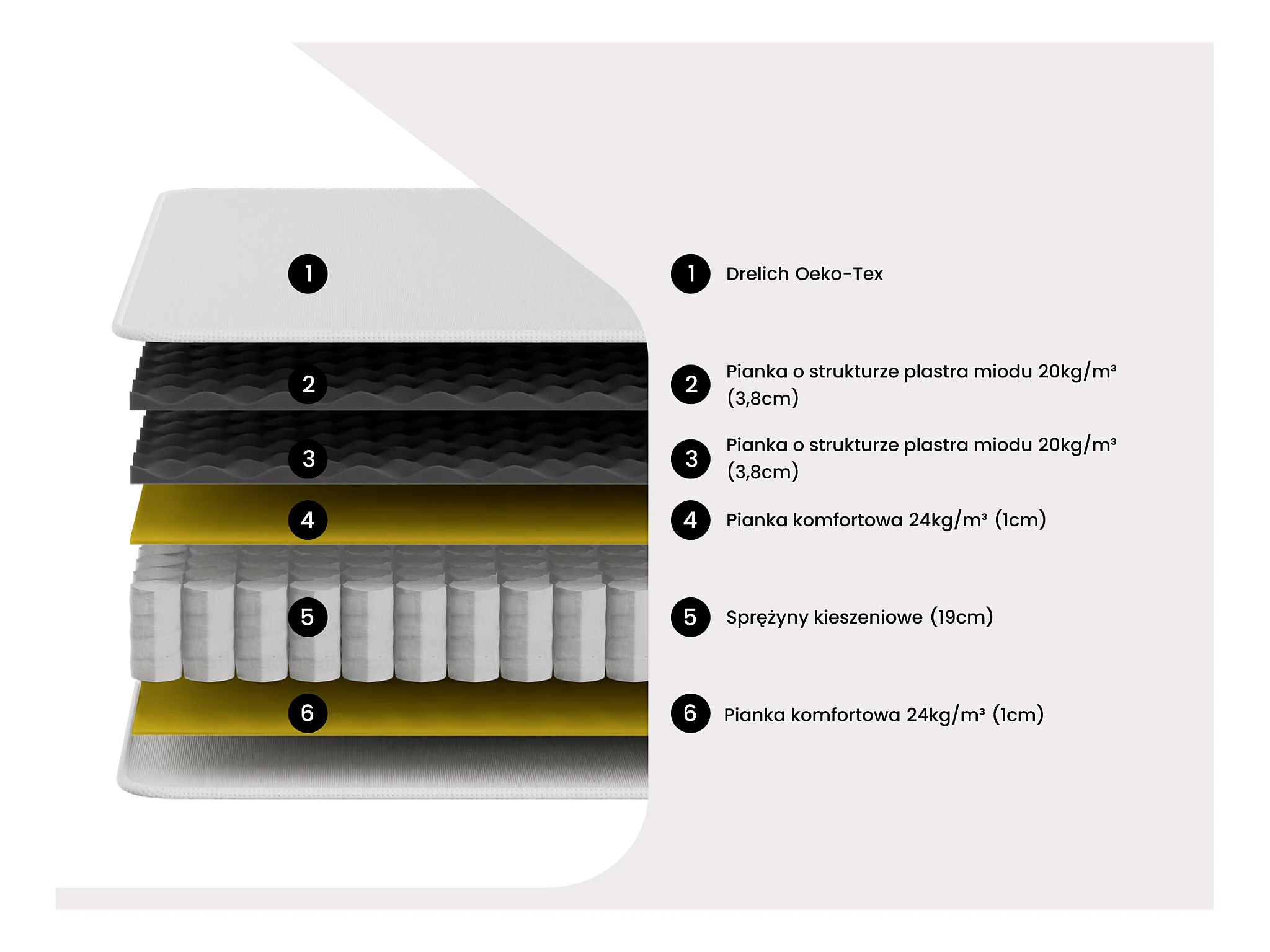 Zestaw stelaż + materac ze sprężynami kieszeniowymi z wbudowaną nakładką na materac AMERICAN DREAM marki YSMÉE - 160x200 cm